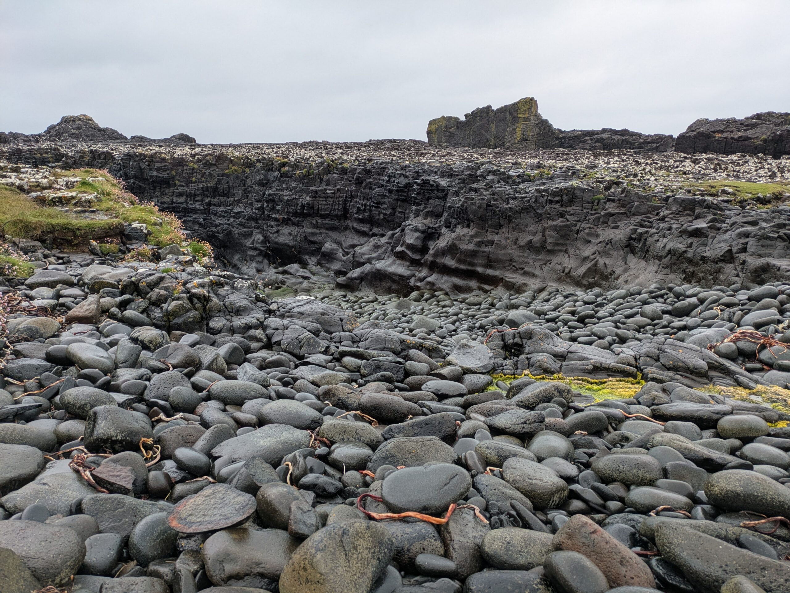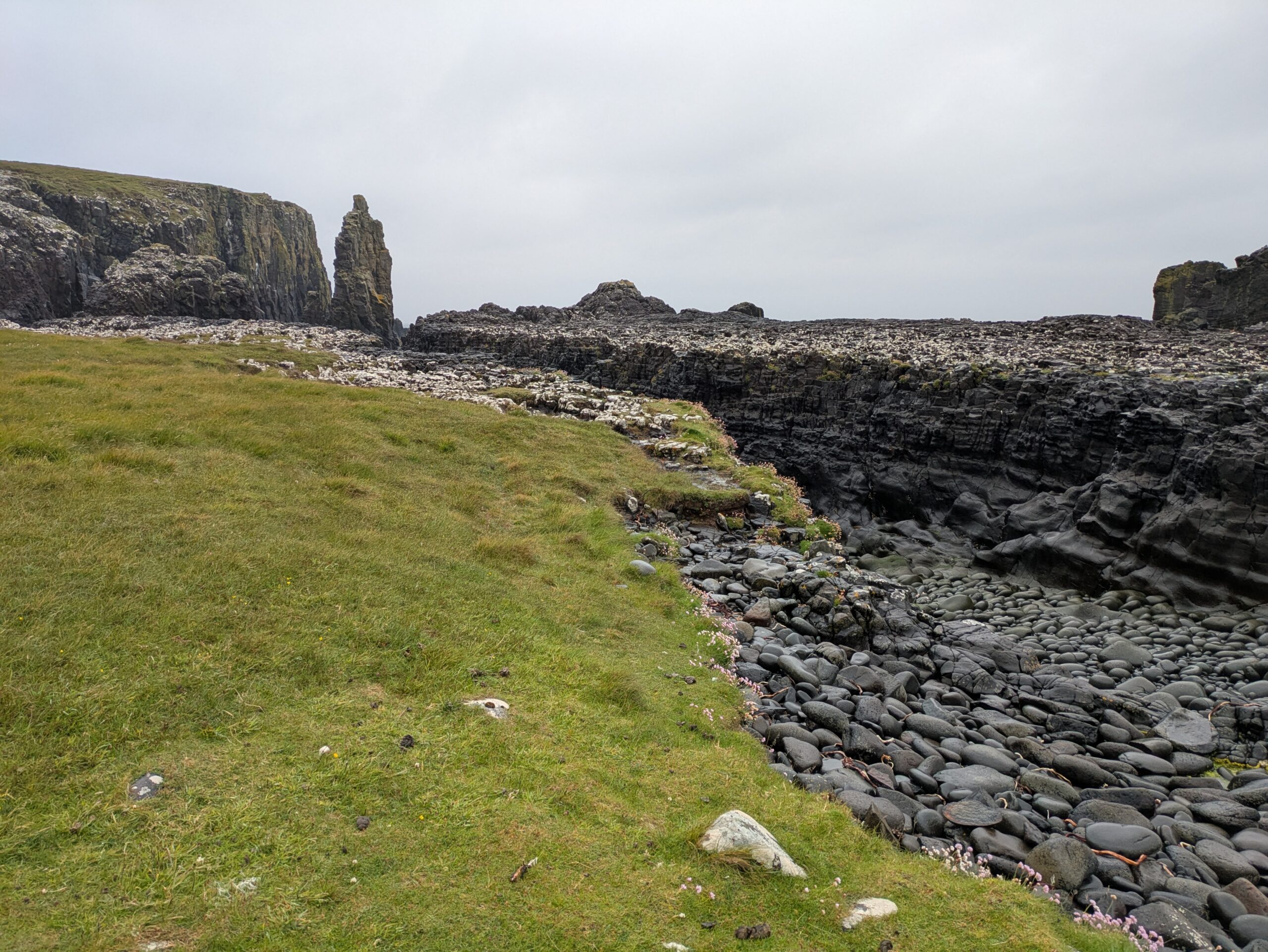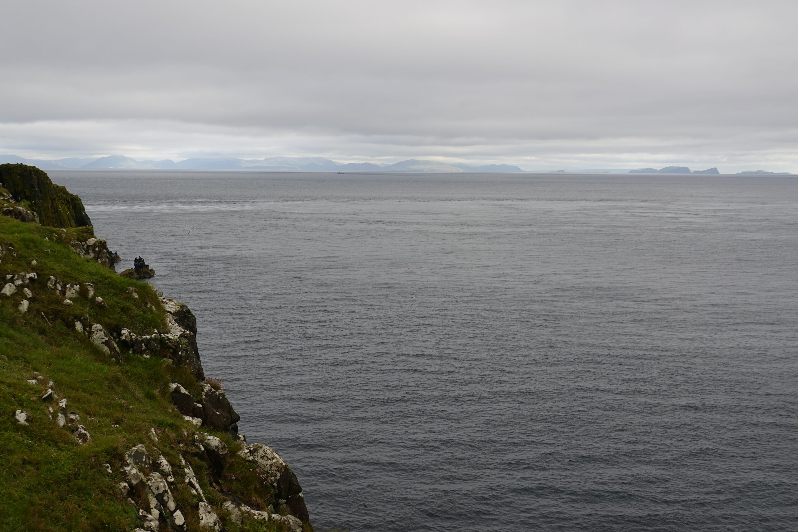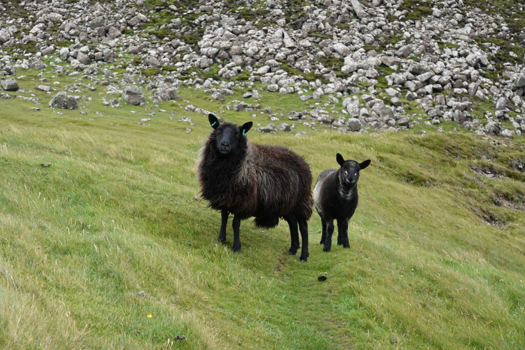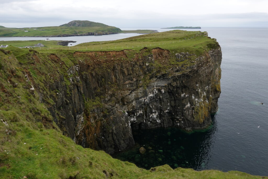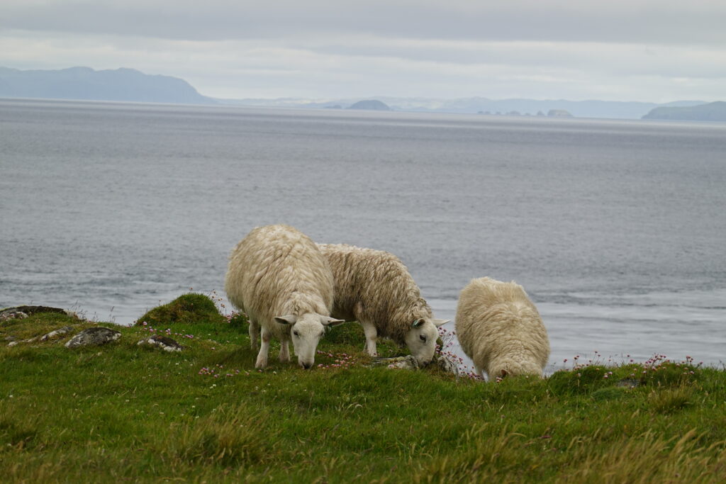 La côte est belle. Fulmars, corneilles mantelées, black-backed gulls, guillemots à miroir, grand corbeau, étourneaux… Ça piaille, siffle et roucoule partout. On voit aussi des border collies rassembler des moutons, héhé. 🙂