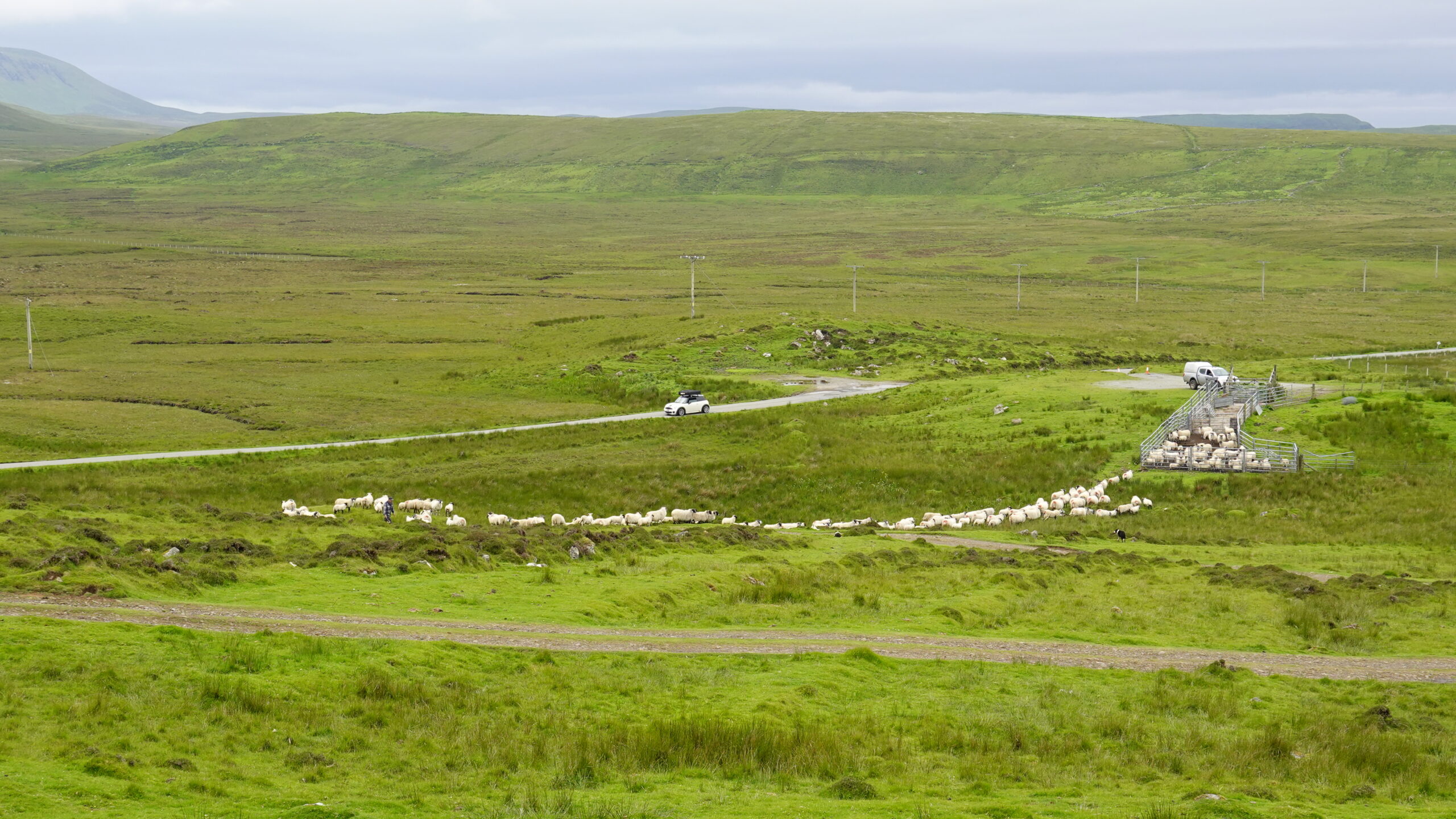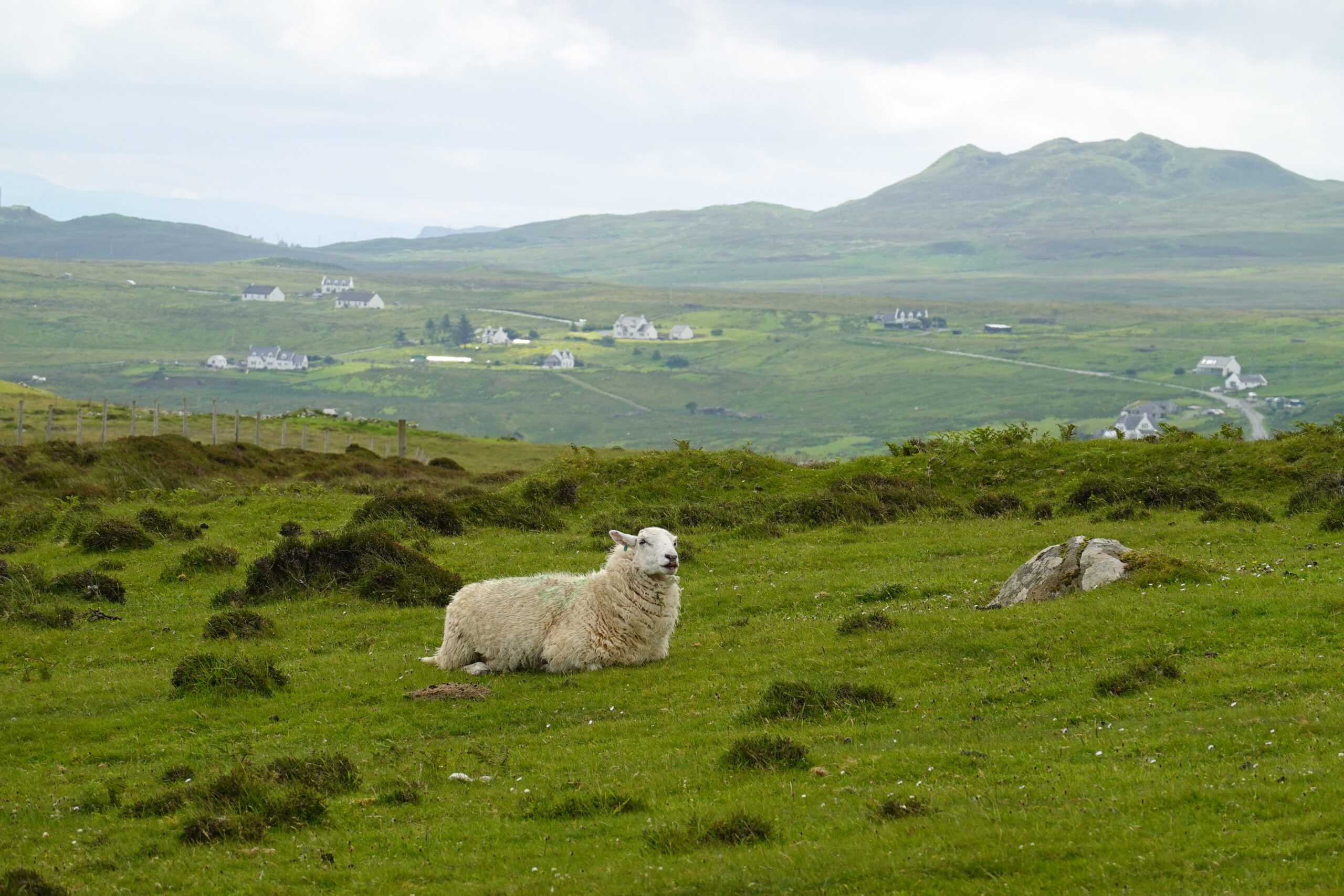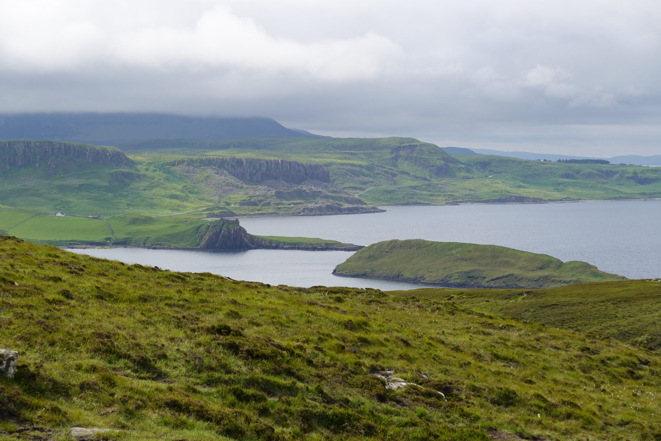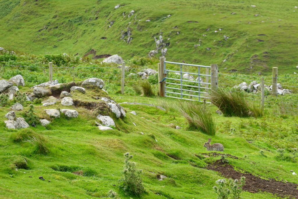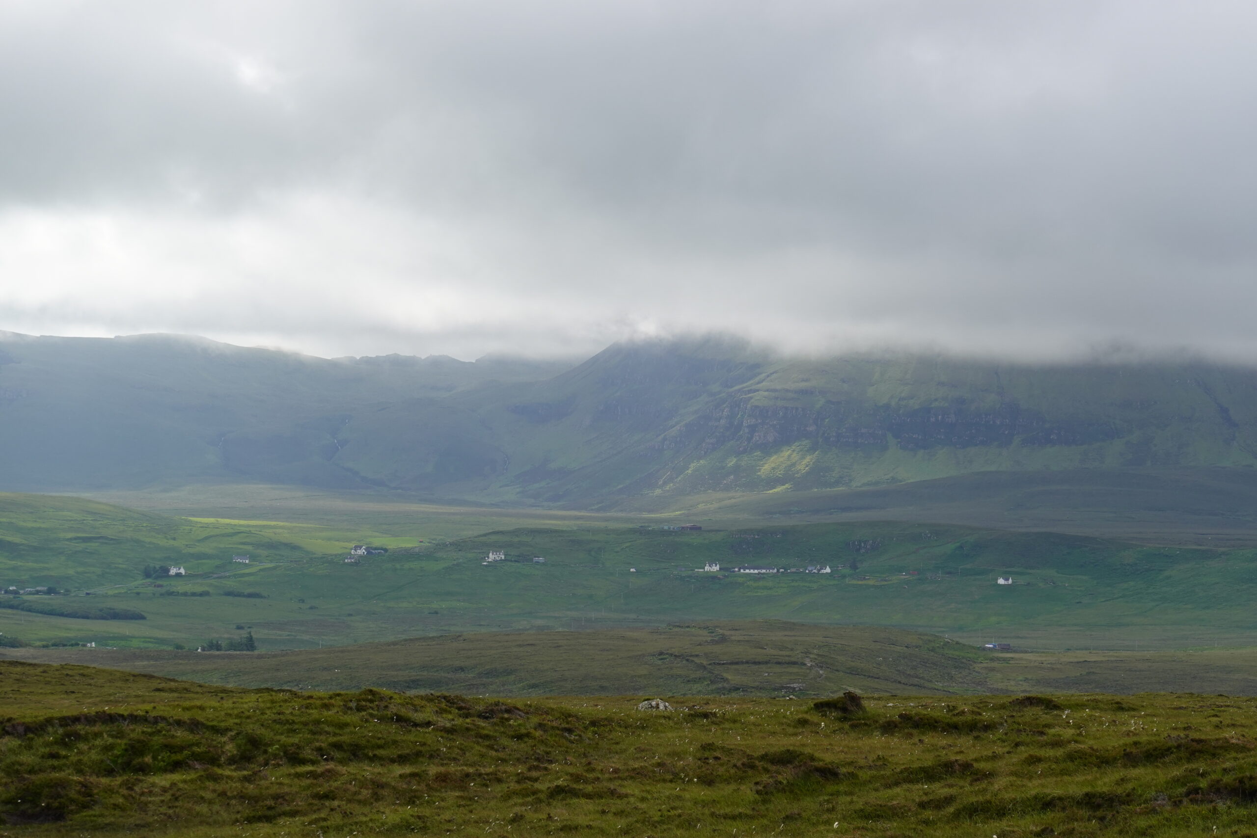 Au loin, on aperçoit déjà les montagnes autour du Quiraing, à l’allure si mystique.