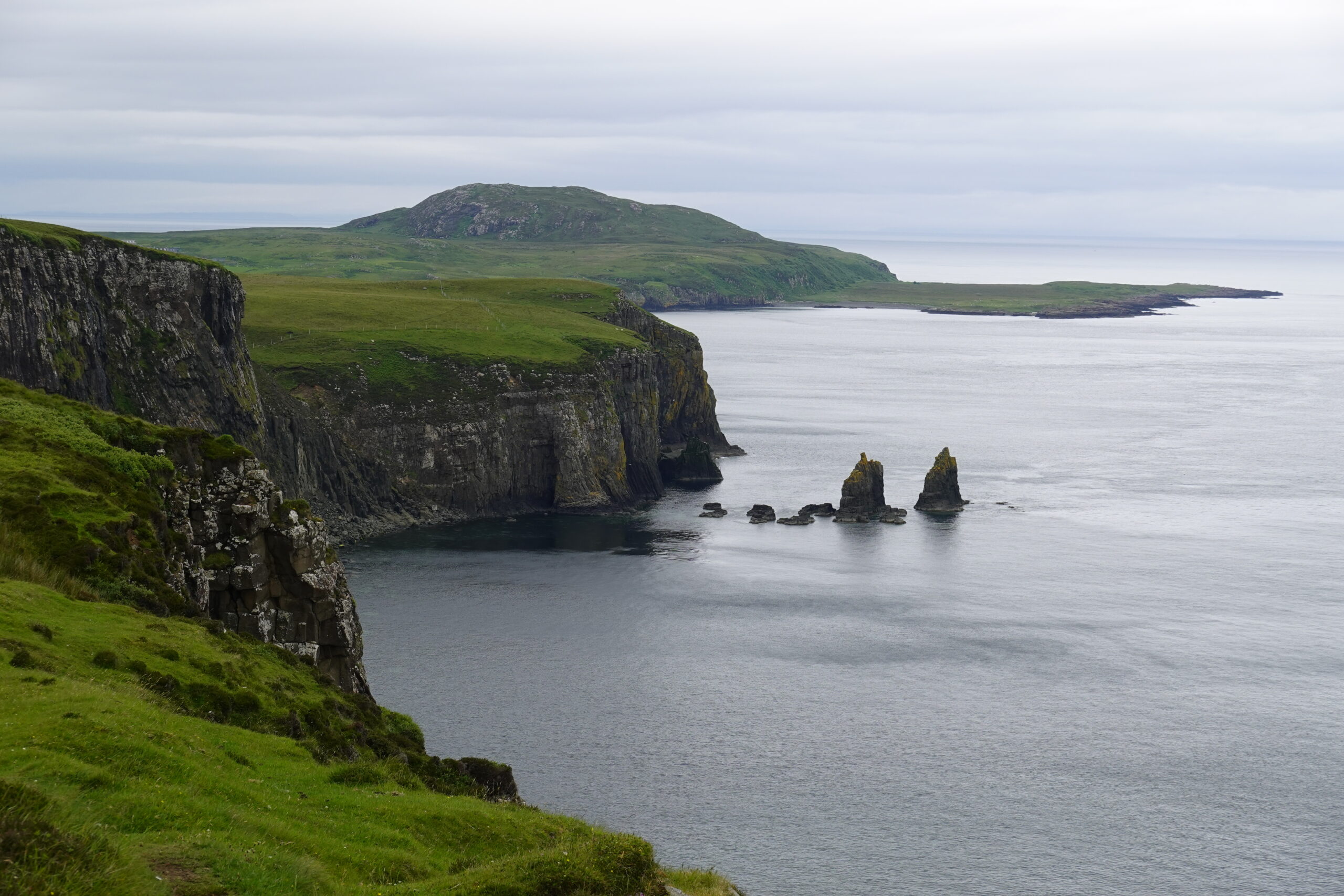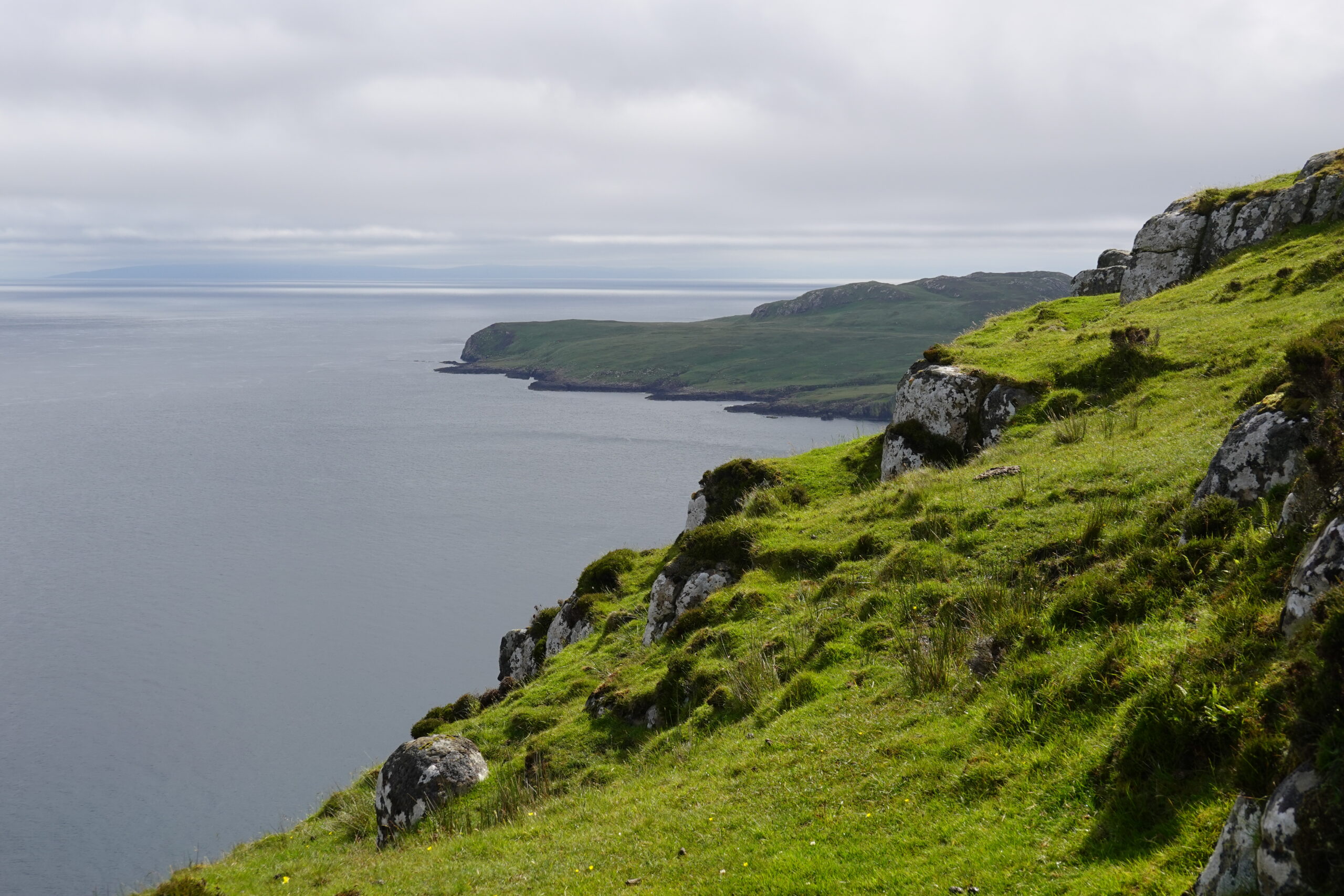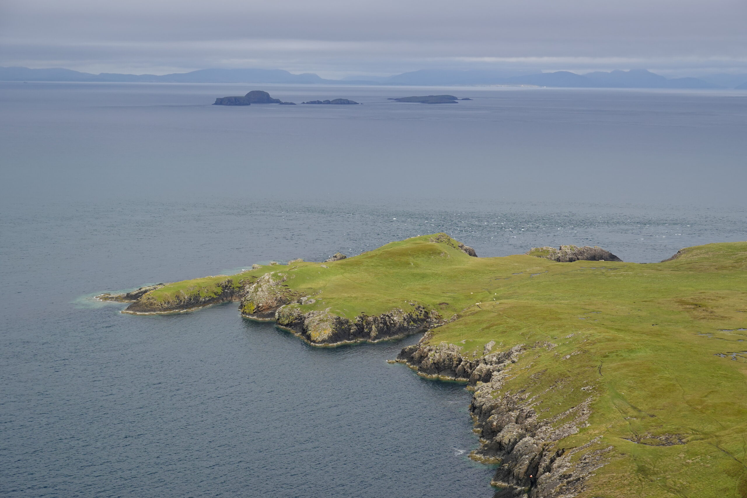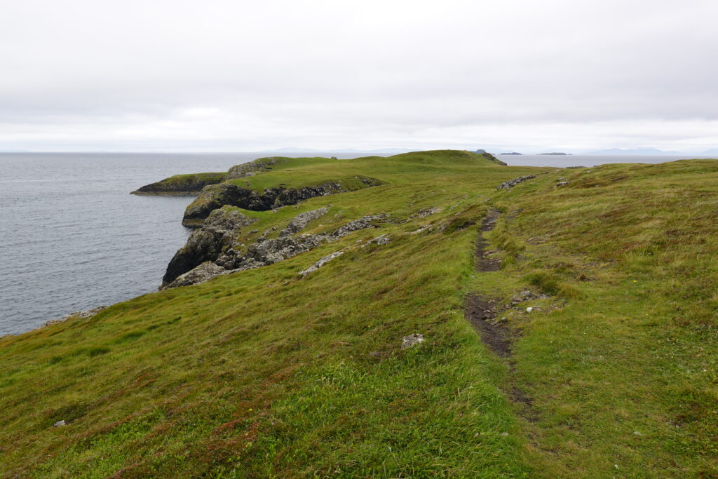 On fait le tour de Rubha Hunish, admirant la côte, les Hébrides extérieures au loin, les Shiants…