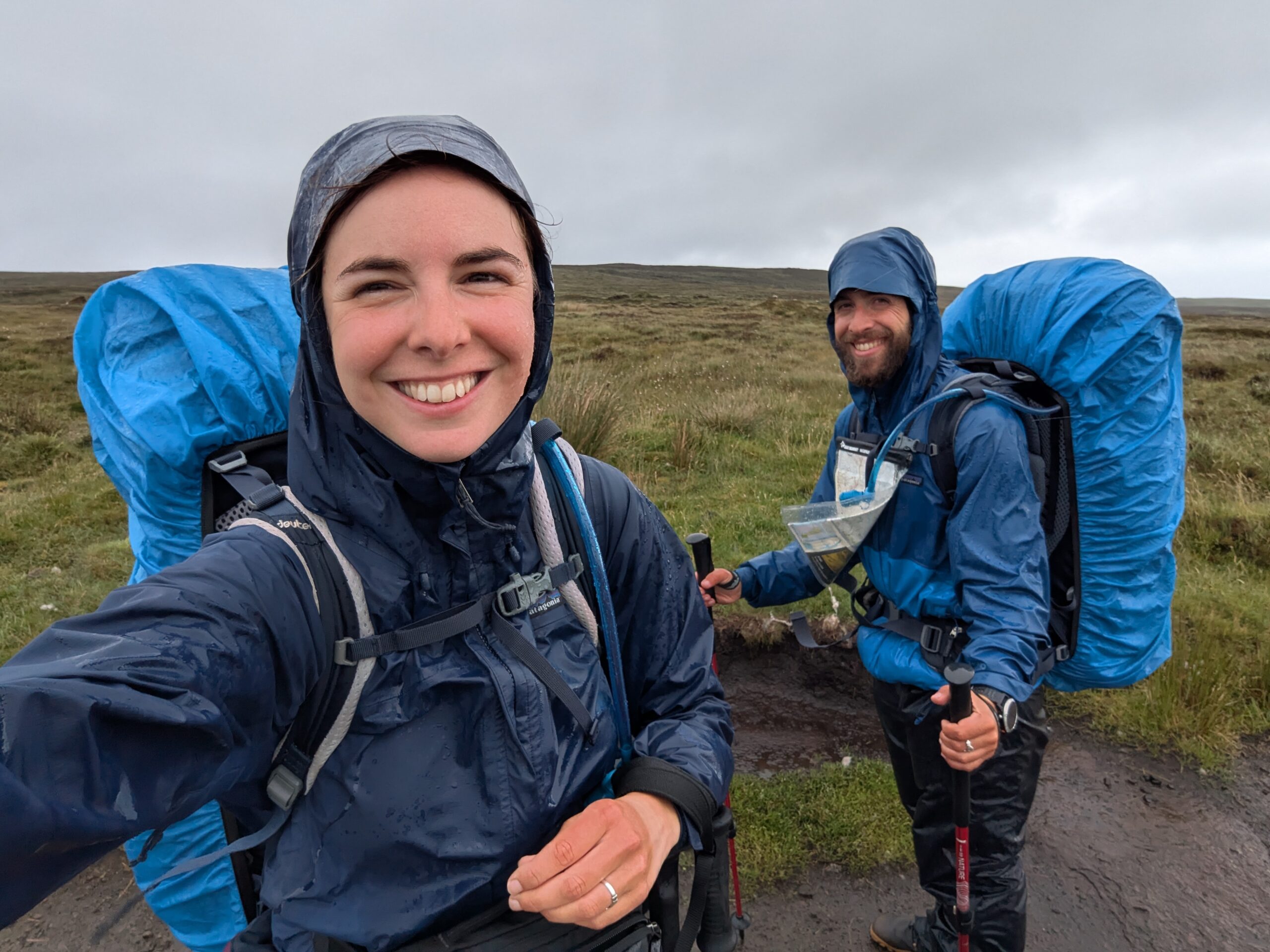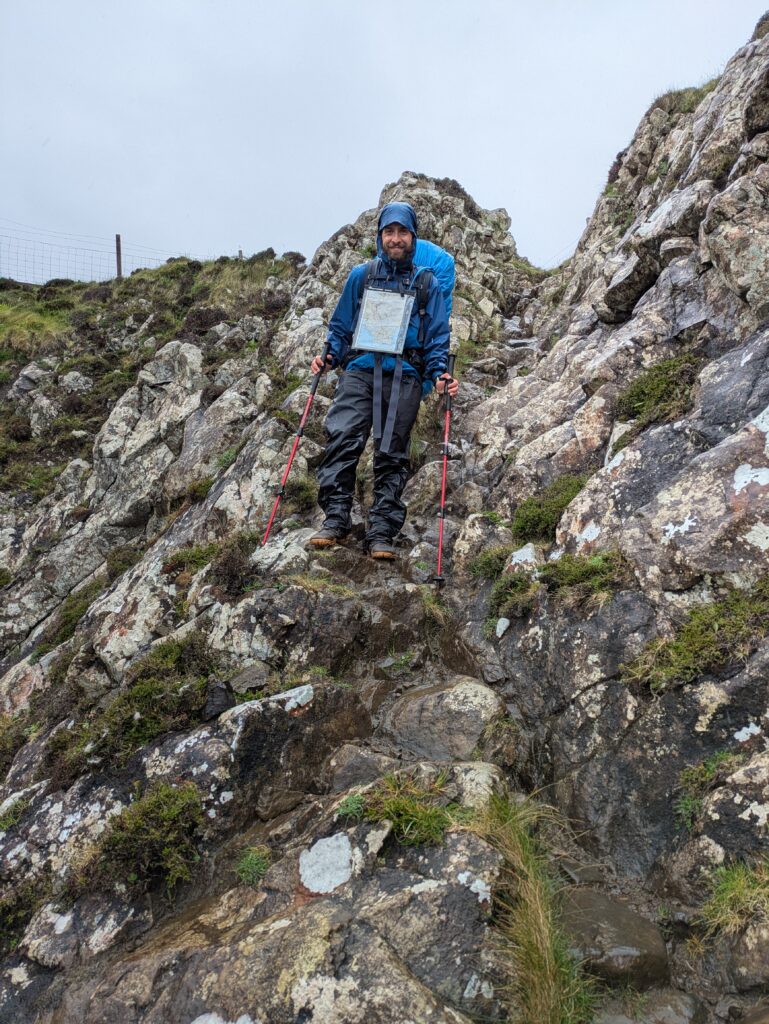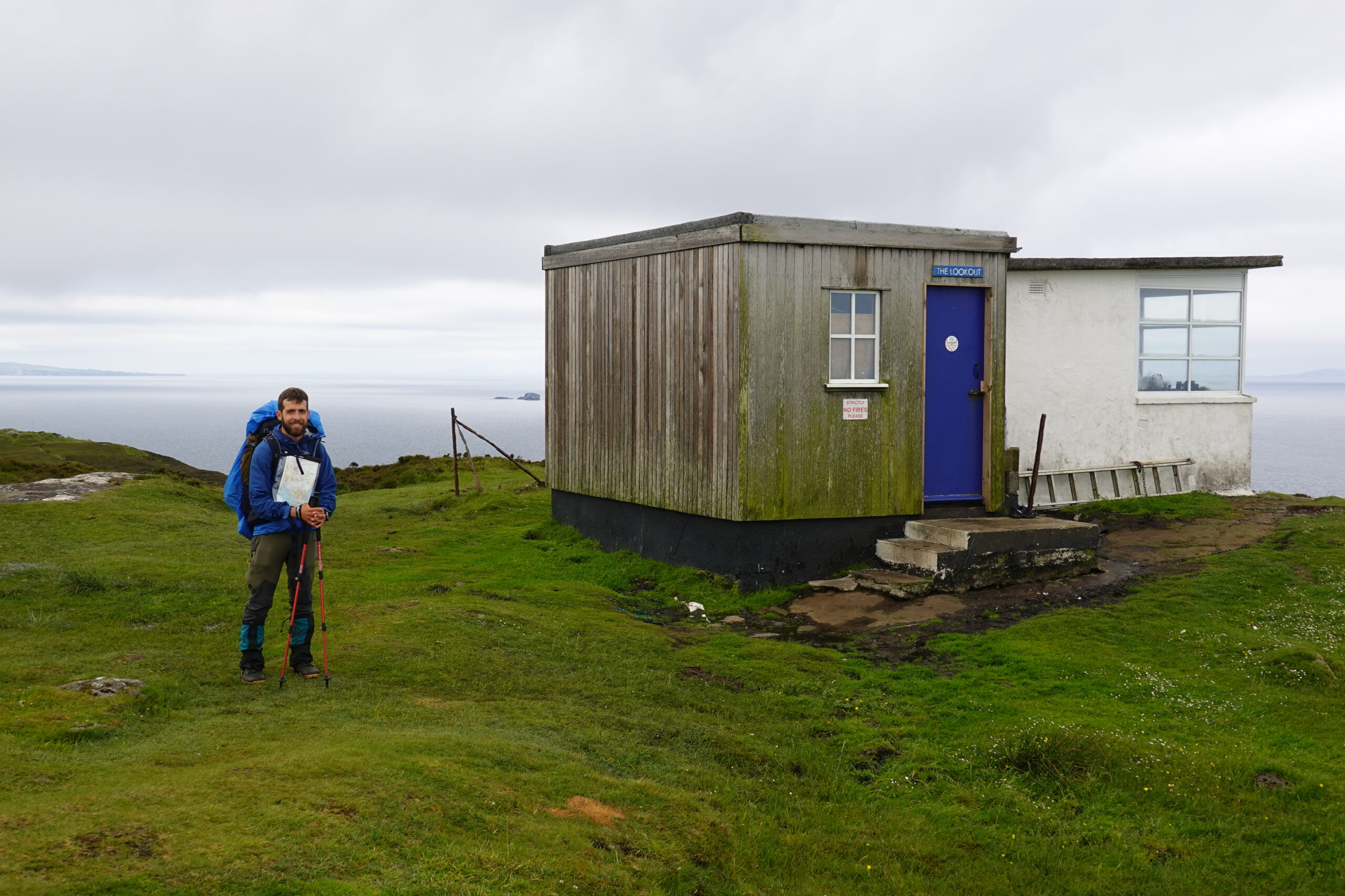 Il pleut, mais on est heureux de recommencer à marcher. Nos sacs nous paraissent tout légers, alors qu’on a fait le plein d’eau et nourriture. On croise un bénévole de la MBA (Mountain Bothies Association), qui vient de participer pendant trois jours à l’entretien du Lookout bothy — qu’on se réjouit de visiter le lendemain.
