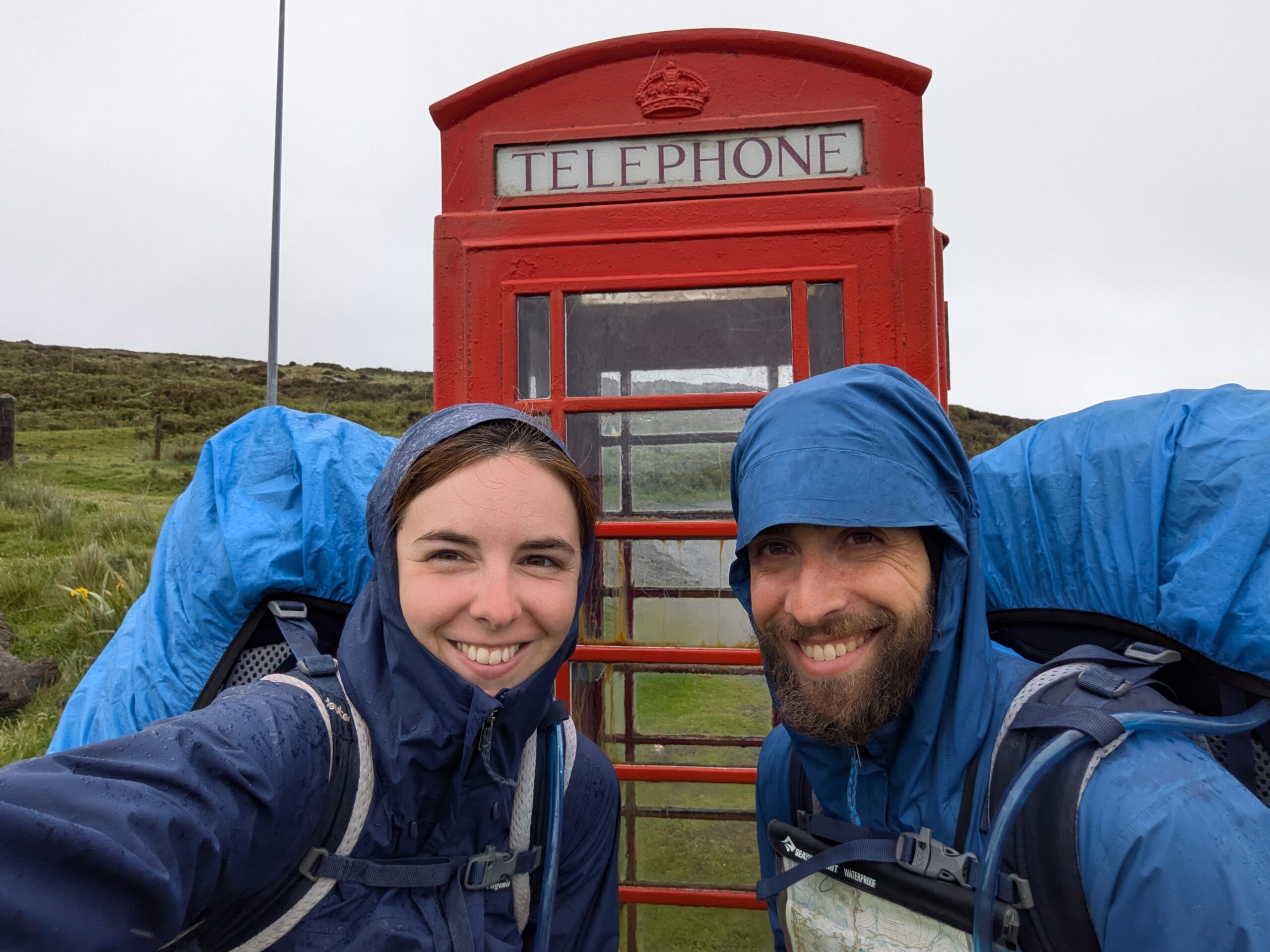 On admire la patience du chauffeur sur les single track roads avec pas mal de trafic. En plus, c’est magique, il se rappelle même de notre arrêt paumé (ça nous change ^^). Après 1h de trajet, on est donc déposés comme prévu à “Shulista Road End”, où se trouve une cabine téléphonique rouge… avec un téléphone fonctionnel à l’intérieur (qui accepte même les cartes bancaires!)! On a tellement l’habitude de trouver des cabines téléphoniques vides ou reconverties en boîtes à livres ou honesty boxes, on ne s’y attendait pas.
