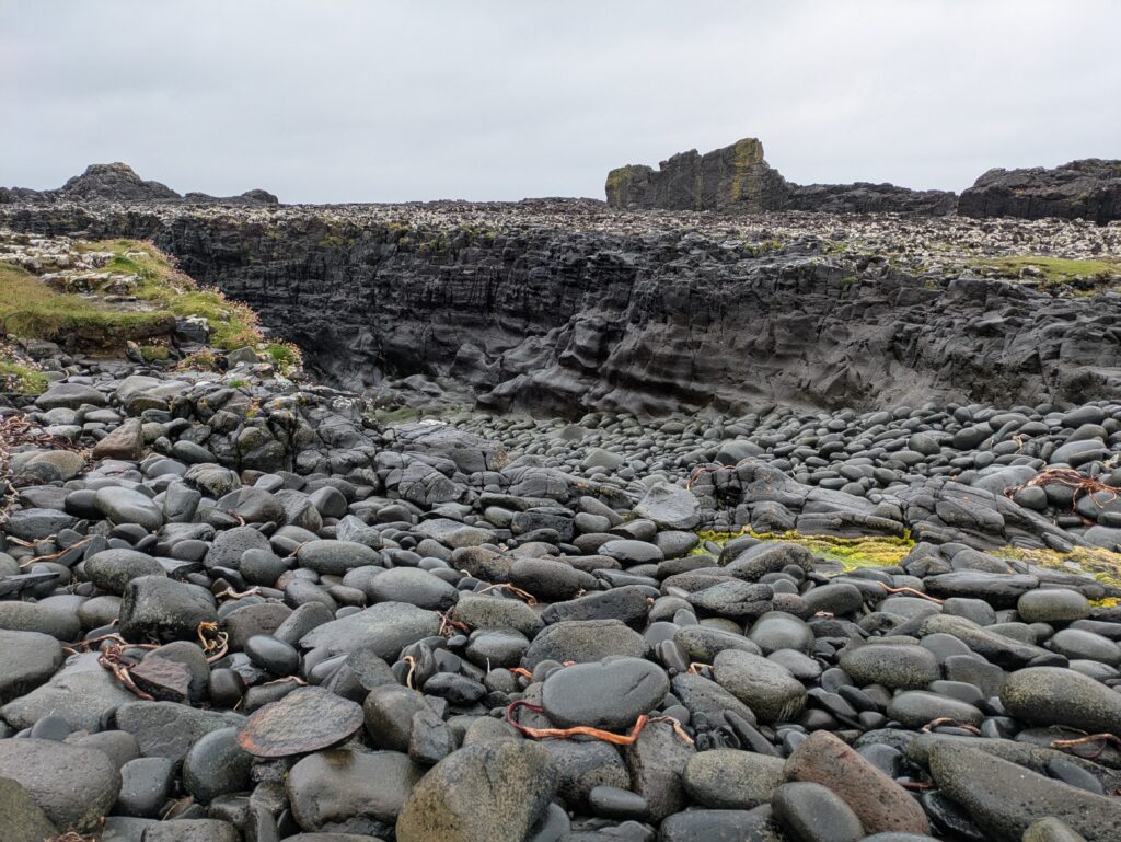 On s’émerveille devant la géologie locale. Beaucoup de falaises sont composées de colonnes de basalte et on aperçoit plusieurs grottes marines qu’on rêve d’explorer en kayak.