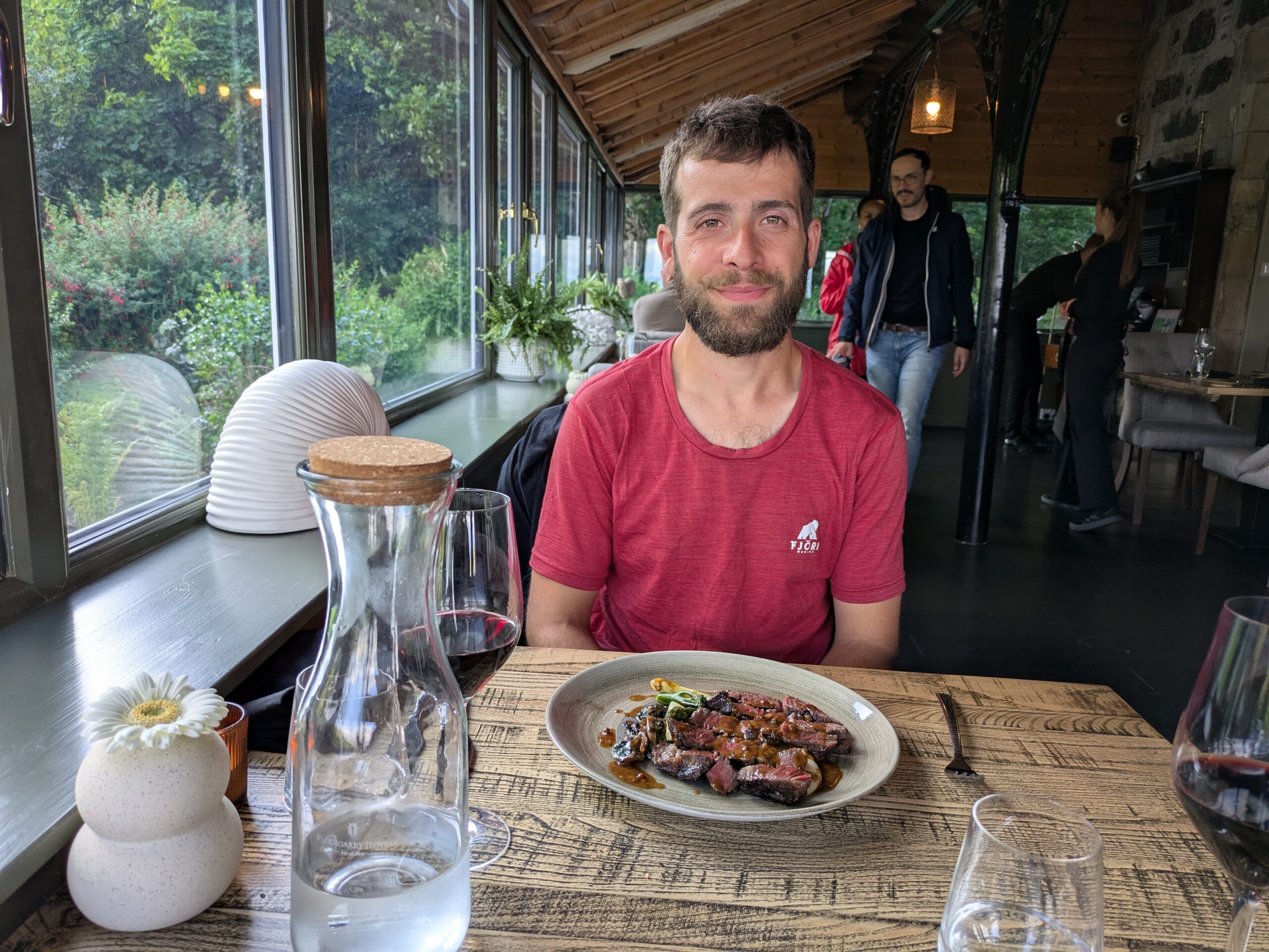 On est donc soulagés d’arriver à Flodigarry, vers 14h, et on se pose au bar de l’hôtel pour manger un morceau.