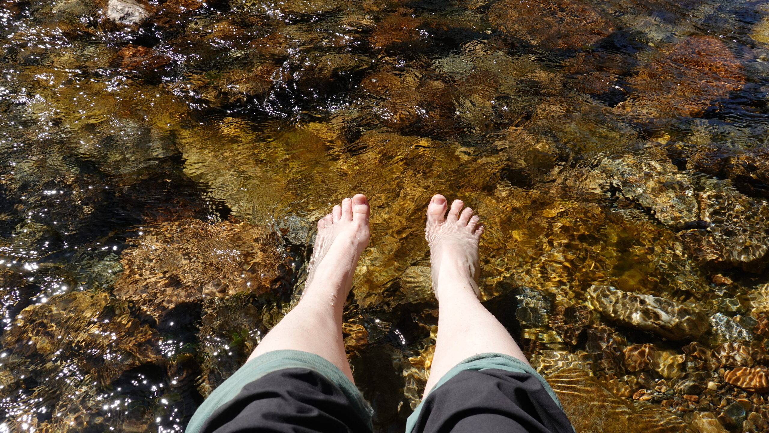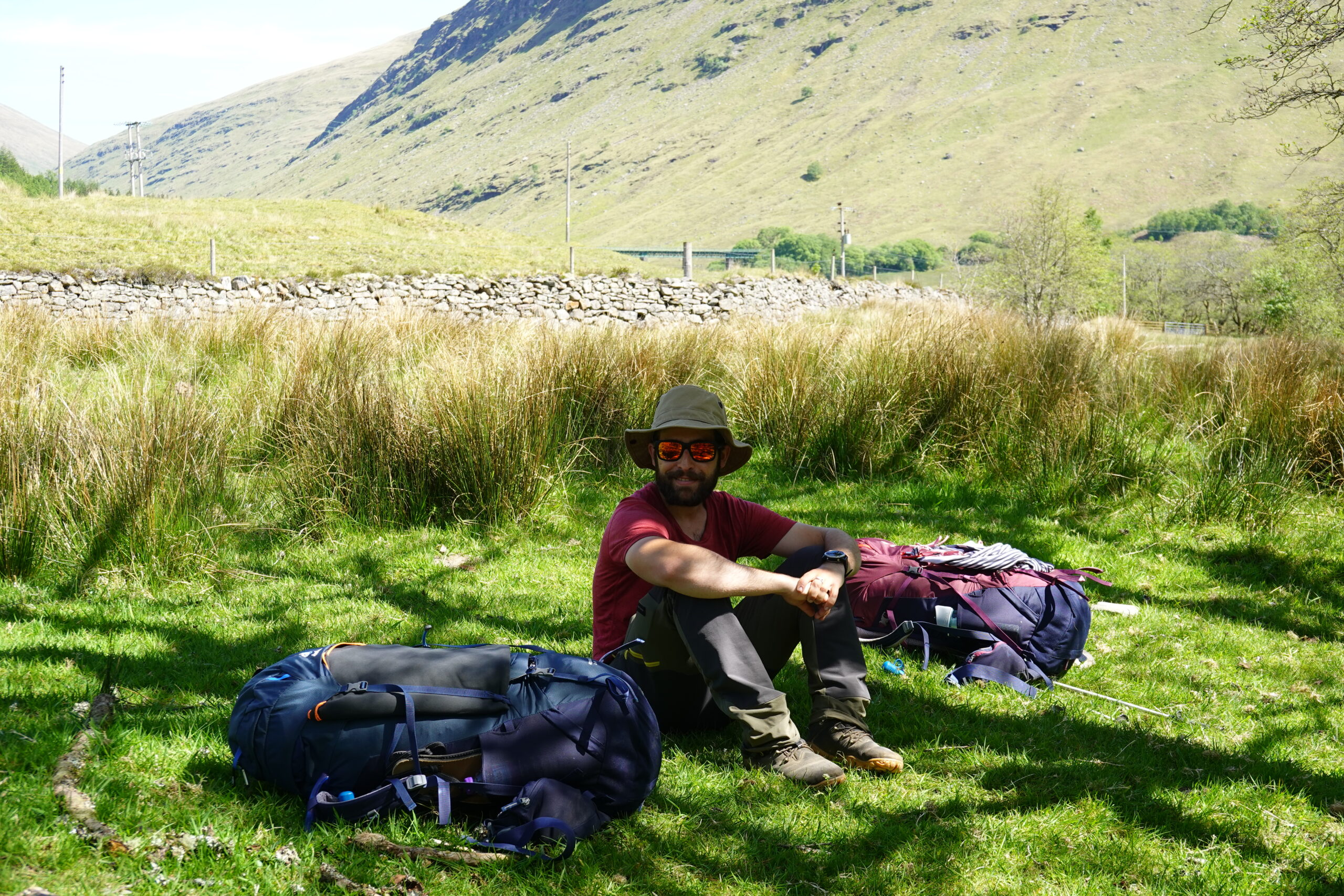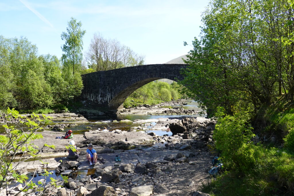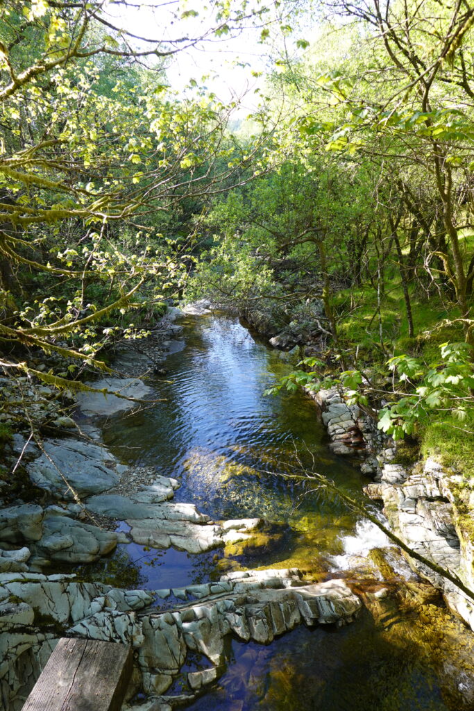 On fait une pause au bord de la rivière pour tremper les pieds et manger nos sandwiches à l’ombre, tout en observant l’eau qui coule et un grimpereau trop mignon. On rencontre Jo, une Anglaise de Southampton très sympa qui fait le WHW comme premier trek en solo, et première expérience de camping sauvage.