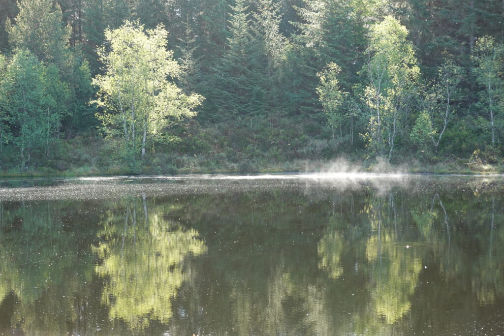 On passe devant le “Lochan of the Lost Sword”, où la légende dit que se trouve l’épée de Robert the Bruce (mais des recherches scientifiques n’ont rien trouvé). C’était un lieu bucolique, avec les arbres se reflétant dans l’eau et des petits pans de brume dansant au-dessus de la surface.