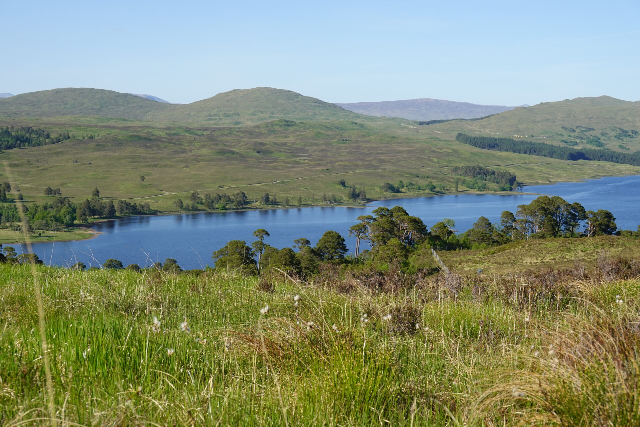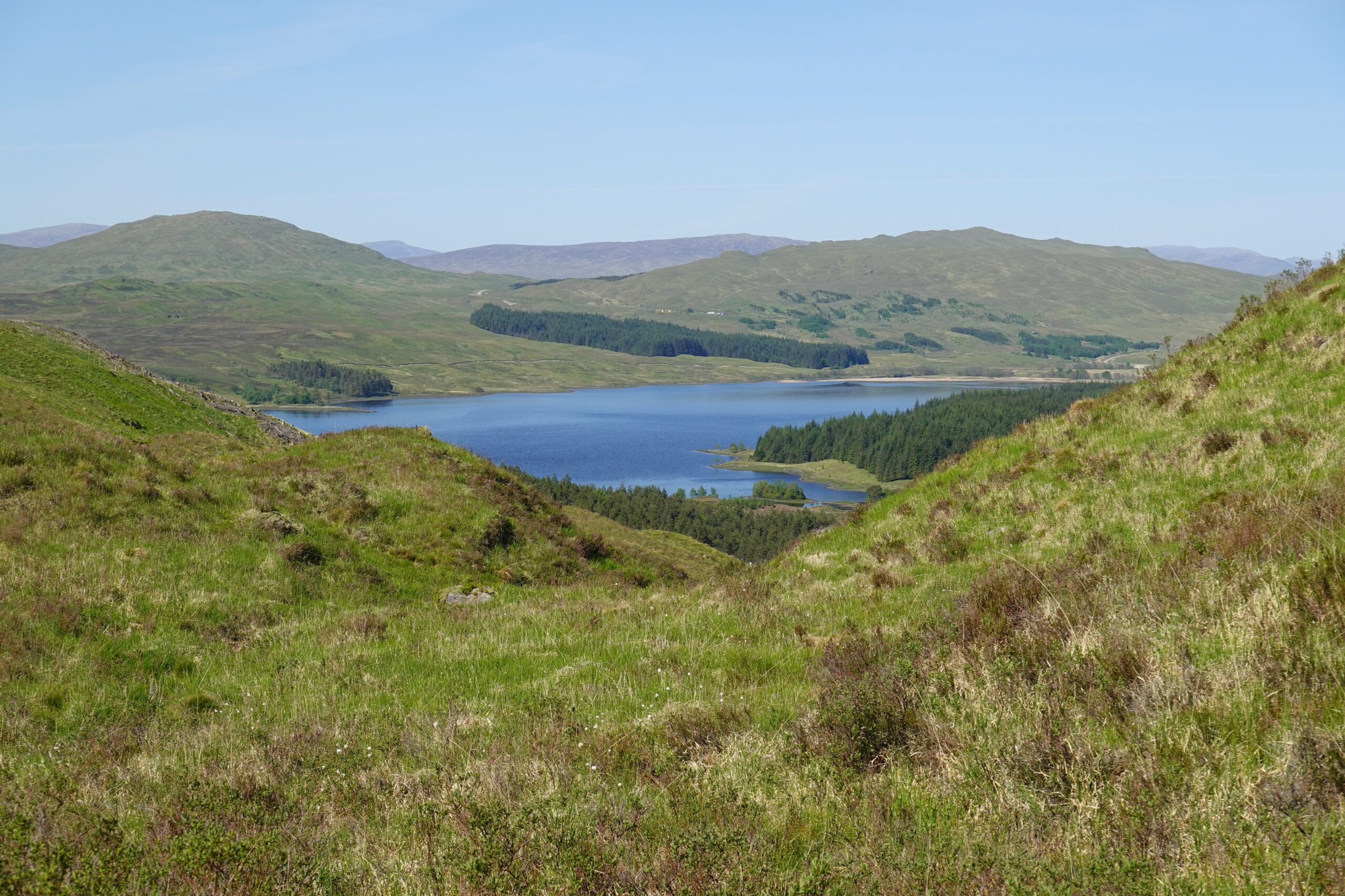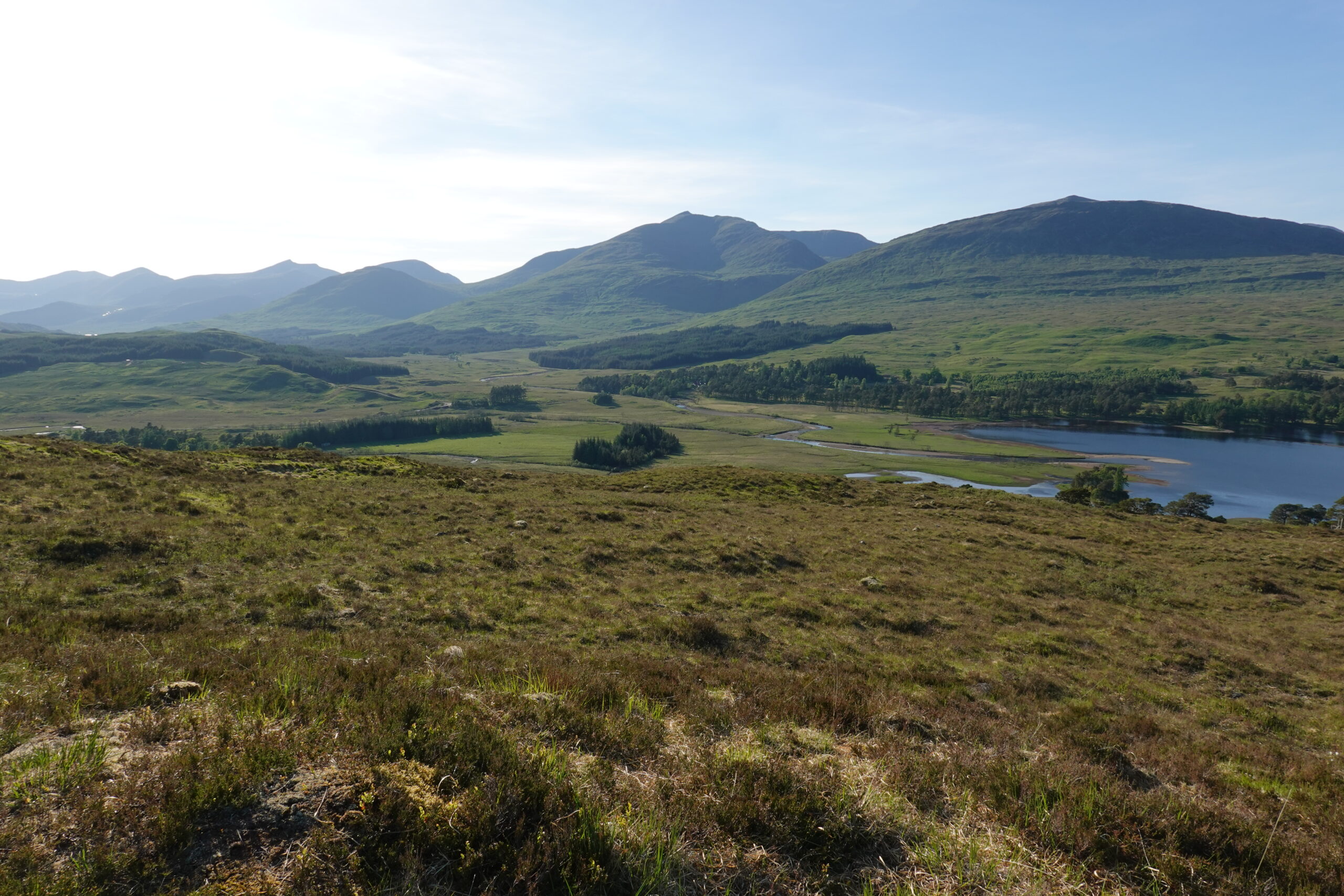 Depuis Mam Carraigh, on a droit à de superbes vues sur Loch Tulla et les montagnes environnantes.