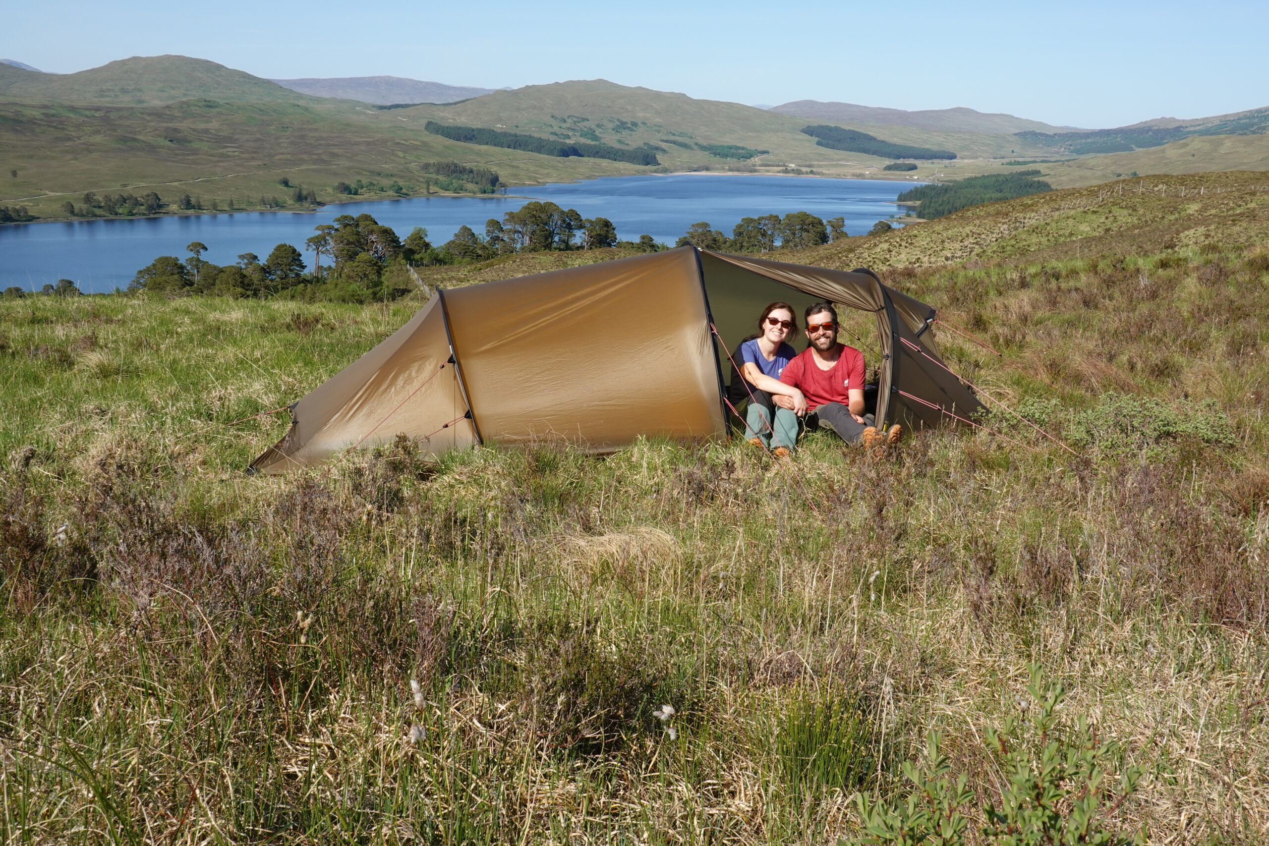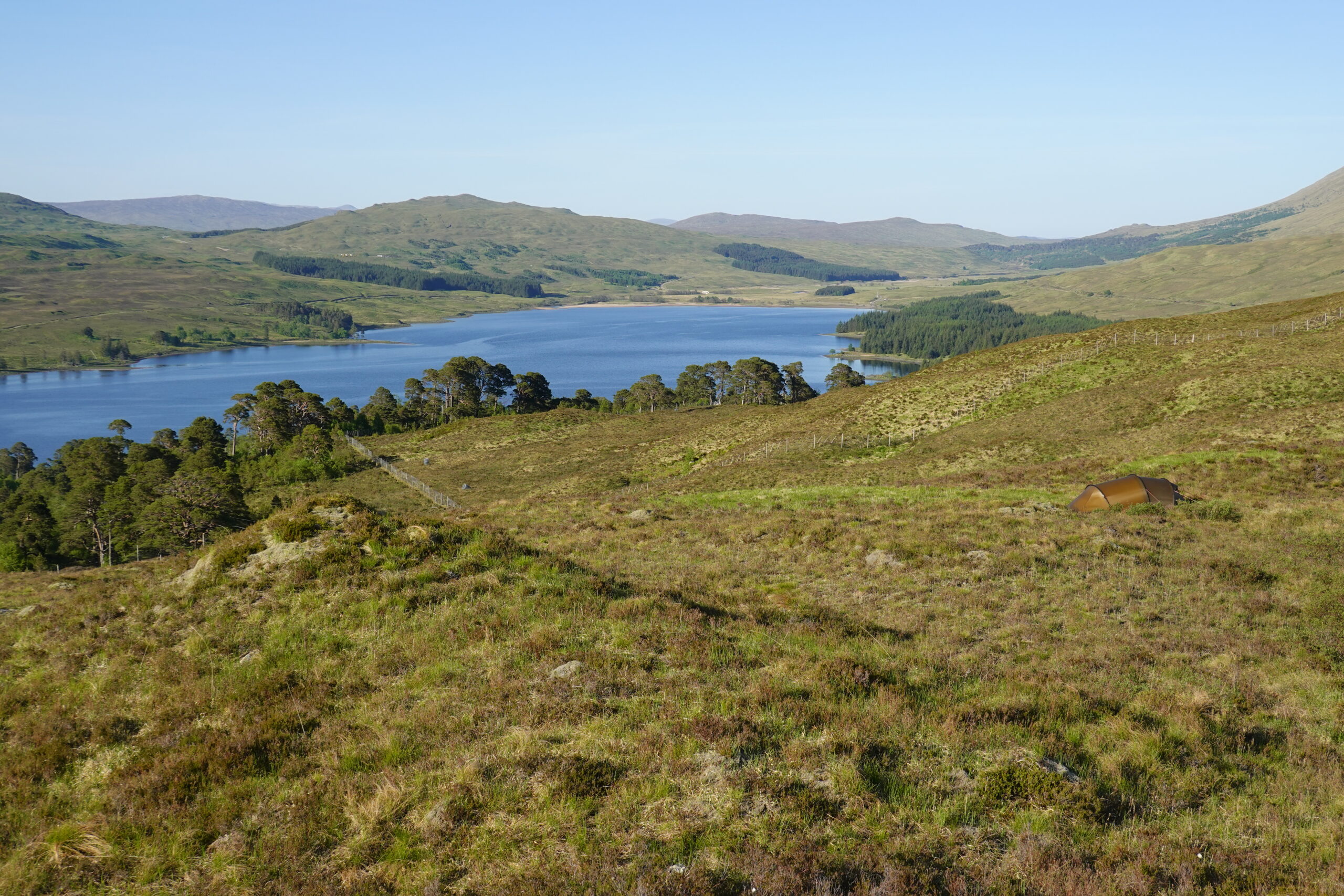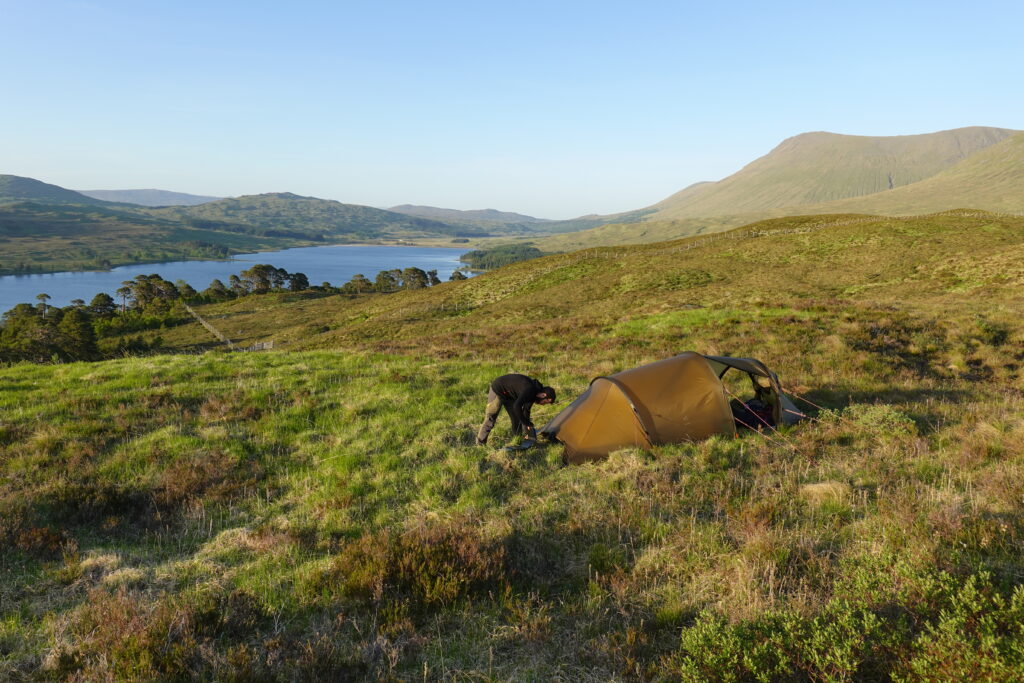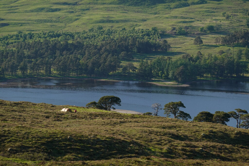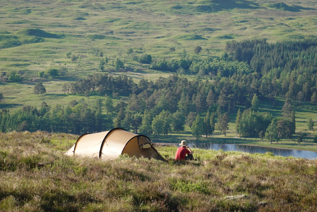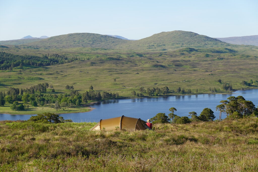 On profite d’être tout seuls pour prendre quelques photos, avant de planter la tente et de se poser au soleil face au loch pour lire et écrire.
