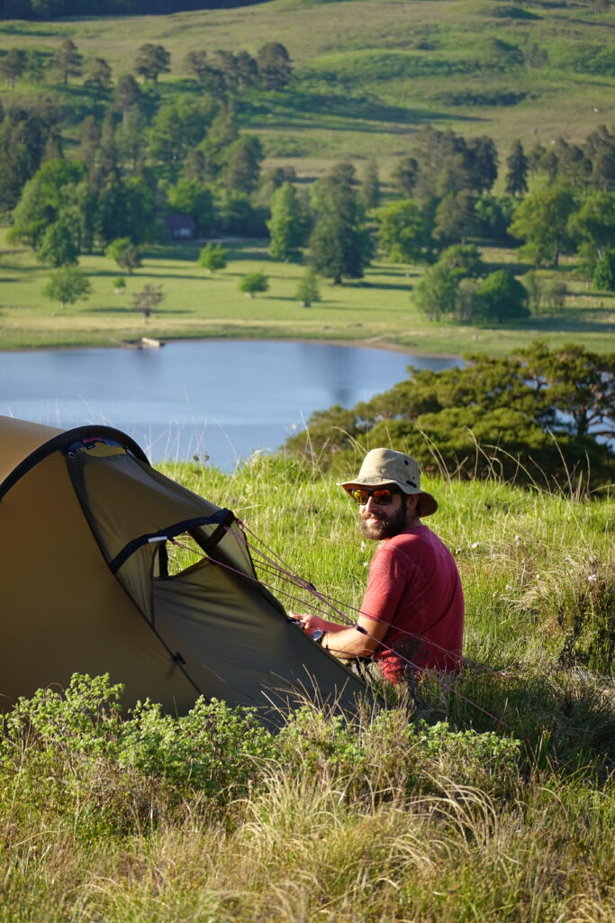 C’est si beau, on décide de camper dans le coin. Après quelques recherches, on se décide pour un spot un peu en contrebas, face à ce splendide panorama et sur un sol qui serait sûrement gorgé d’eau s’il ne faisait pas si sec depuis des semaines.