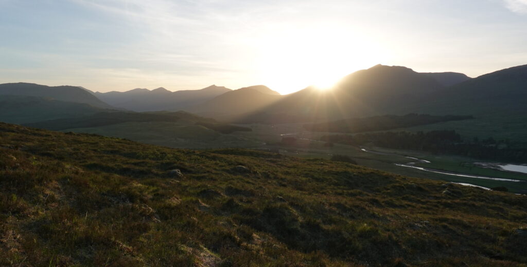 On a regardé le soleil disparaître derrière Stob a’ Choire Odhair, à 21h, avant de se réfugier dans la tente pour le “tick ckeck” du soir (verdict: 0, youhou!) et un peu de lecture.