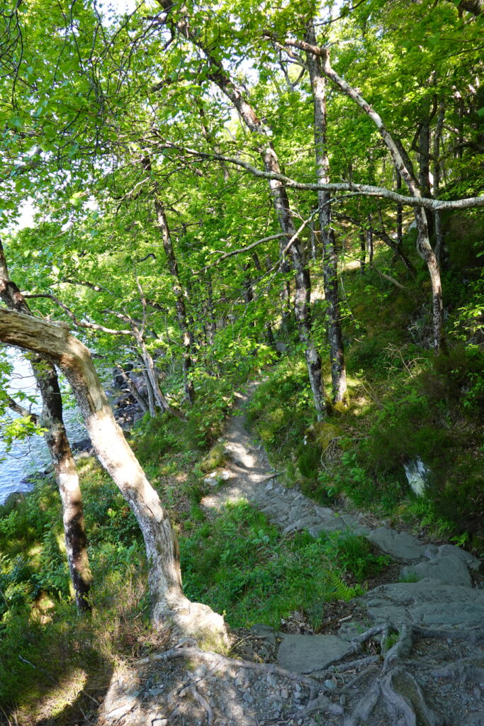 On attaque ensuite la “trickiest section” de la partie Loch Lomond du WHW. Il y a plein de rochers et racines à enjamber ou contourner, et plein de petites montées et descentes avec de grosses marches. C’est vraiment super beau, et on n’a pas l’occasion de s’ennuyer!