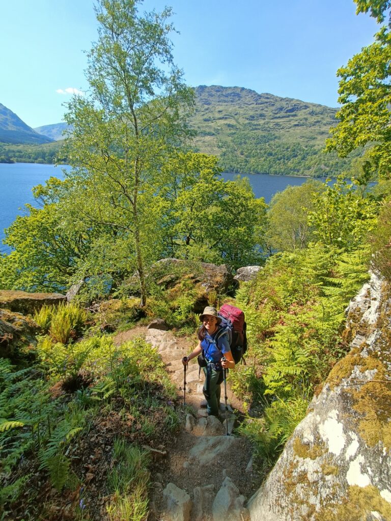 Pas mal de gens sur Internet ont l’air de se plaindre de cette section: trop de dénivelé, trop de racines, trop de coins galères, un loch qui n’en finit pas… Personnellement, on a vraiment adoré cette section du Loch Lomond, bien plus que ce qu’on avait imaginé!