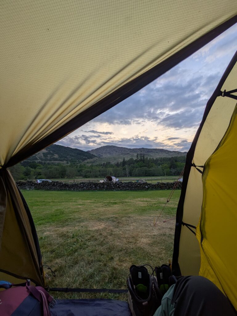 Vu la nuit précédente un peu courte, on s’est octroyé une bonne “grasse mat'” jusqu’à 8h. On était si bien dans notre cocon si confortable! Mais le “Way” nous appelle, donc on plie bagages et… on rencontre nos premiers midges du voyage! Il fallait bien que ça arrive un jour. Heureusement, ils étaient peu nombreux et peu féroces, et le Smidge semble les avoir tenus un peu à l’écart.