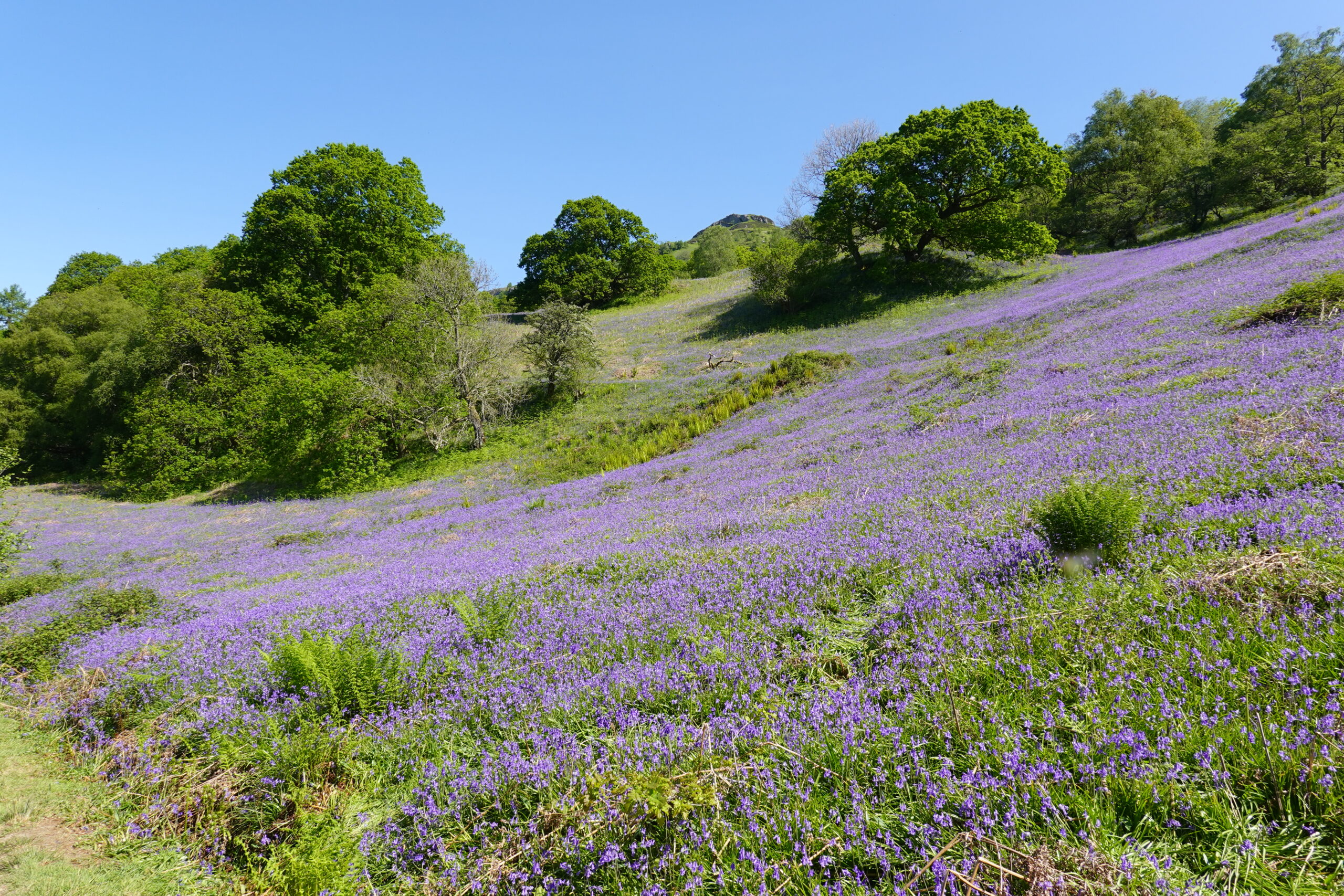 Les bluebells rajoutent une couche de splendeur, en formant de denses tapis violets impressionnants qui couvrent les sous-bois et les flancs de coteaux.