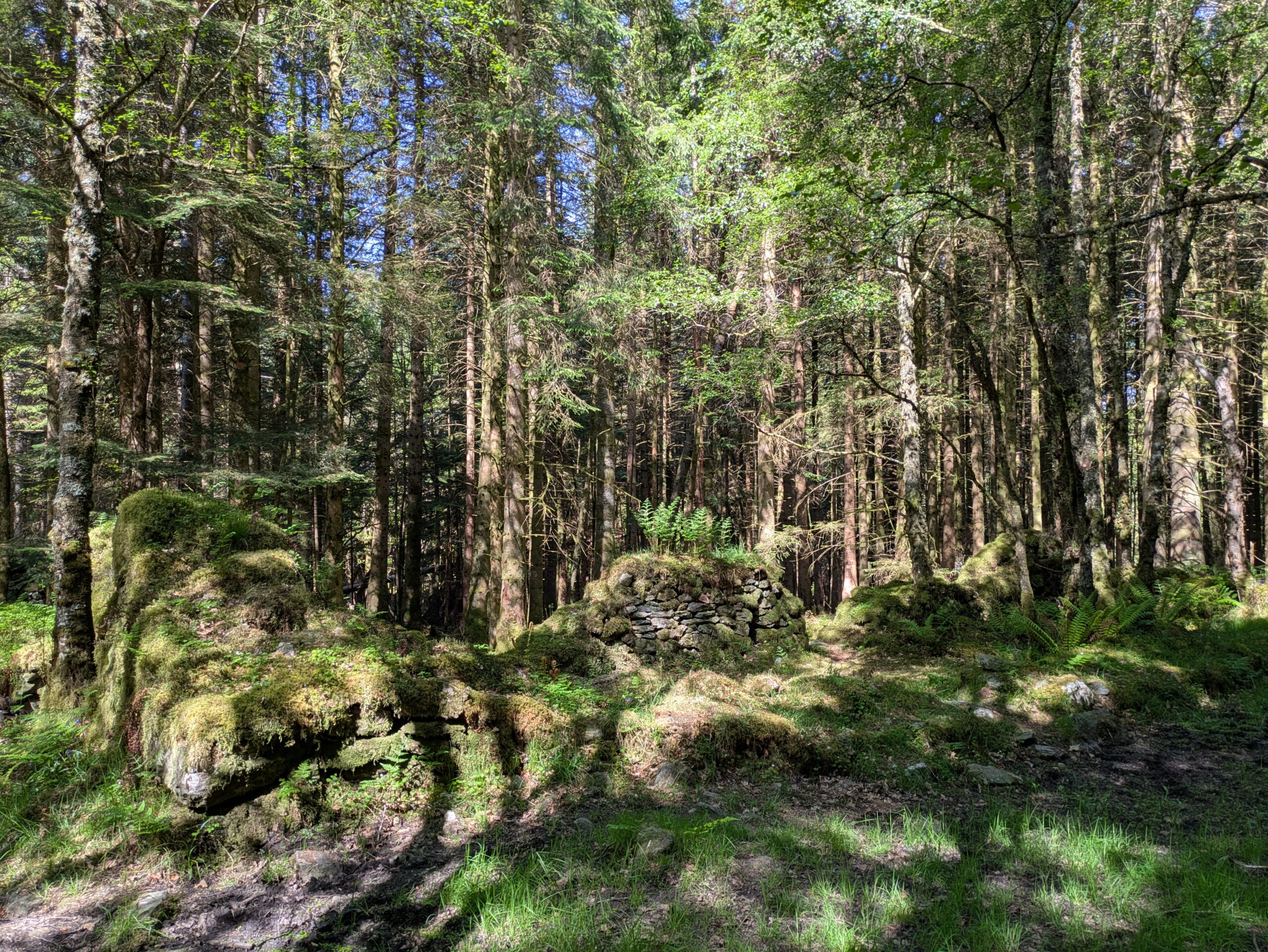 Par curiosité, on jette un oeil à Doune Byre Bothy, un des deux seuls bothies situés le long du WHW. Il est dans un piteux état: sol couvert de détritus, mégots de cigarettes et cannettes de bière renversées, forte odeur de beuh… Il faudrait une sacrée tempête pour nous convaincre de dormir là dedans! Heureusement, ce n’était de toute façon pas dans nos plans.