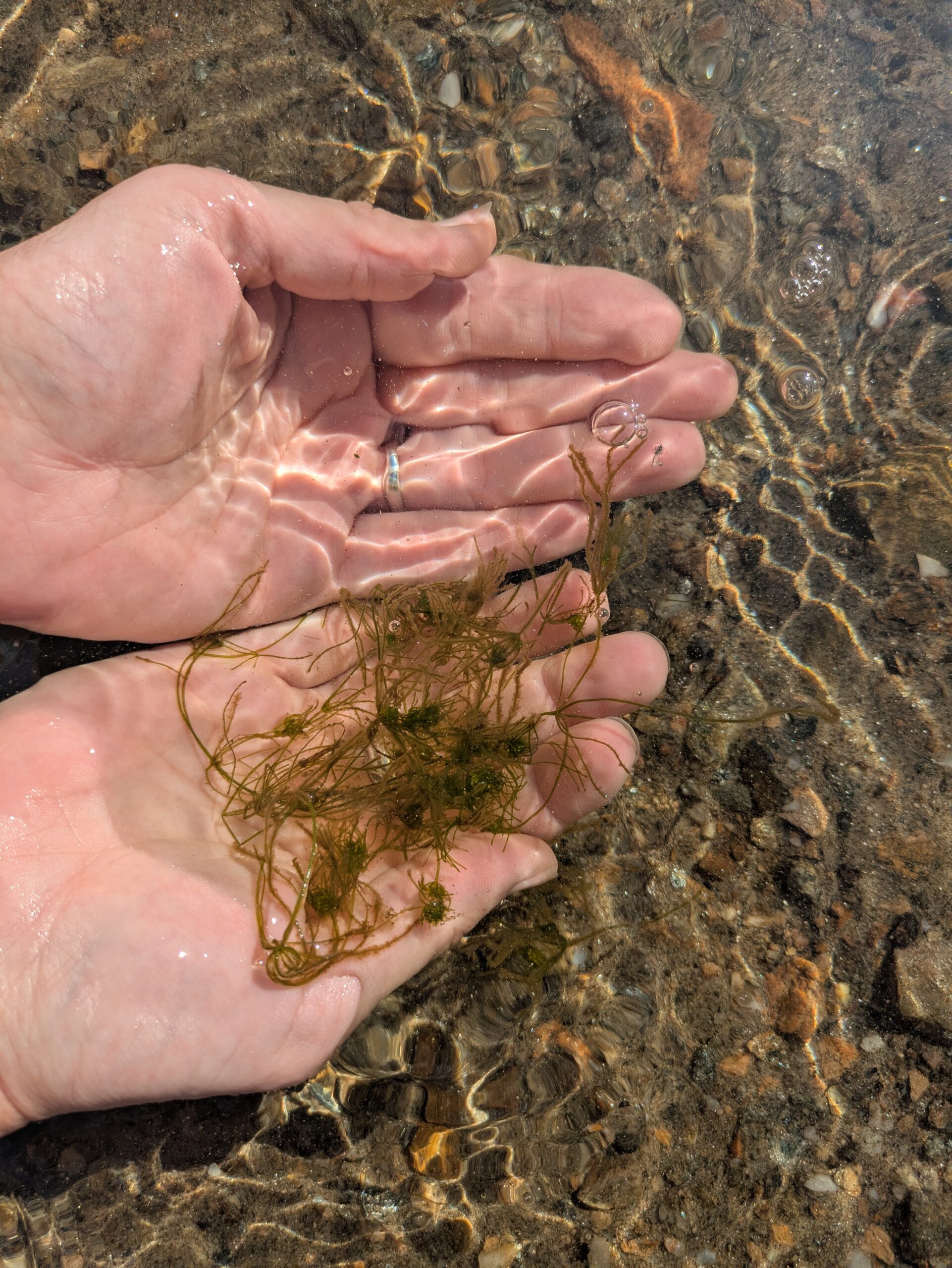 On meurt de chaud, donc on enfile les maillots et on se baigne dans l’eau fraîche, au fond peuplé de macrophytes. Le calme n’est troublé que par le bruit de la route sur la rive opposée et de deux jet-skis qui font le tour des plages.
