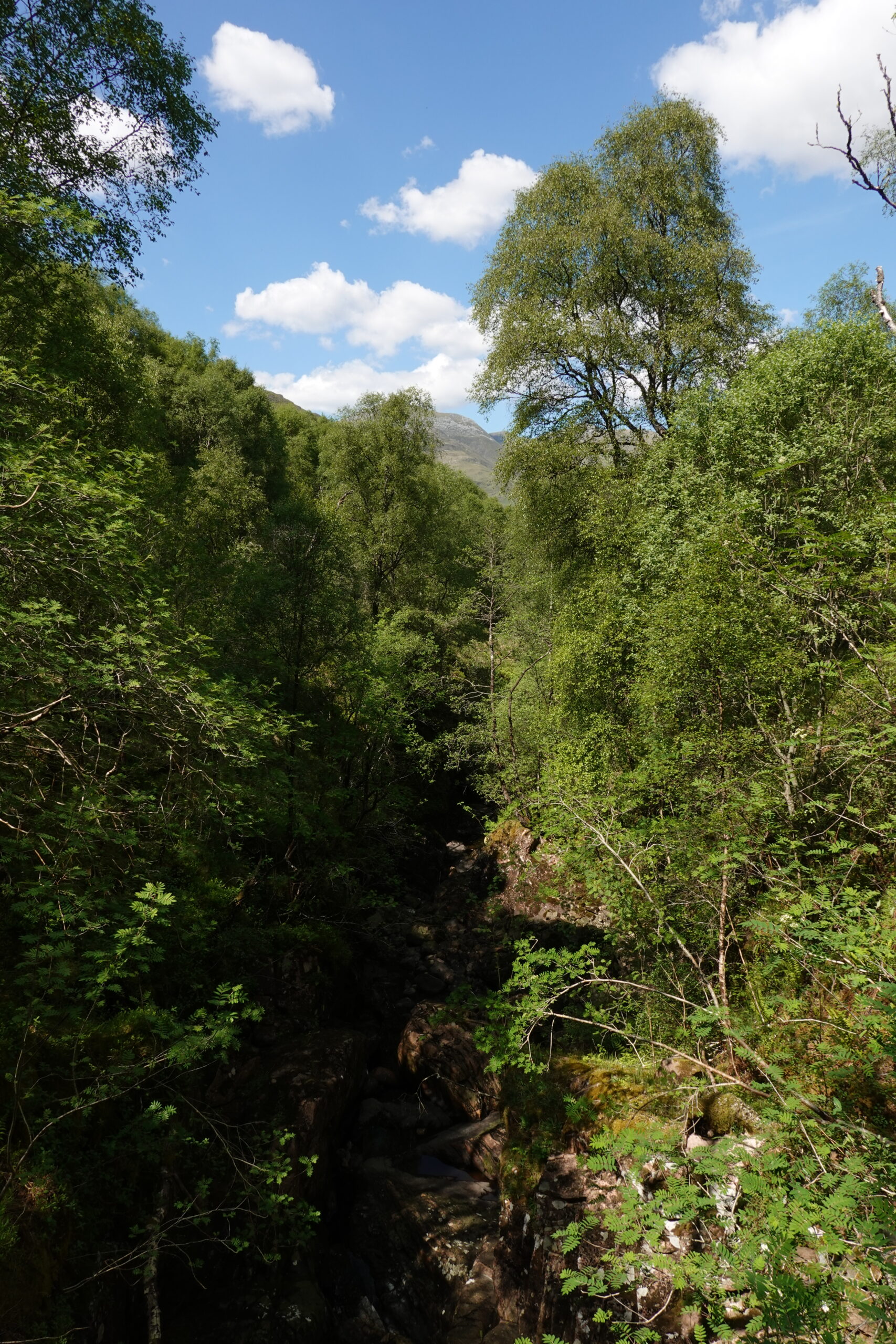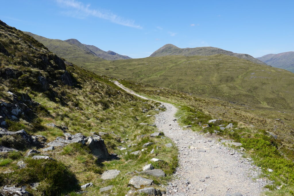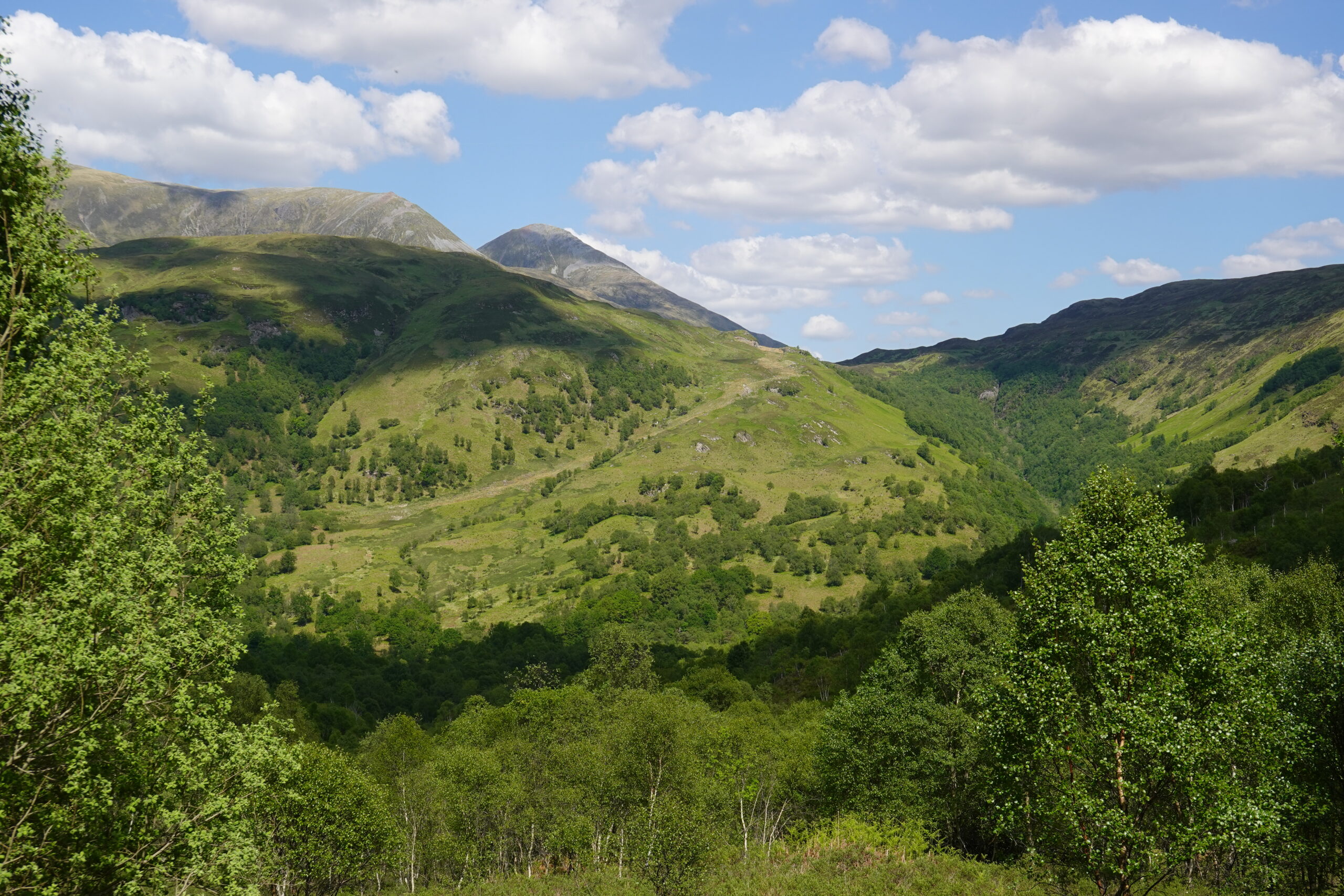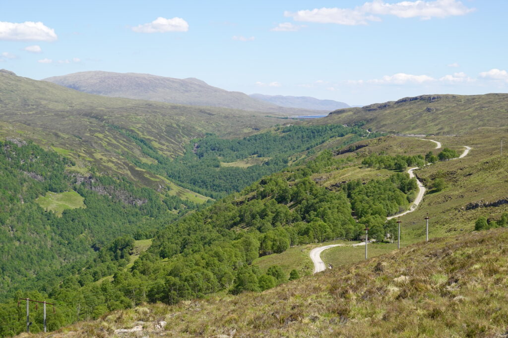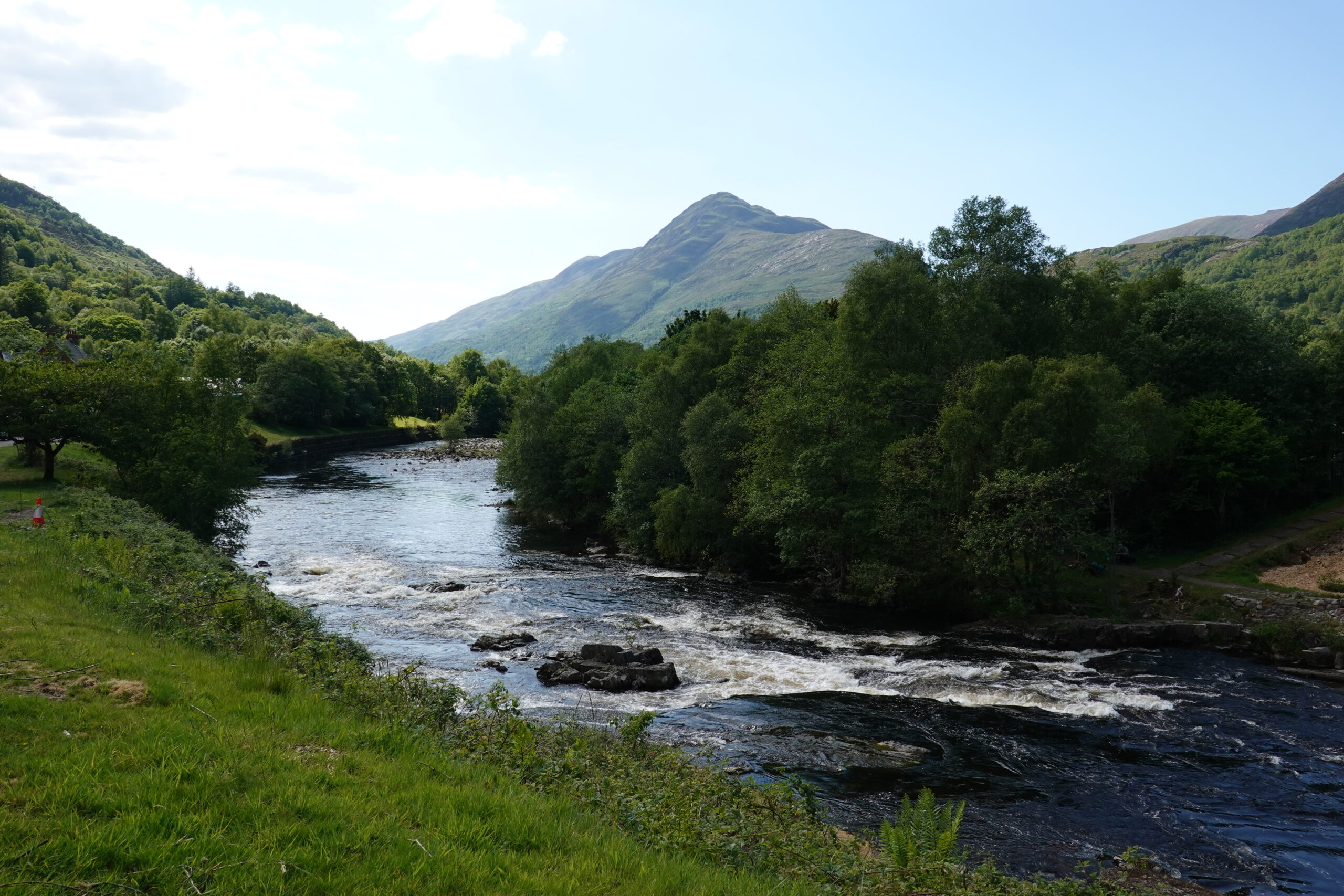 On a très bien dormi dans le campement informel de Kingshouse et on a même pu prendre un super petit-déj’ au bar (Full Scottish + Continental, à volonté, pour seulement 10£!). Puis on plie la tente et on part sur le chemin, qui longe un petit moment l’A82, très, très fréquentée en ce samedi ensoleillé.