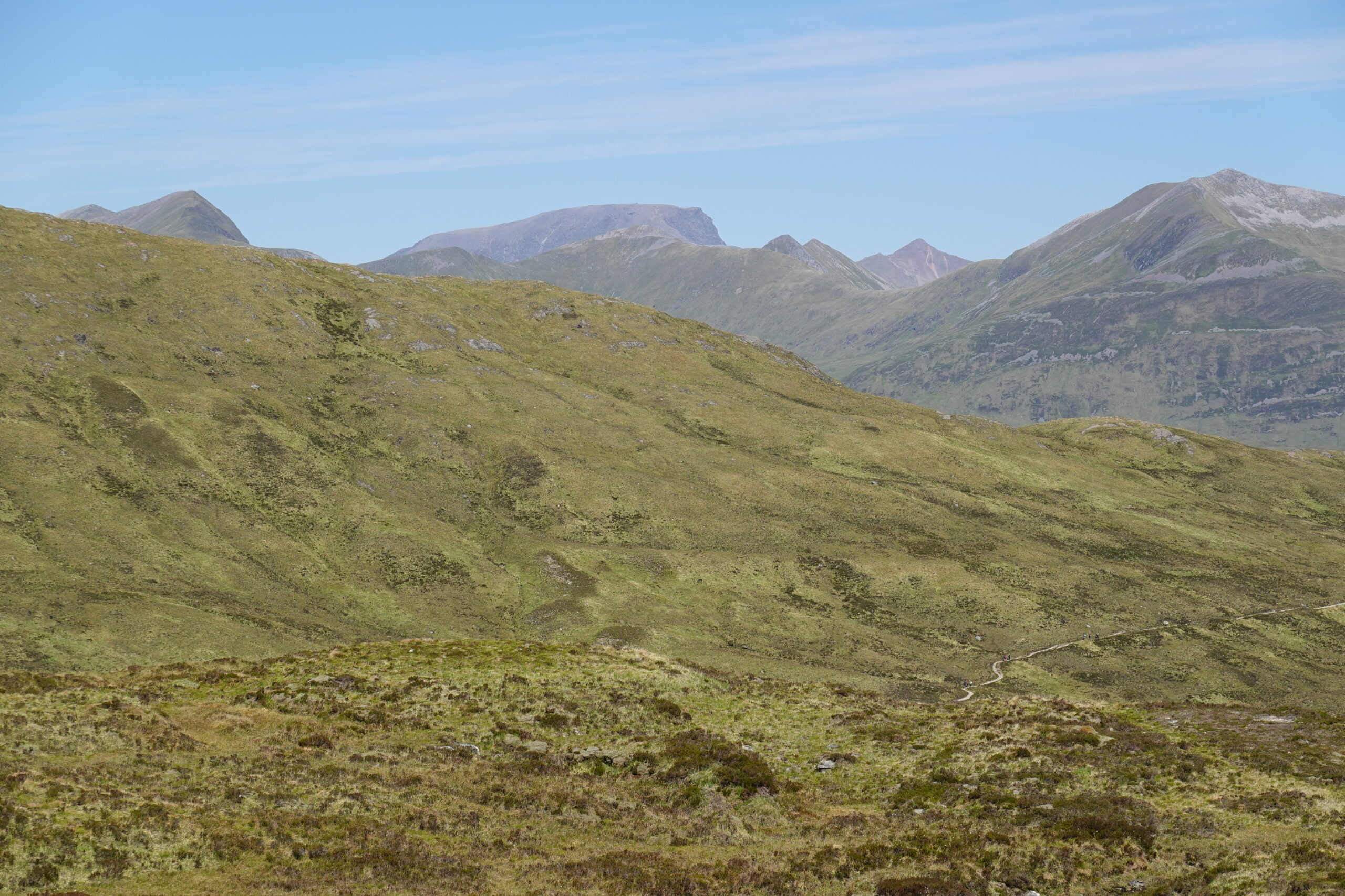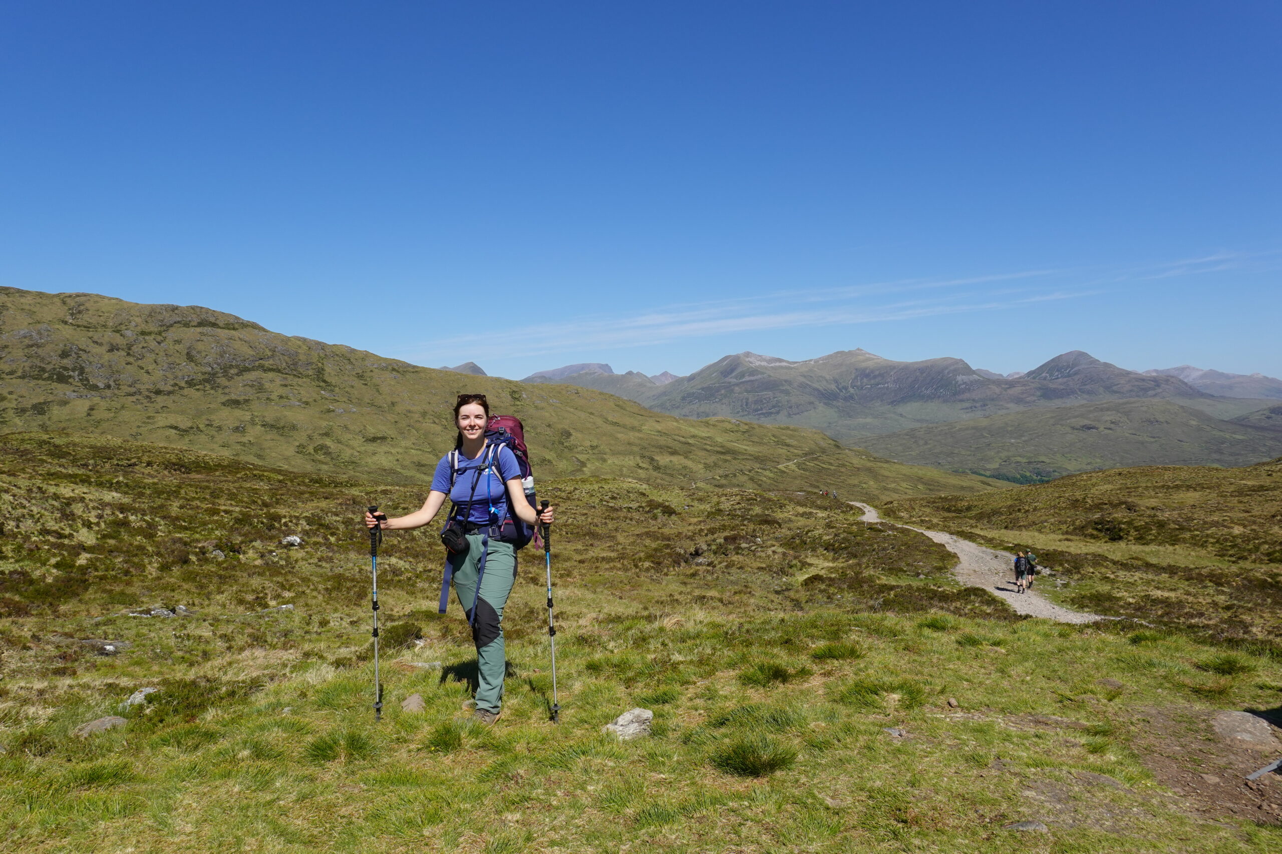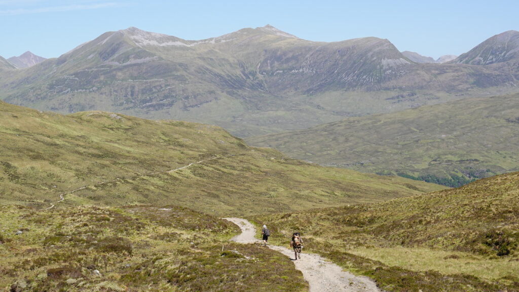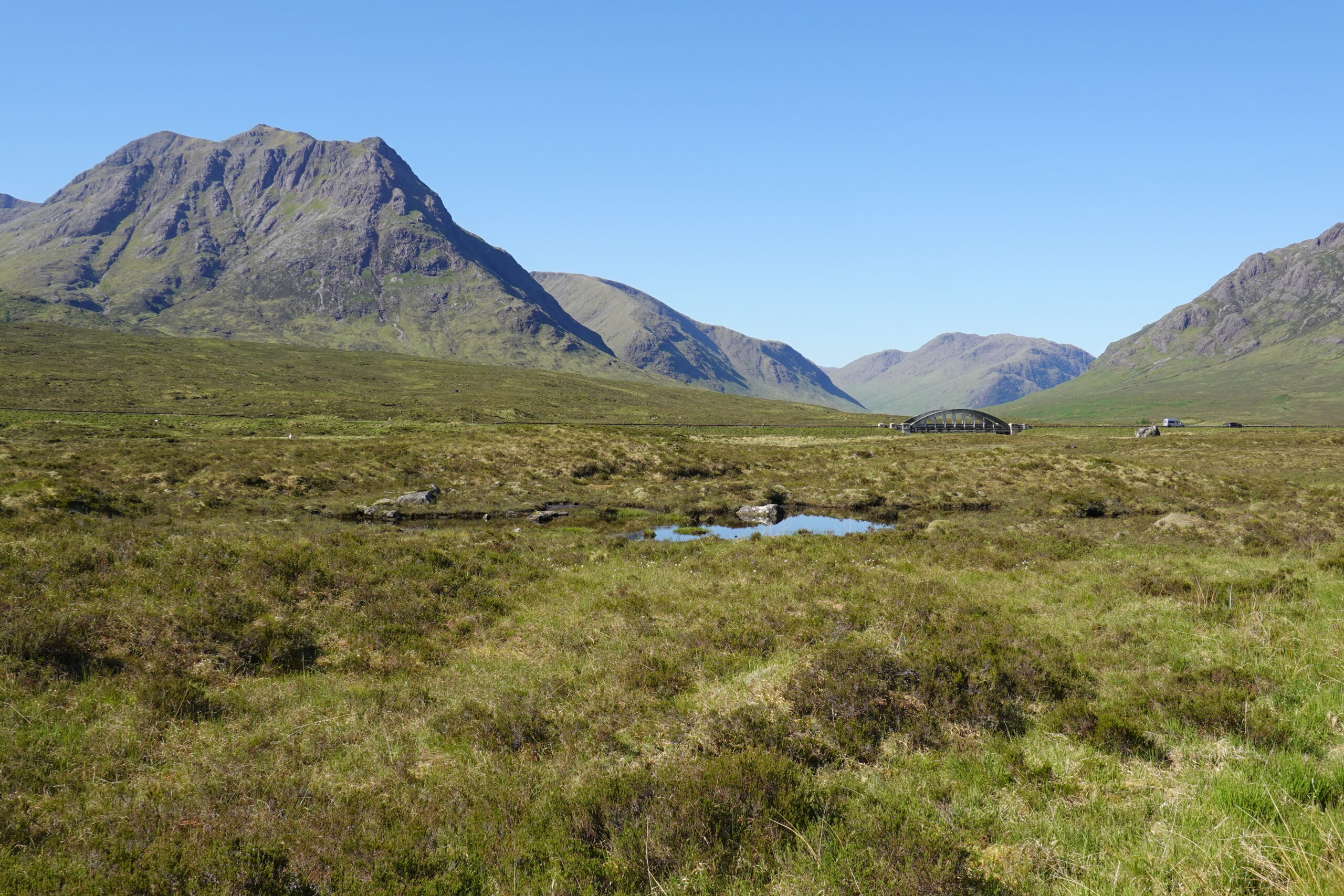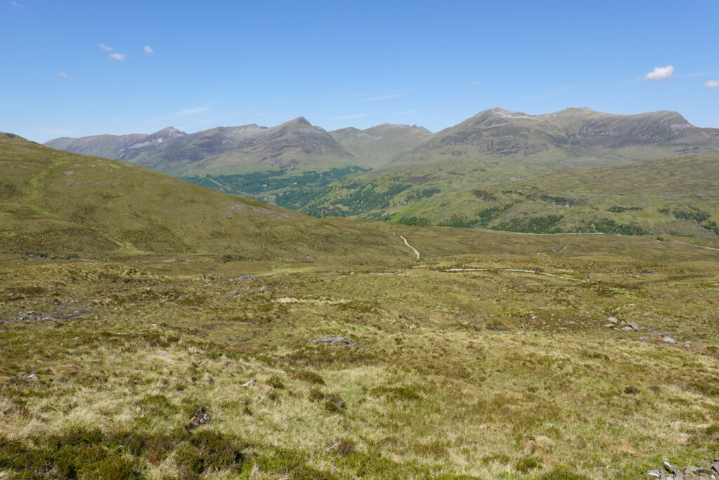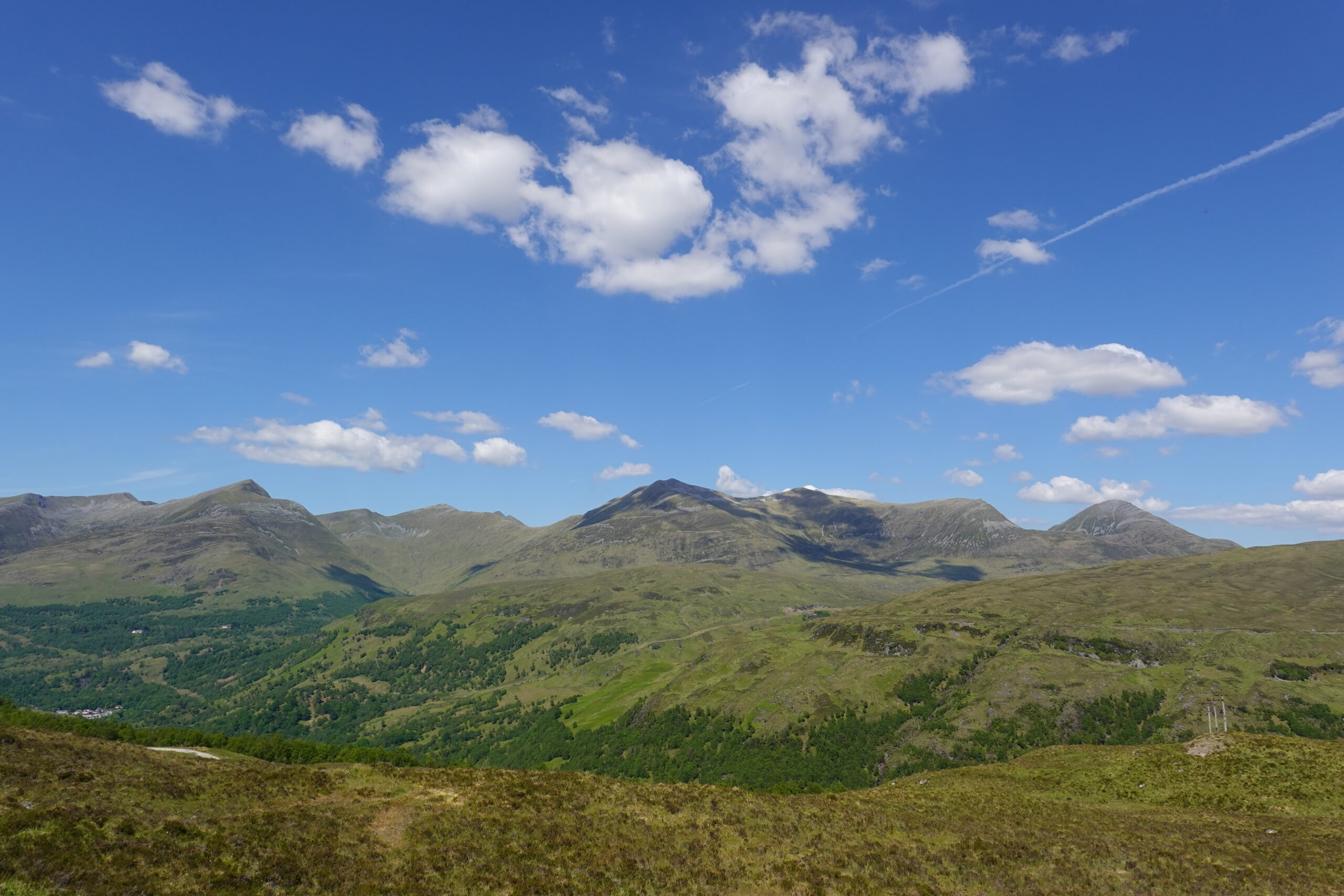 On a très bien dormi dans le campement informel de Kingshouse et on a même pu prendre un super petit-déj’ au bar (Full Scottish + Continental, à volonté, pour seulement 10£!). Puis on plie la tente et on part sur le chemin, qui longe un petit moment l’A82, très, très fréquentée en ce samedi ensoleillé.
