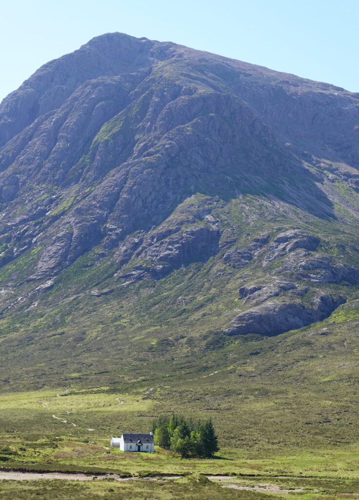 En approchant des Three Sisters of Glencoe, c’est le chaos: il y a des voitures parquées absolument partout, c’est dingue! On peut voir la “Wee White House” (Lagangarbh Hut de son vrai nom), sans doute l’une des maisons les plus photographiées du pays.