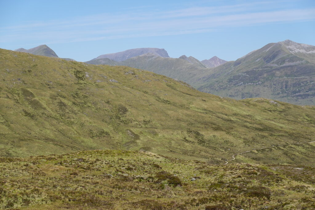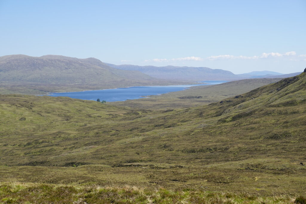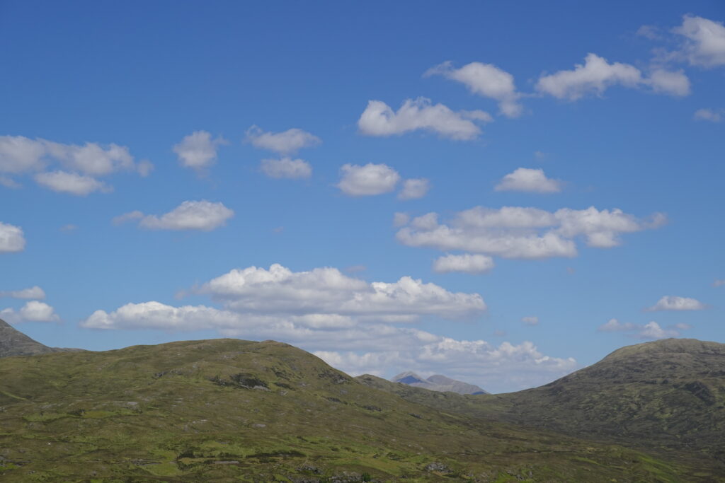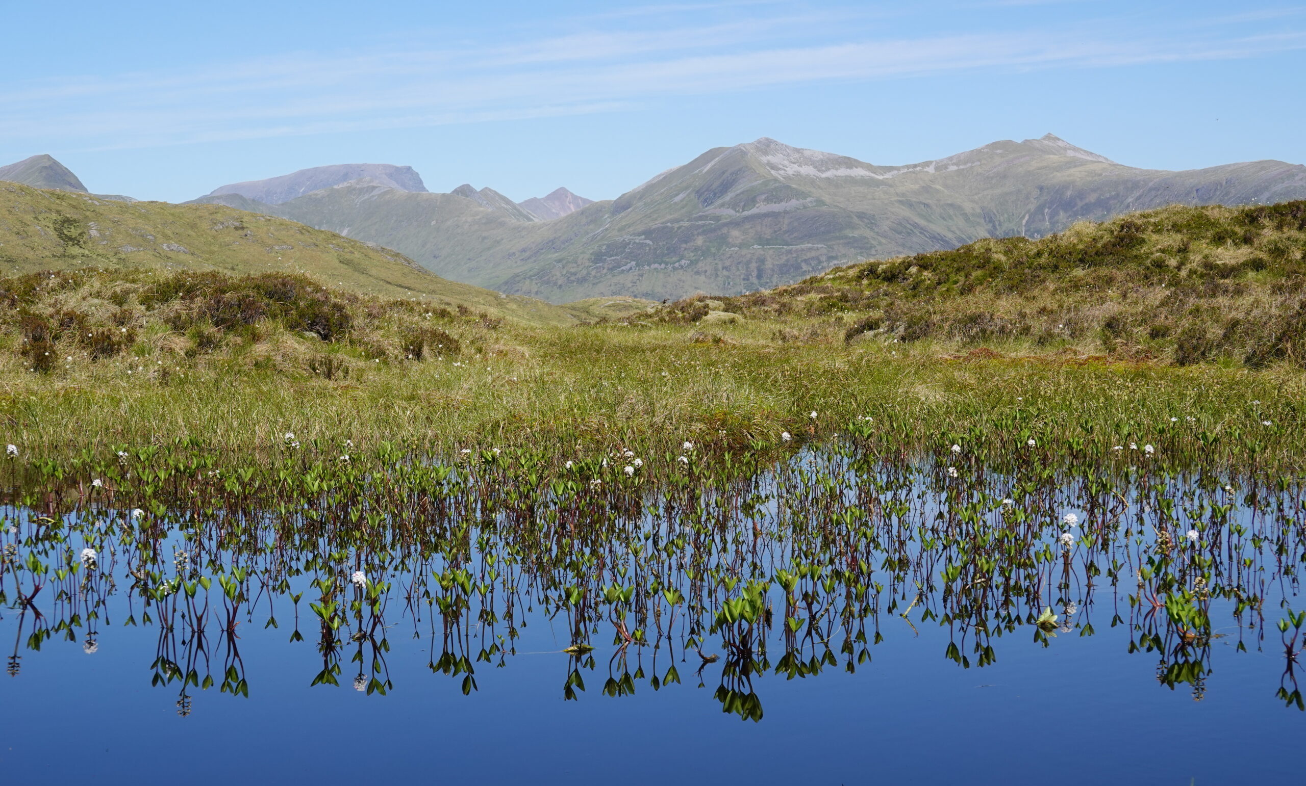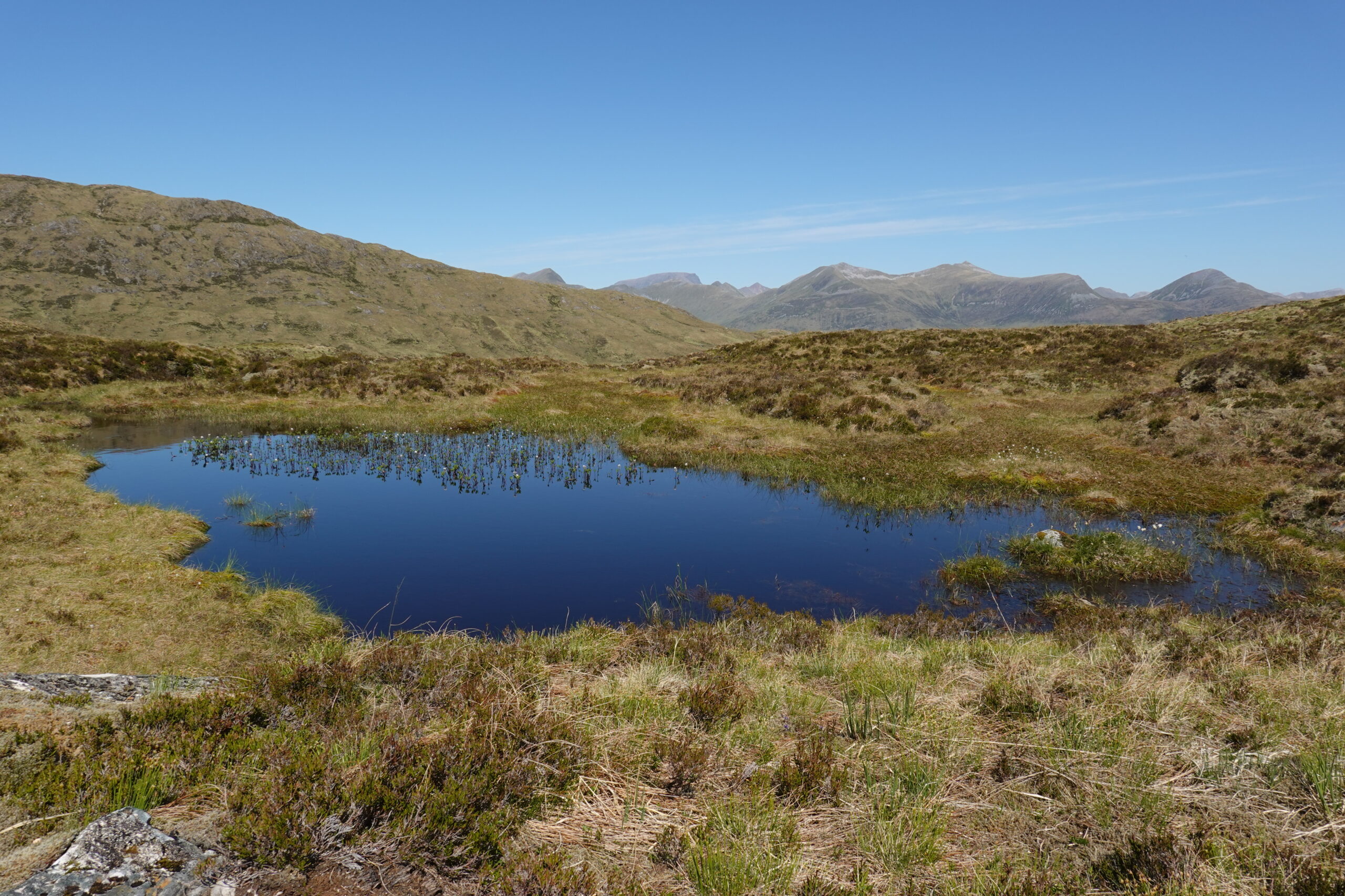 Arrivés au col, on découvre une vue splendide sur les montagnes. On voyait même Ben Nevis sans aucun nuage, ha! Il y avait aussi une mare grouillant d’activité: des dizaines de libellules à quatre taches volaient dans tous les sens, copulaient, pondaient. C’était génial à observer!