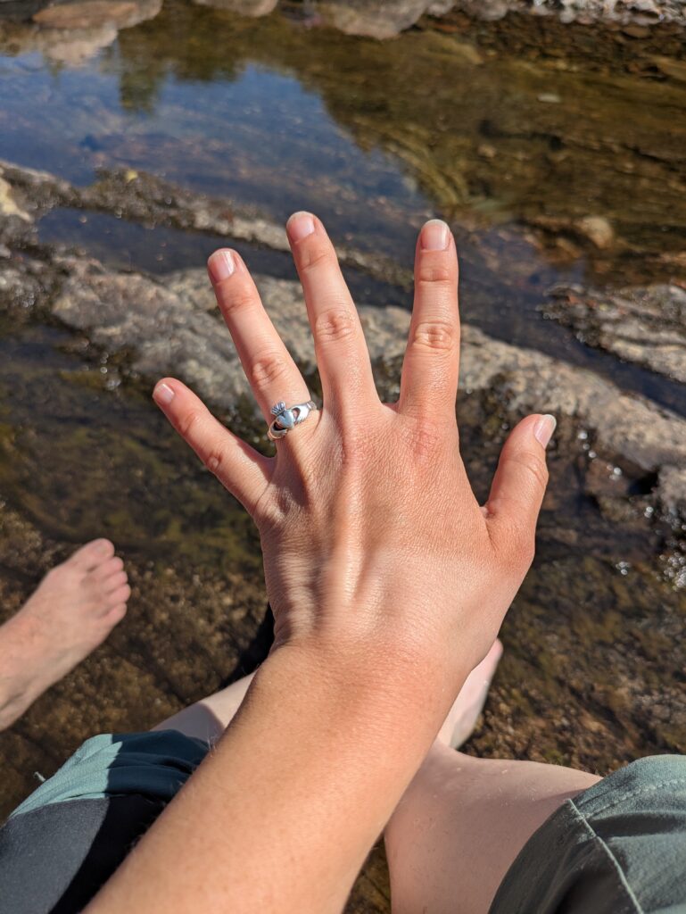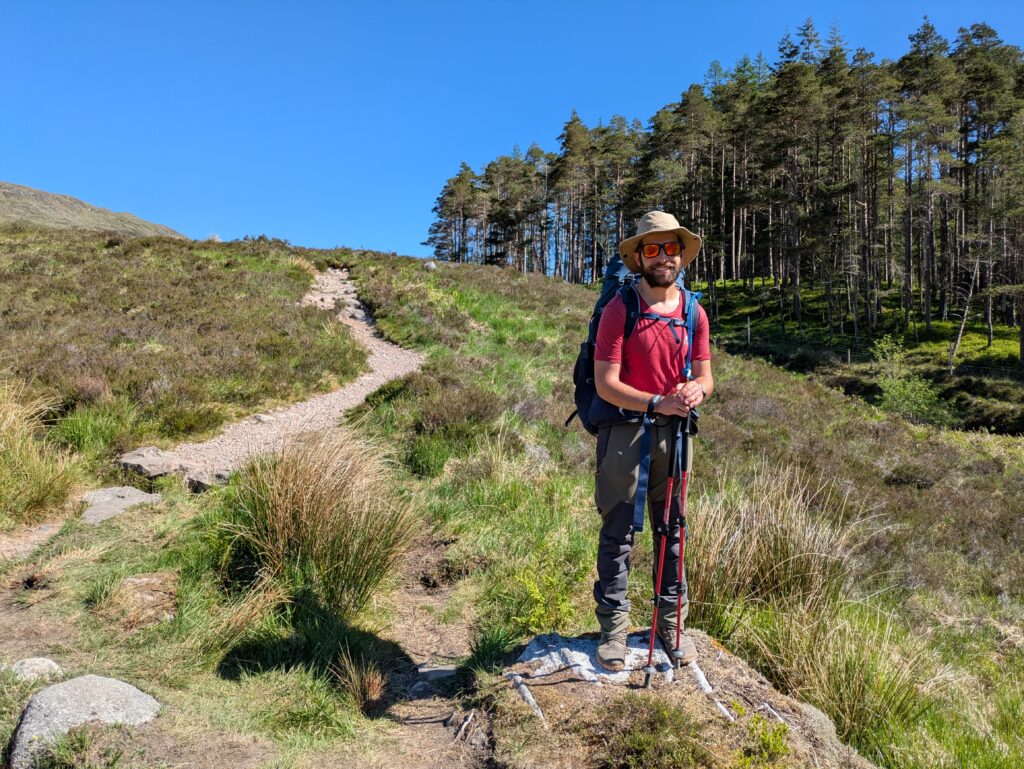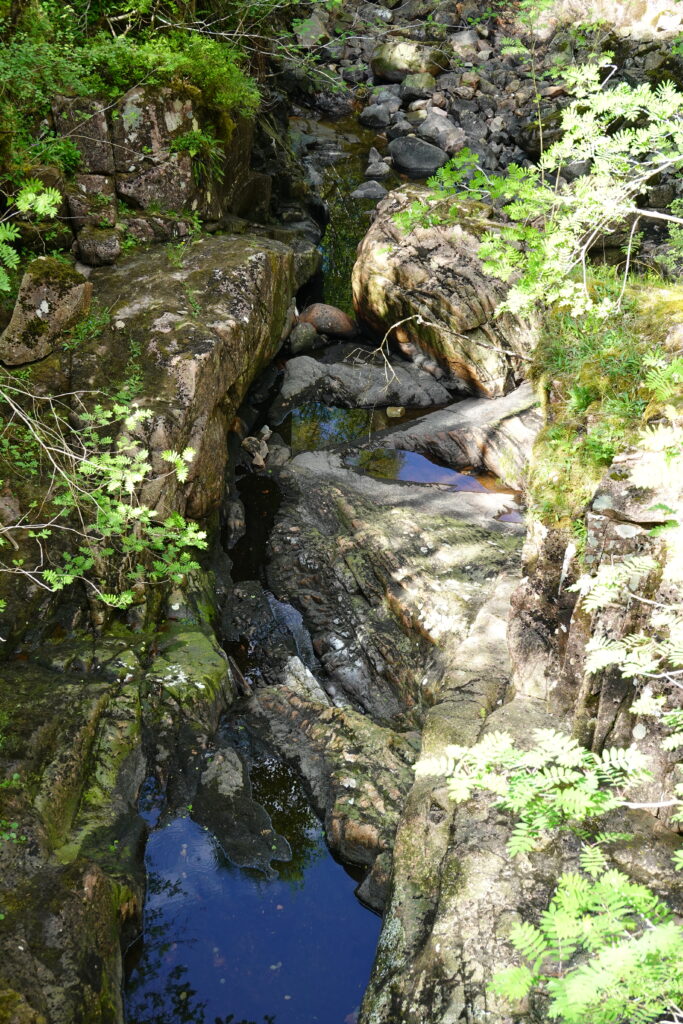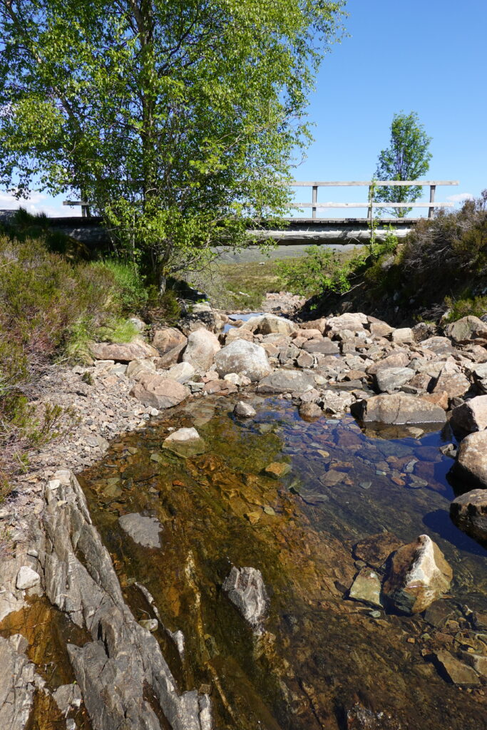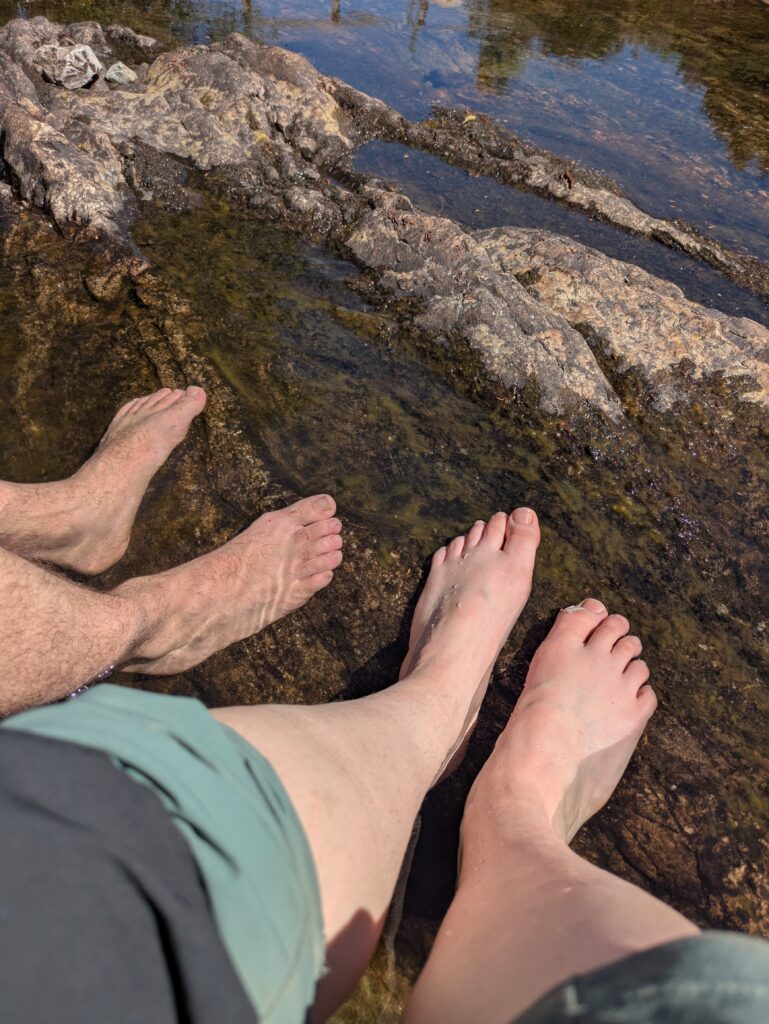 On a fait une pause pour tremper nos pieds dans la rivière Allt a’ Choire Odhair-mhòir et on a observé des larves d’invertébrés bouger dans l’eau, héhé. Il en faut vraiment peu pour être heureux! 😉