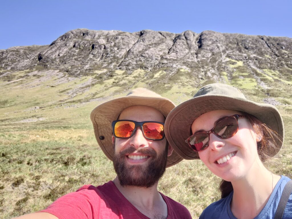 On a profité de belles vues sur l’imposant Buachaille Etive Mòr, une montagne très reconnaissable dont je ne sais toujours pas prononcer le nom, oups. ^^’