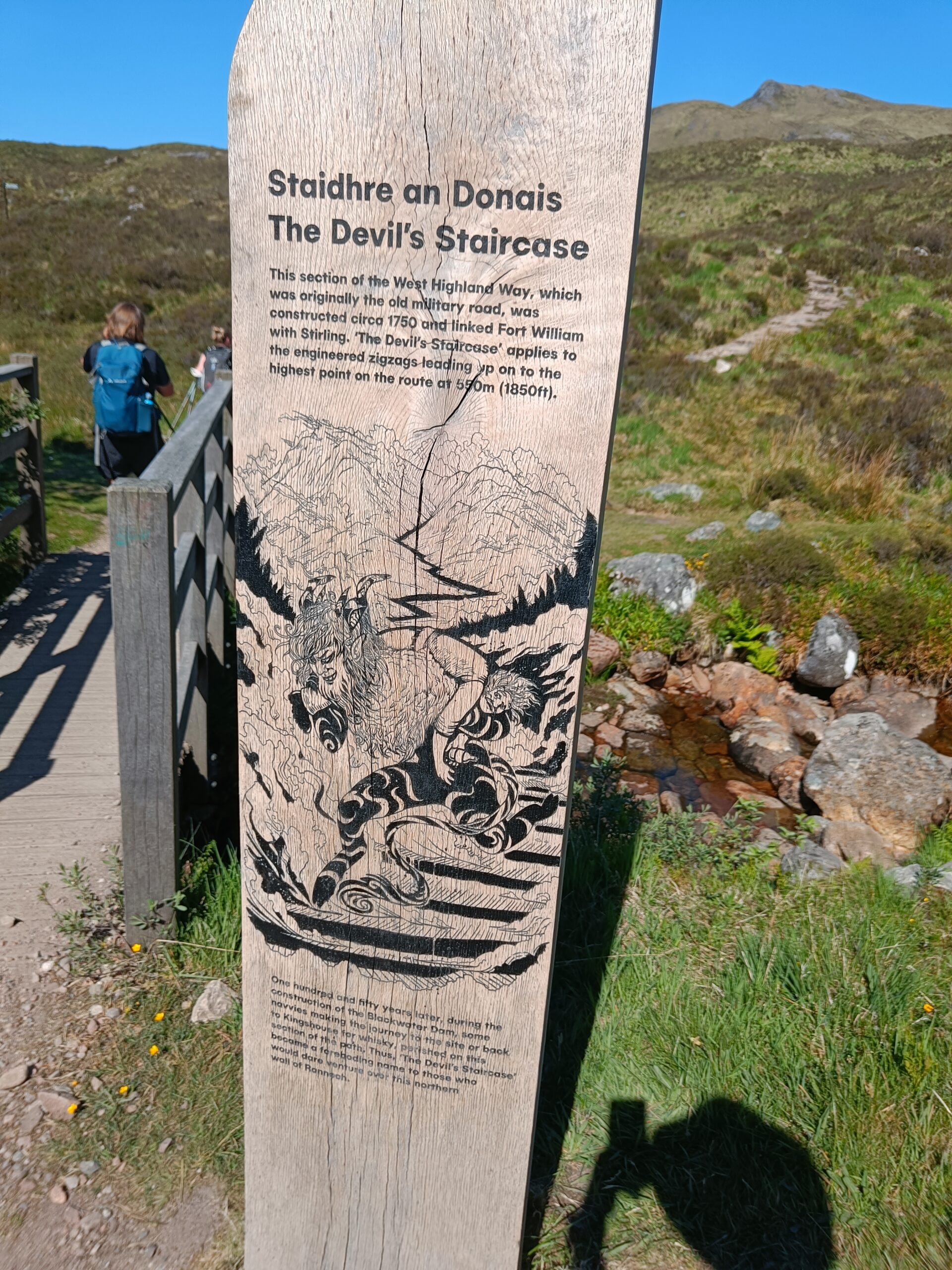 Contents de s’éloigner de la route, on bifurque pour gravir le “Devil’s Staircase”, une petite montée d’environ 300 m de dénivelé positif. Cette partie de l’ancienne route militaire aurait été nommée ainsi par les soldats chargés de sa construction (vers 1750), qui auraient trouvé la tâche vraiment ardue. Je ne m’imagine effectivement pas trop faire le chemin en transportant des matériaux de construction… En revanche, pour le loisir et avec juste un sac de rando sur le dos, c’est très agréable! On est d’ailleurs montés à un bon rythme, on se sentait super en forme! 🙂