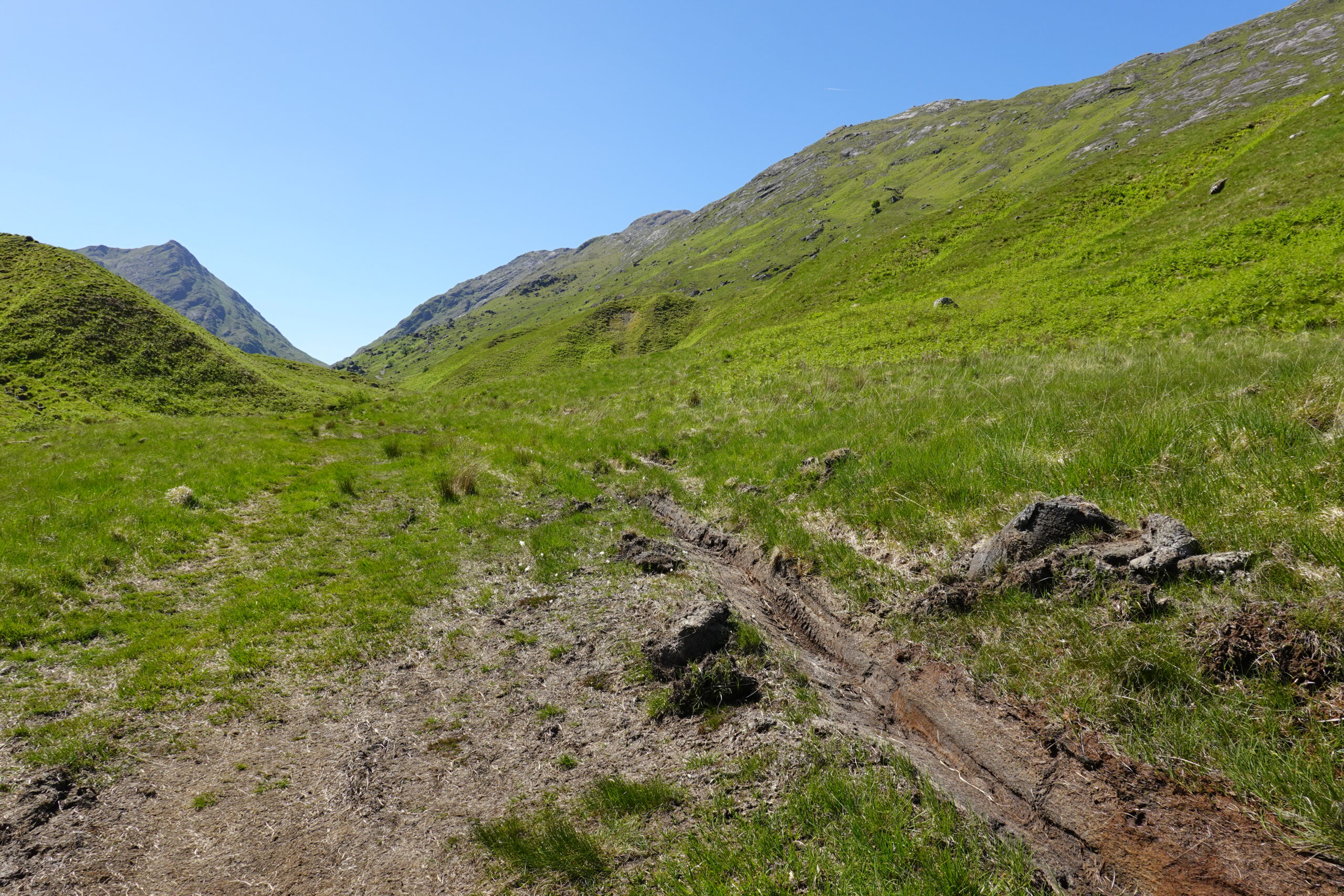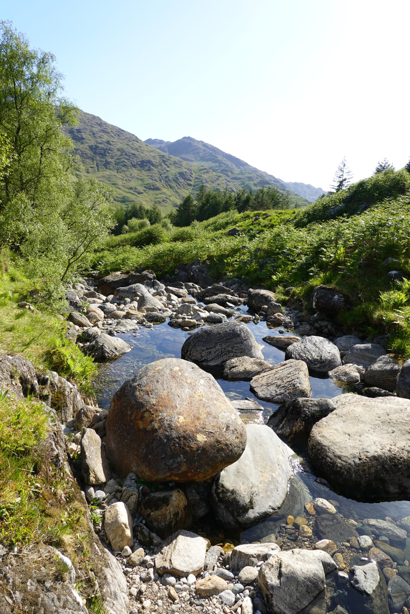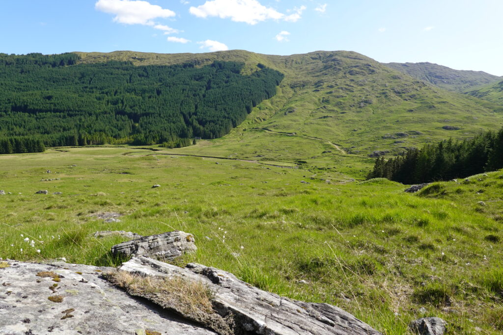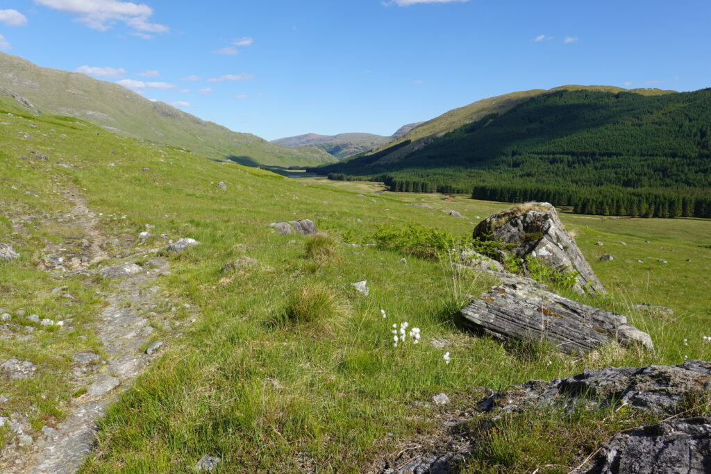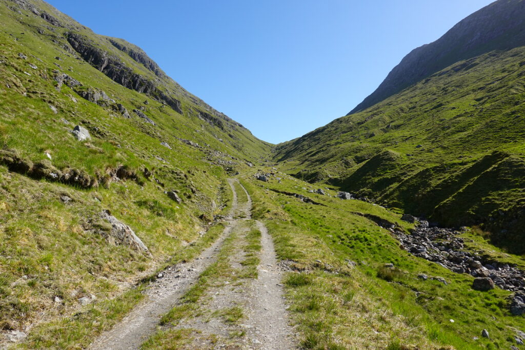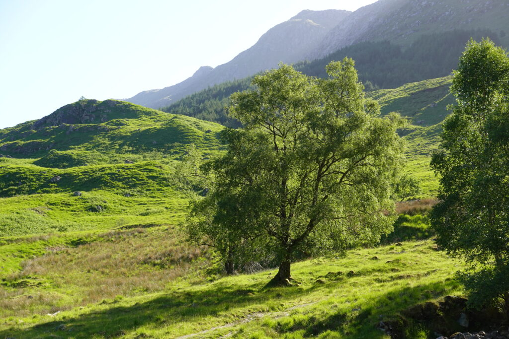On descend ensuite Gleann Cuìrnean, avec ses méandres de la rivière Cuìrnean et ses arbres qui s’accrochent aux pentes rocheuses et aux gorges.