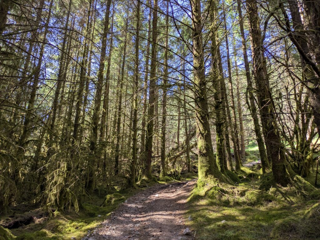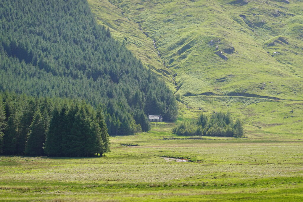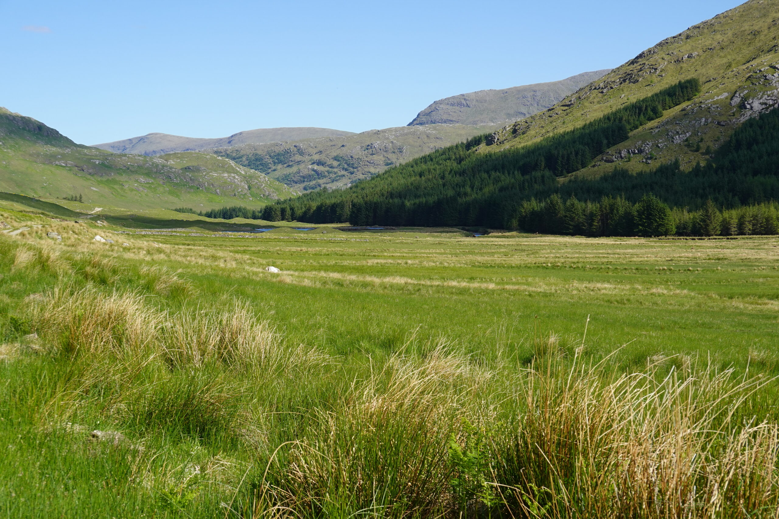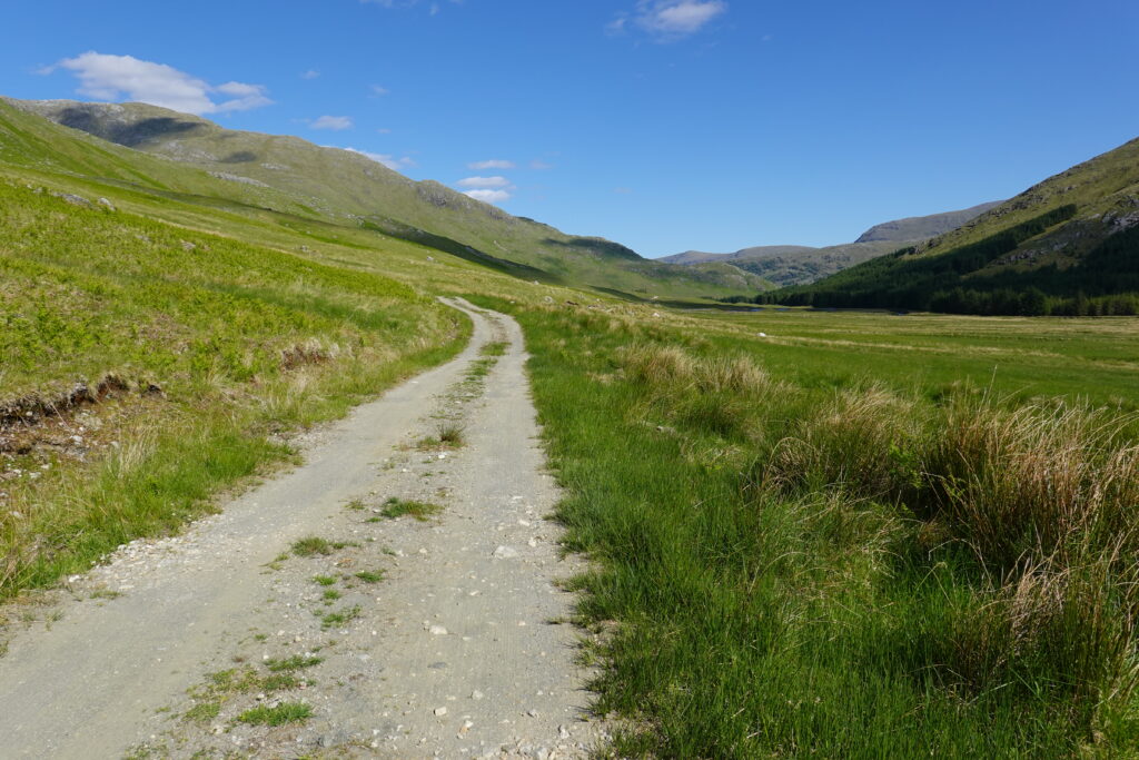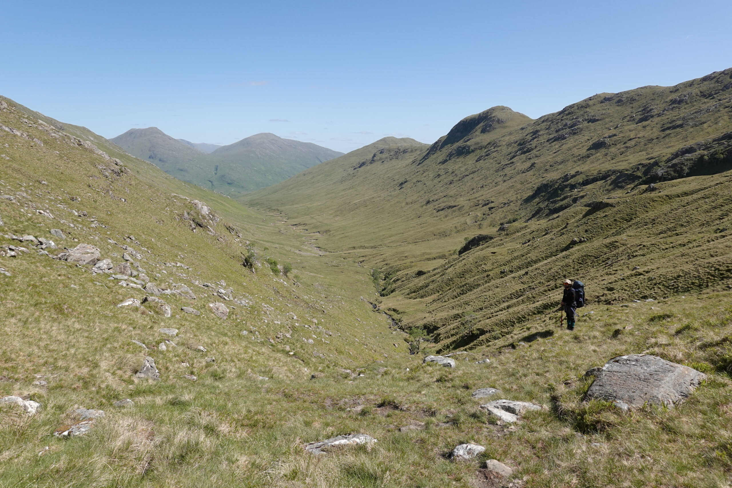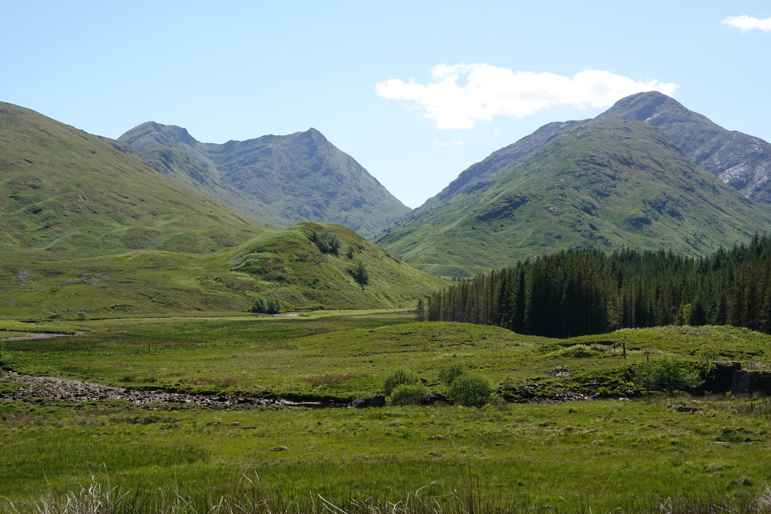 On descend ensuite Gleann Cuìrnean, avec ses méandres de la rivière Cuìrnean et ses arbres qui s’accrochent aux pentes rocheuses et aux gorges.