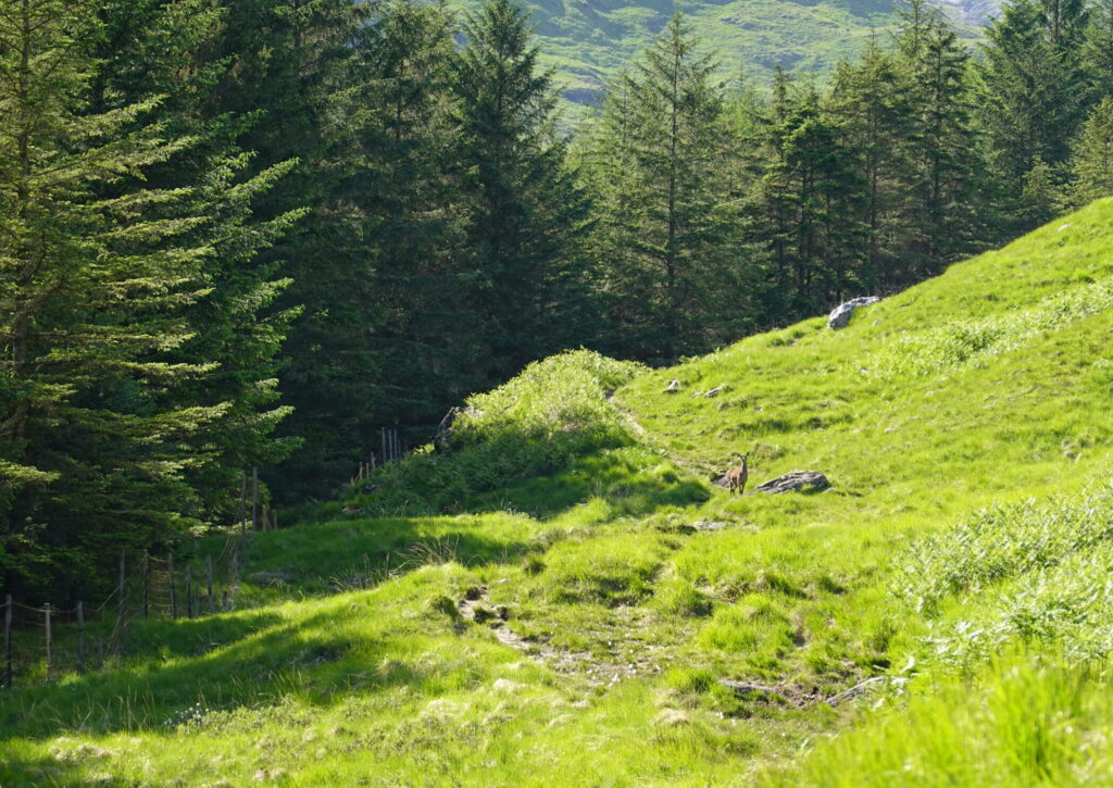 Au col, on mange un bon porridge avec un chocolat chaud en admirant la vue, accompagnés par une biche qui râlait dans les hauteurs (j’ai regardé, c’est vraiment un verbe qui peut être associé au cri de la biche ^^).