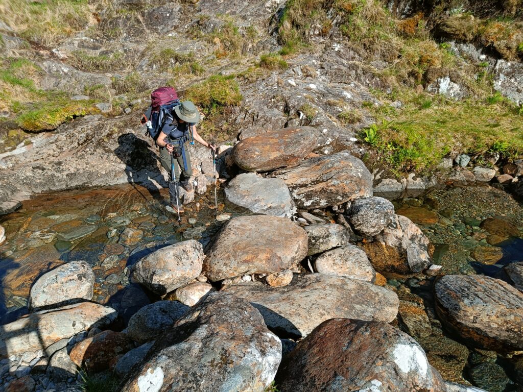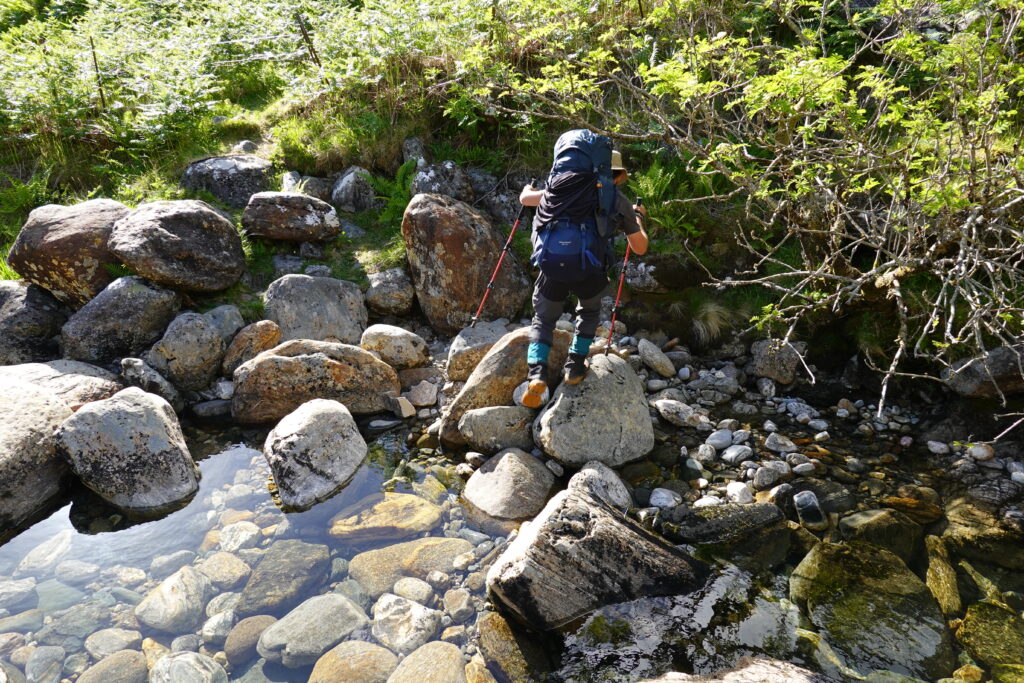 On a quelques petites rivières à traverser, mais le niveau est si bas et il y a tellement de gros rochers bien placés qu’on n’a pas besoin de mouiller les chaussures.