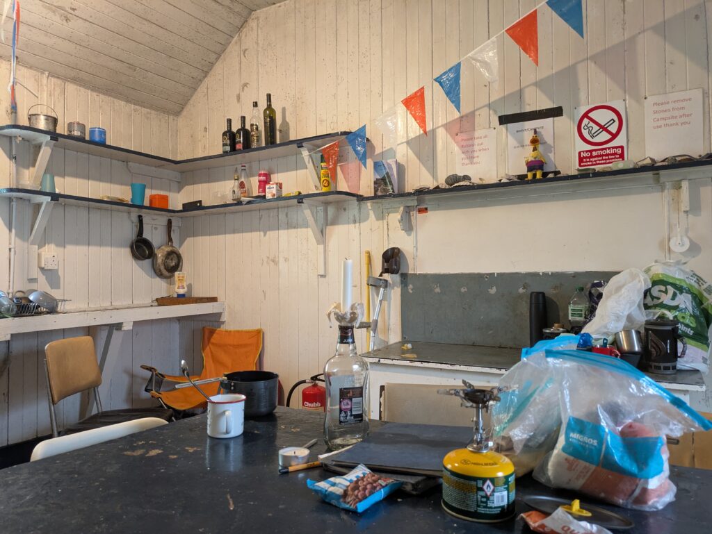 On atteint Barisdale, où on se réfugie dans le bothy — de luxe, avec électricité et toilettes, mais payant (5£ la nuit) — le temps de manger notre porridge. Un couple du Peak District arrive peu après, en provenance de Kinloch Hourn et en route pour Inverie. Ils ont dormi au B&B de Kinlochhourn la veille et nous annoncent que le tea room ferme à 20h, et que le camping juste à côté a l’air d’avoir un bon “shower block”. On est surpris, car on croyait qu’il y avait juste une aire informelle de camping sauvage, mais du coup on se réjouit d’autant plus d’arriver à Kinloch Hourn. De la bouffe et une douche, voilà qui motive!