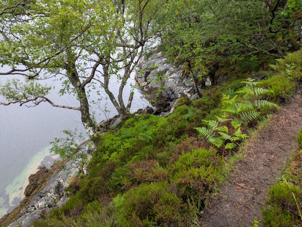 Après toutes ces semaines de soleil, c’est comme si la pluie faisait ressortir les couleurs du paysage: le bleu-gris de l’eau, le vert pomme du bracken, l’ocre des algues sur les rives. ♥