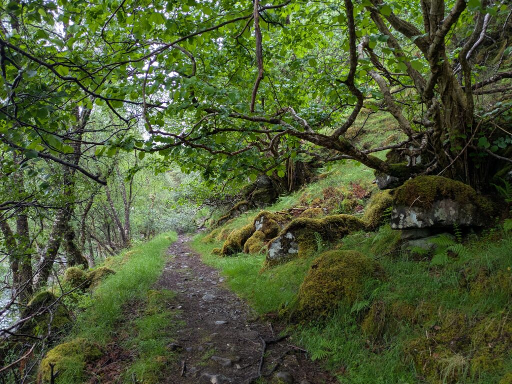 Le sentier nous fait passer tout près de l’eau et dans des petits sous-bois à l’ambiance incroyable, c’est vraiment superbe.
