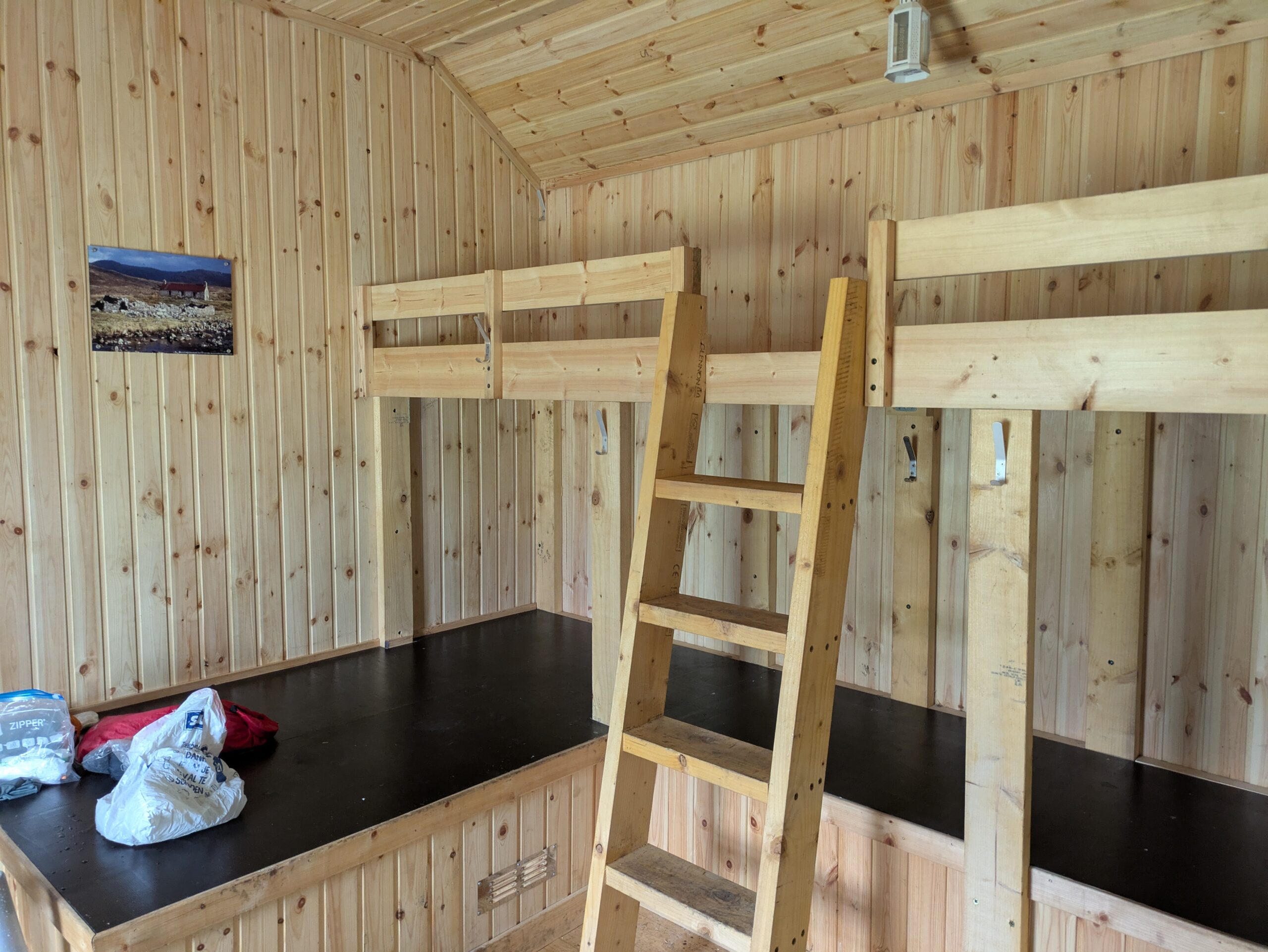 Surprise, on retrouve Al, Flora et Rob dans le bothy! C’est chouette de discuter tous ensemble. Le bothy a été restauré récemment et l’intérieur est vraiment très beau, tout en bois.