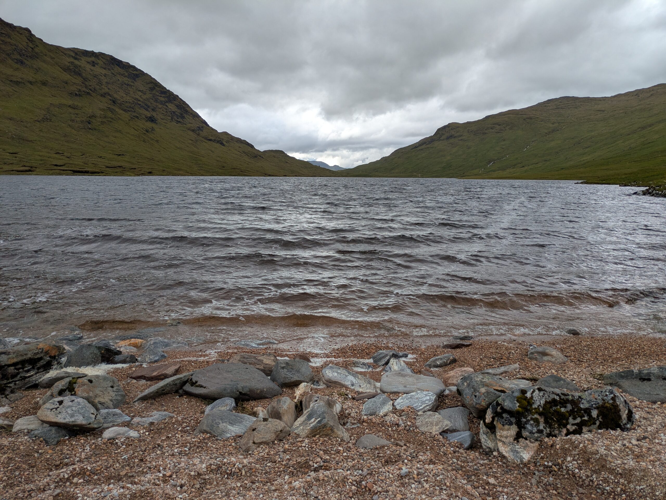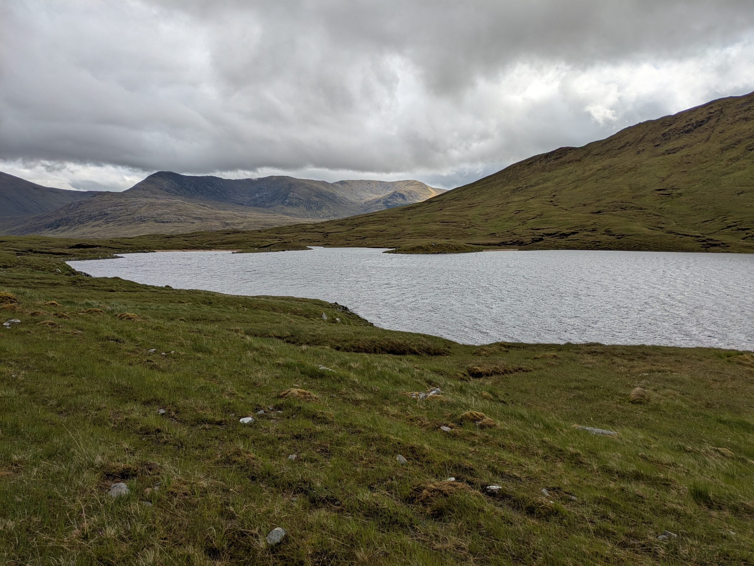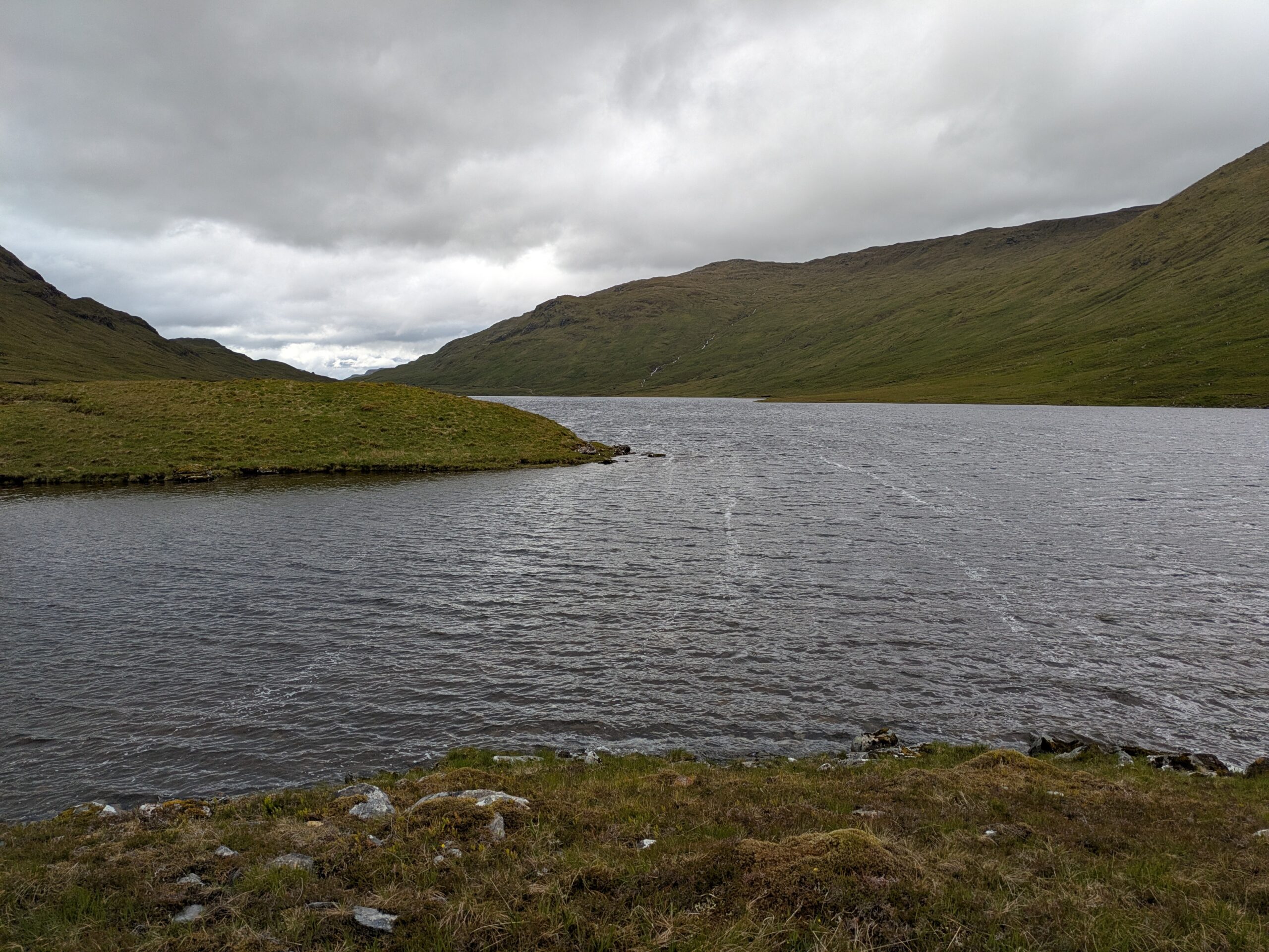 On attaque ensuite une partie “pathless” mais assez facile et on atteint Loch Calavie, très beau.