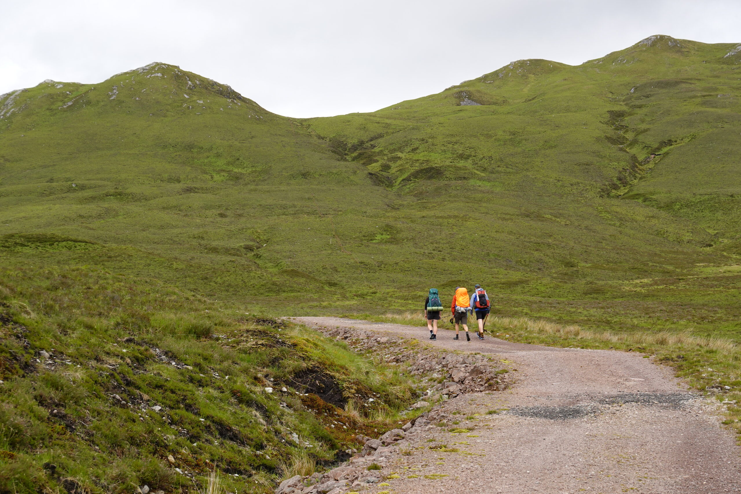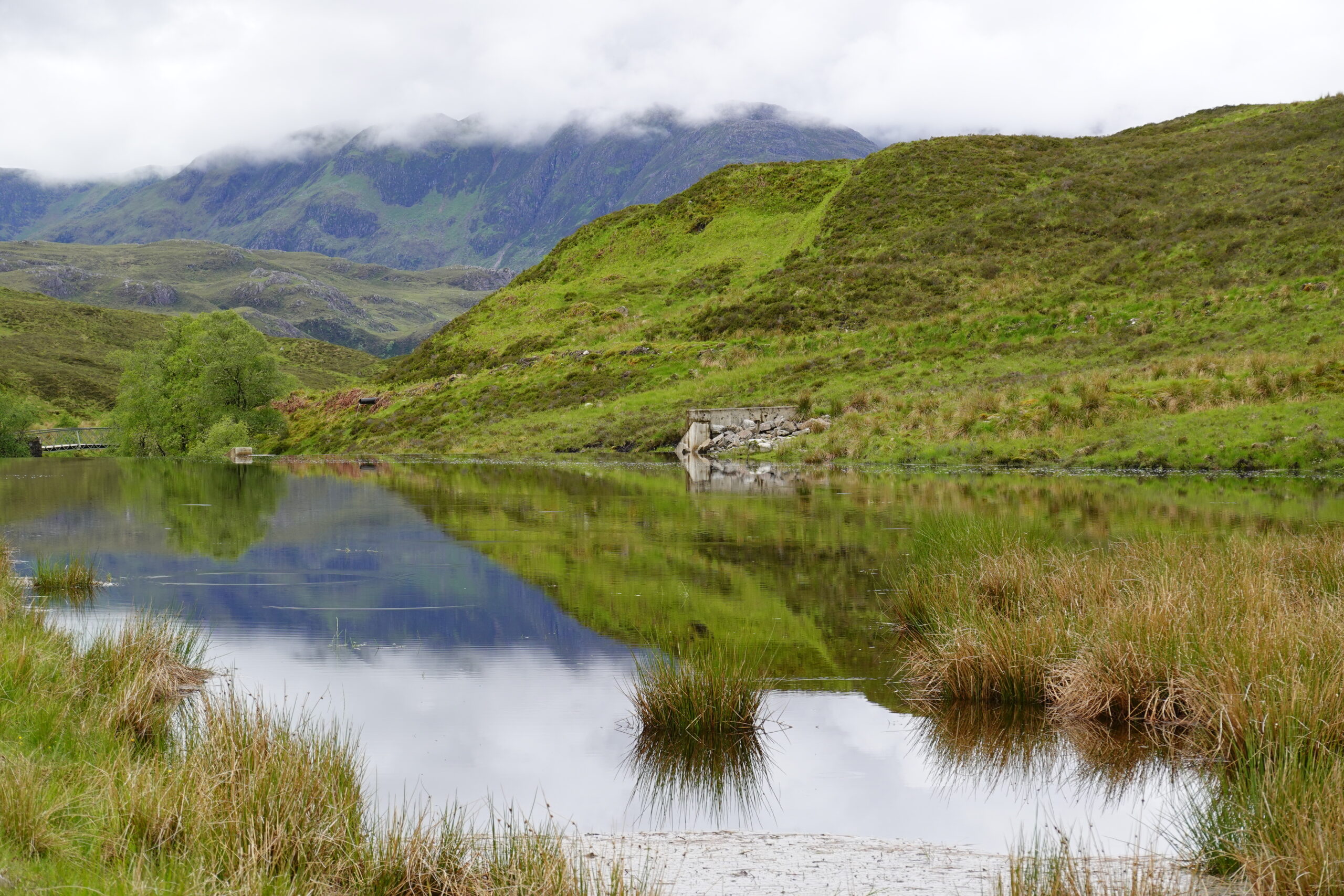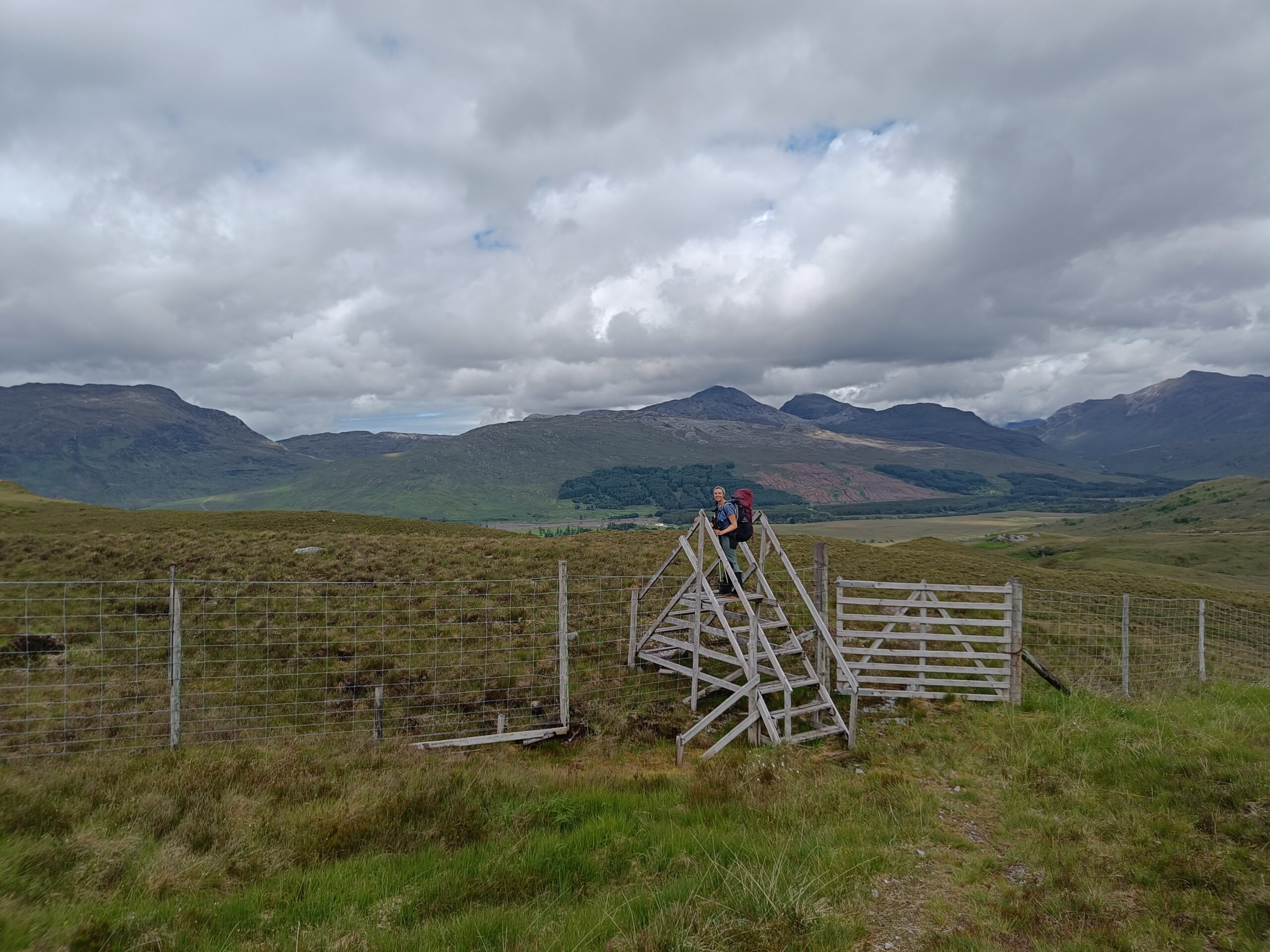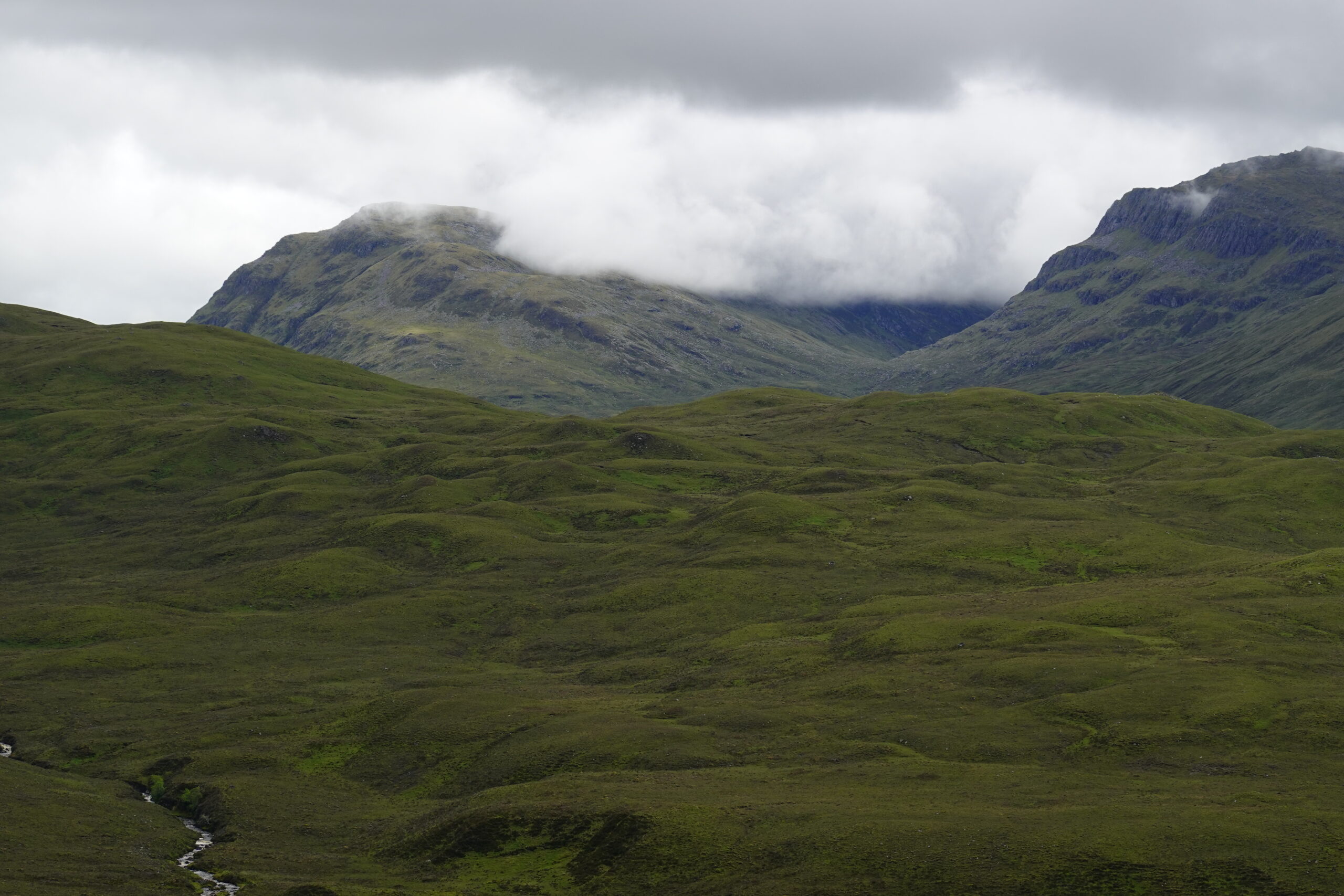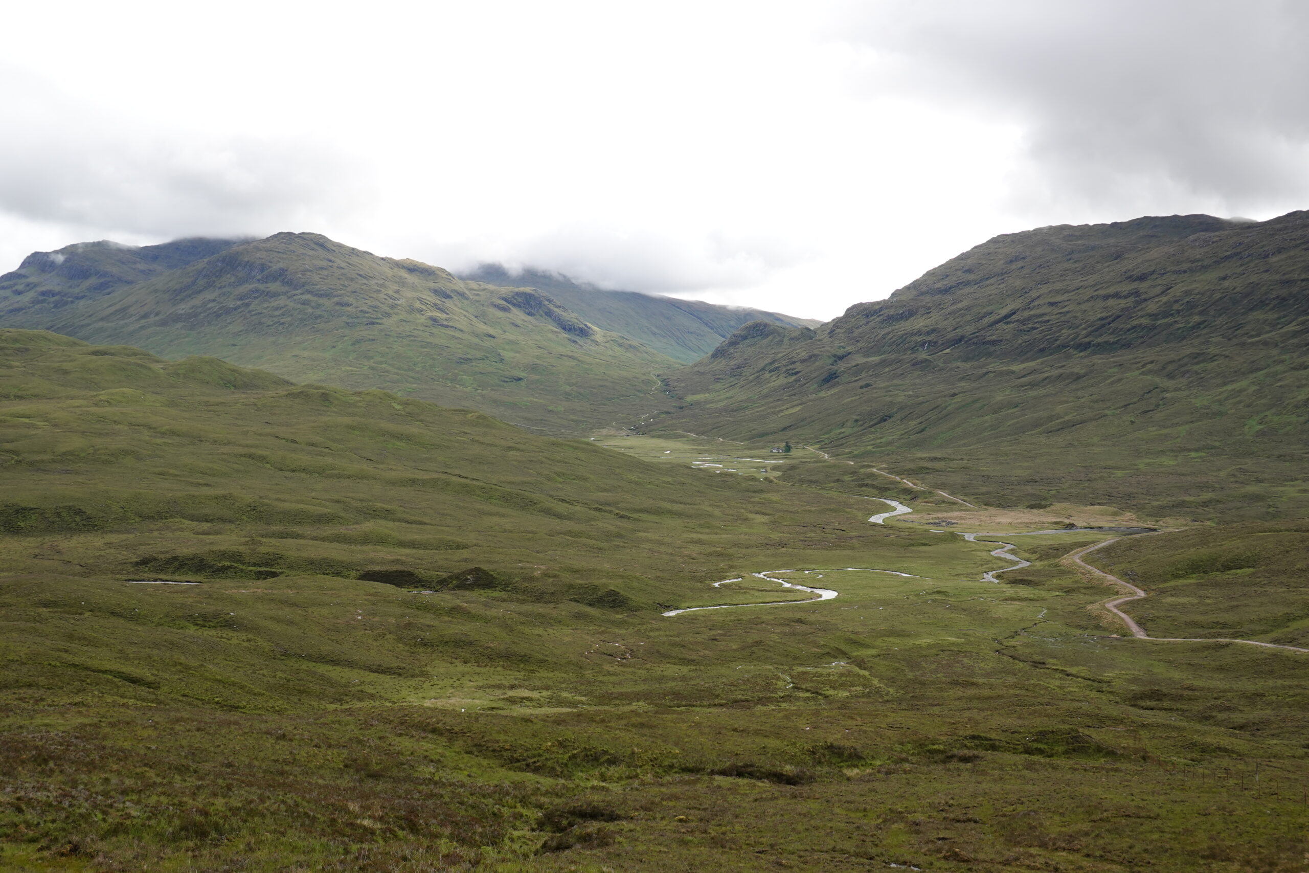 On a plutôt bien dormi dans le bothy de Bendronaig mais on se sentait quand même tous assez fatigués, donc on a fait une petite journée et c’était très bien comme ça. On se réveille à 7h, on déjeune, on se prépare et on quitte Bendronaig à 9h, pour une journée qui s’annonce sèche, yay! Enfin, en ce qui concerne le ciel, du moins. On a bien sûr quand même eu les pieds mouillés dans la tourbe et les torrents. 😉