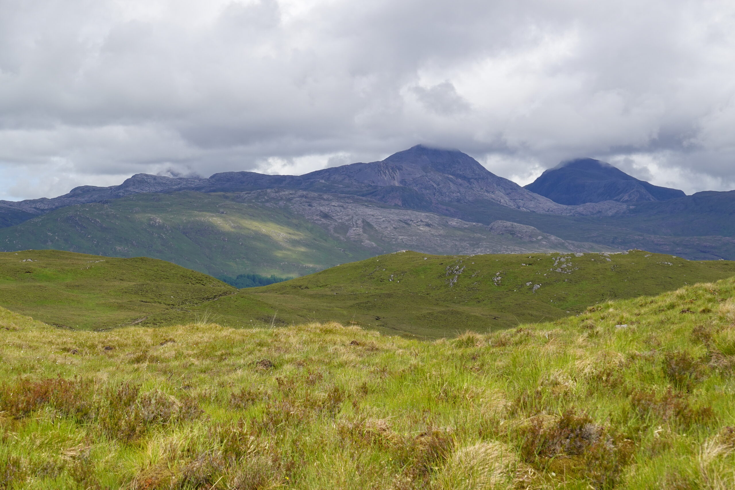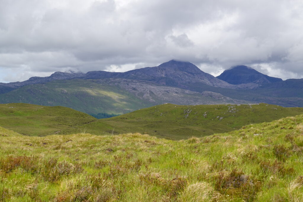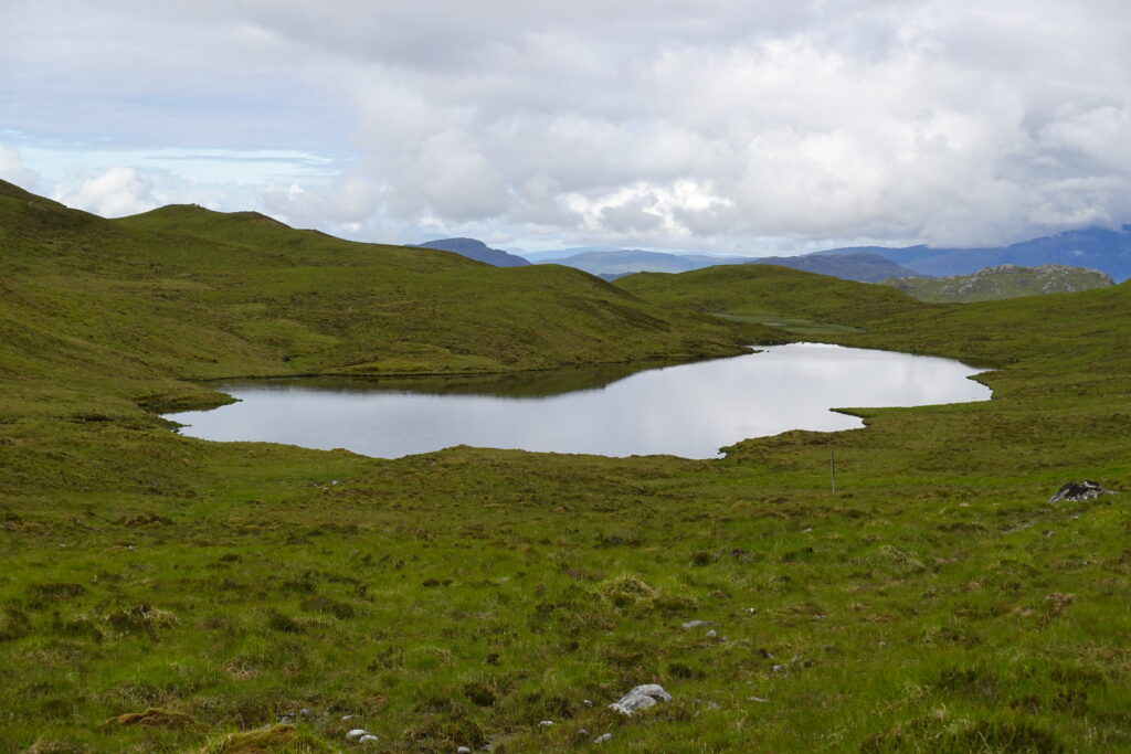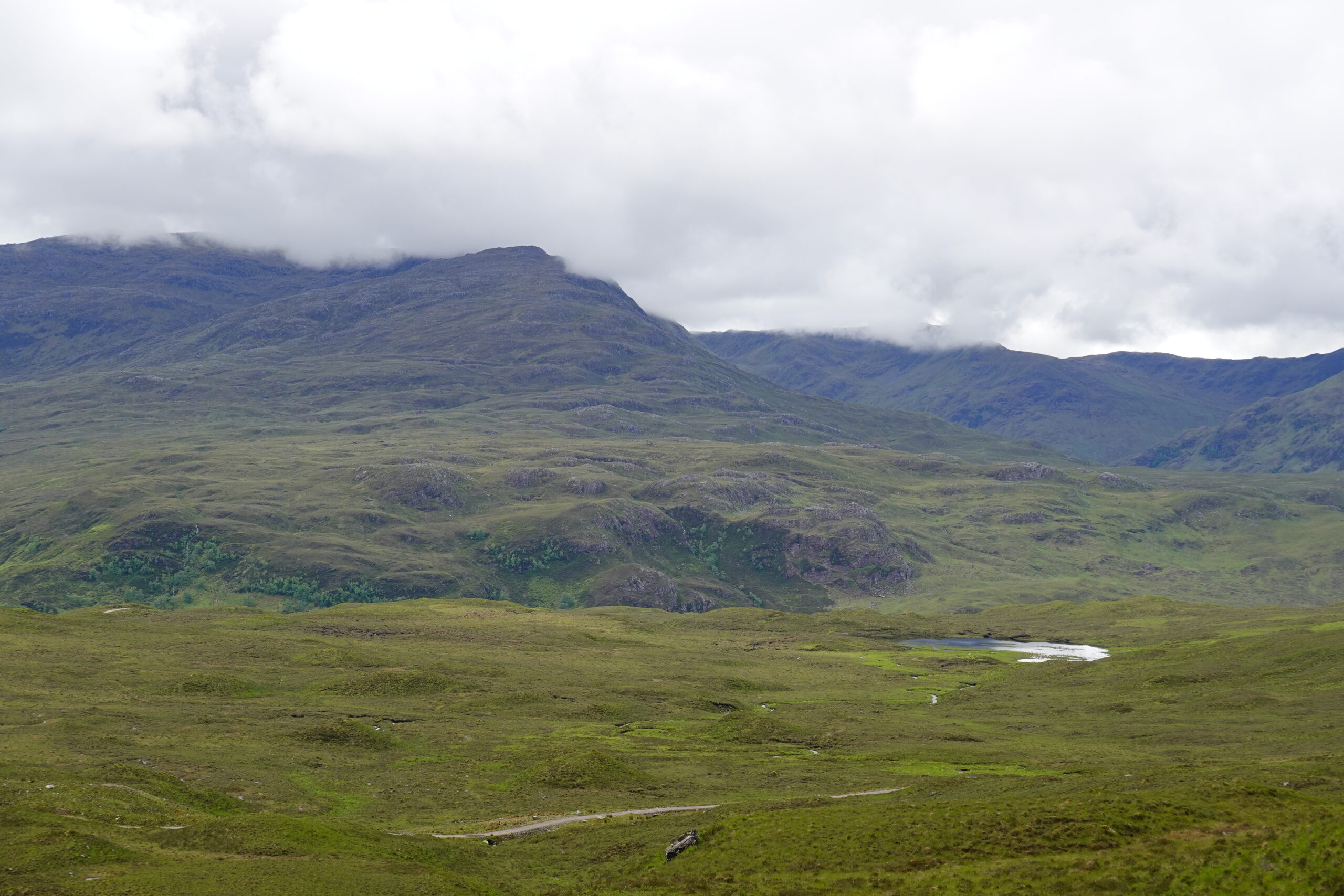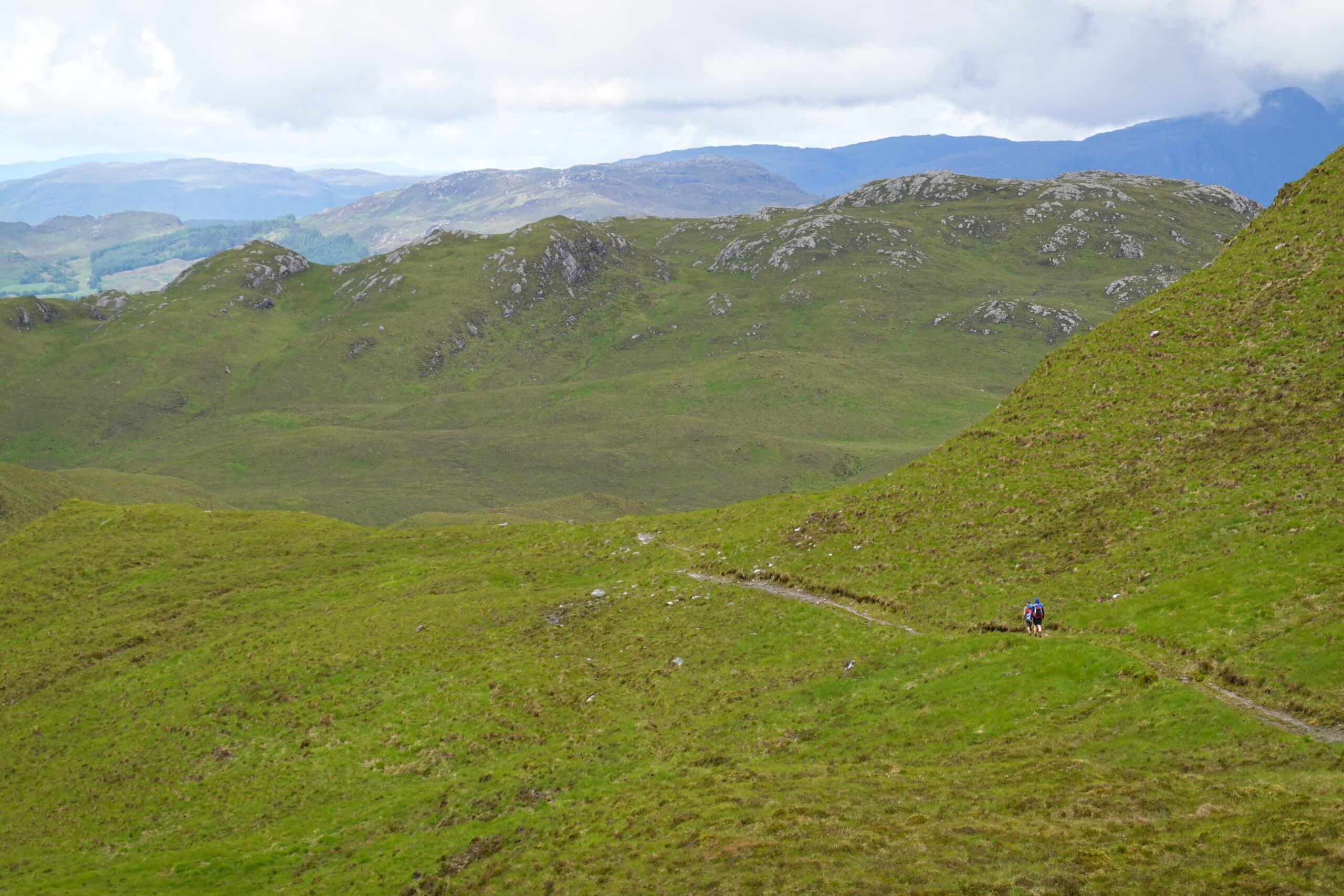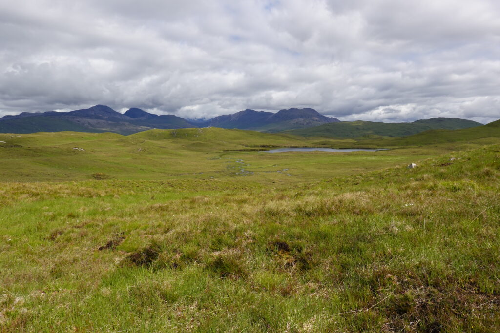On passe Bealach Alltan Ruairidh et la vue (et la lumière!) est splendide. On admire de beaux loch(an)s et de superbes montagnes vers Torridon.