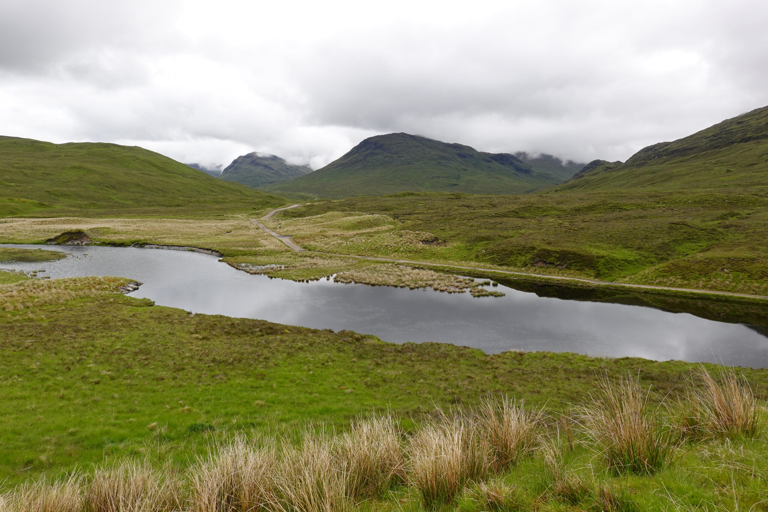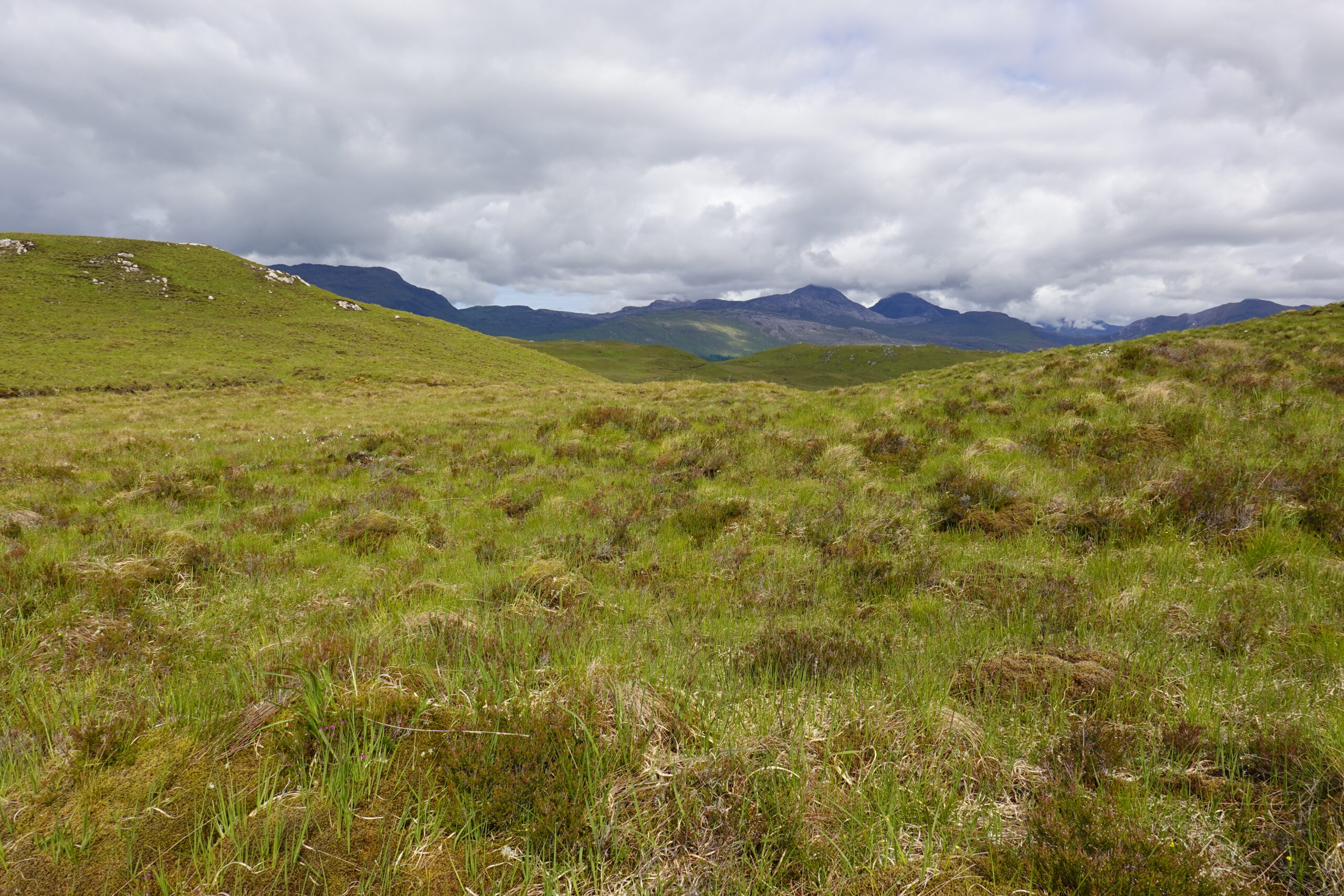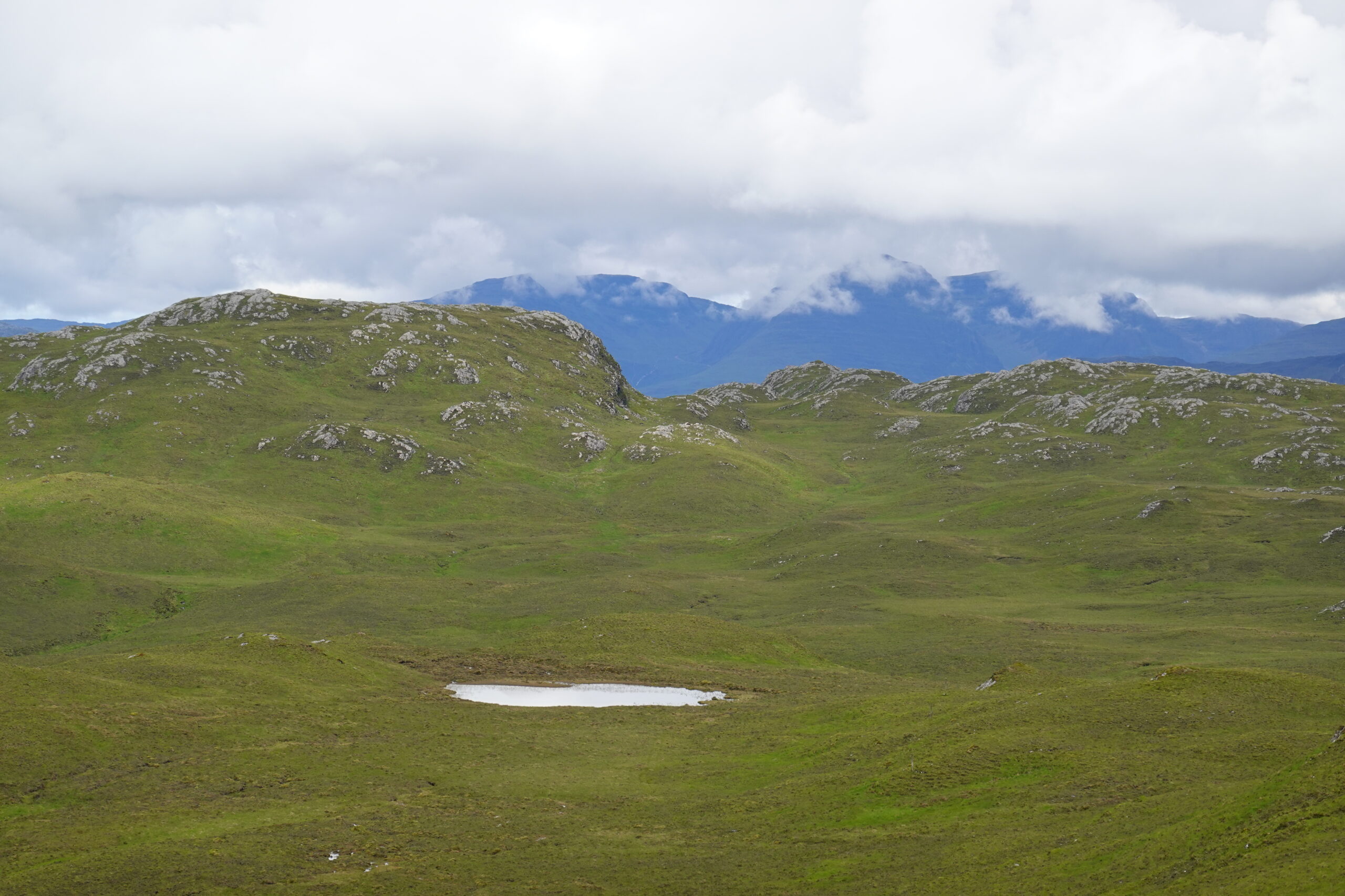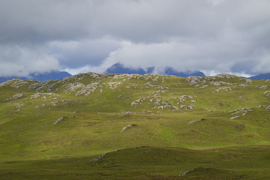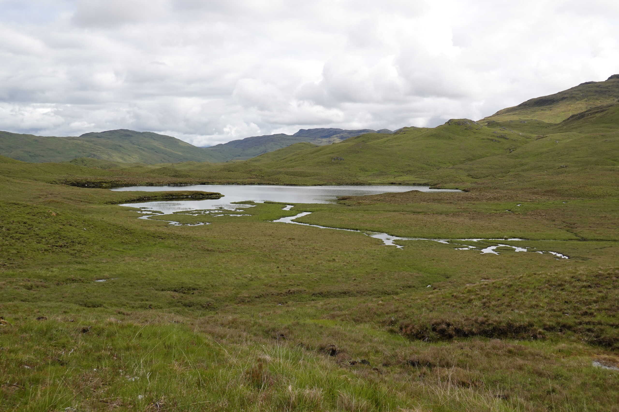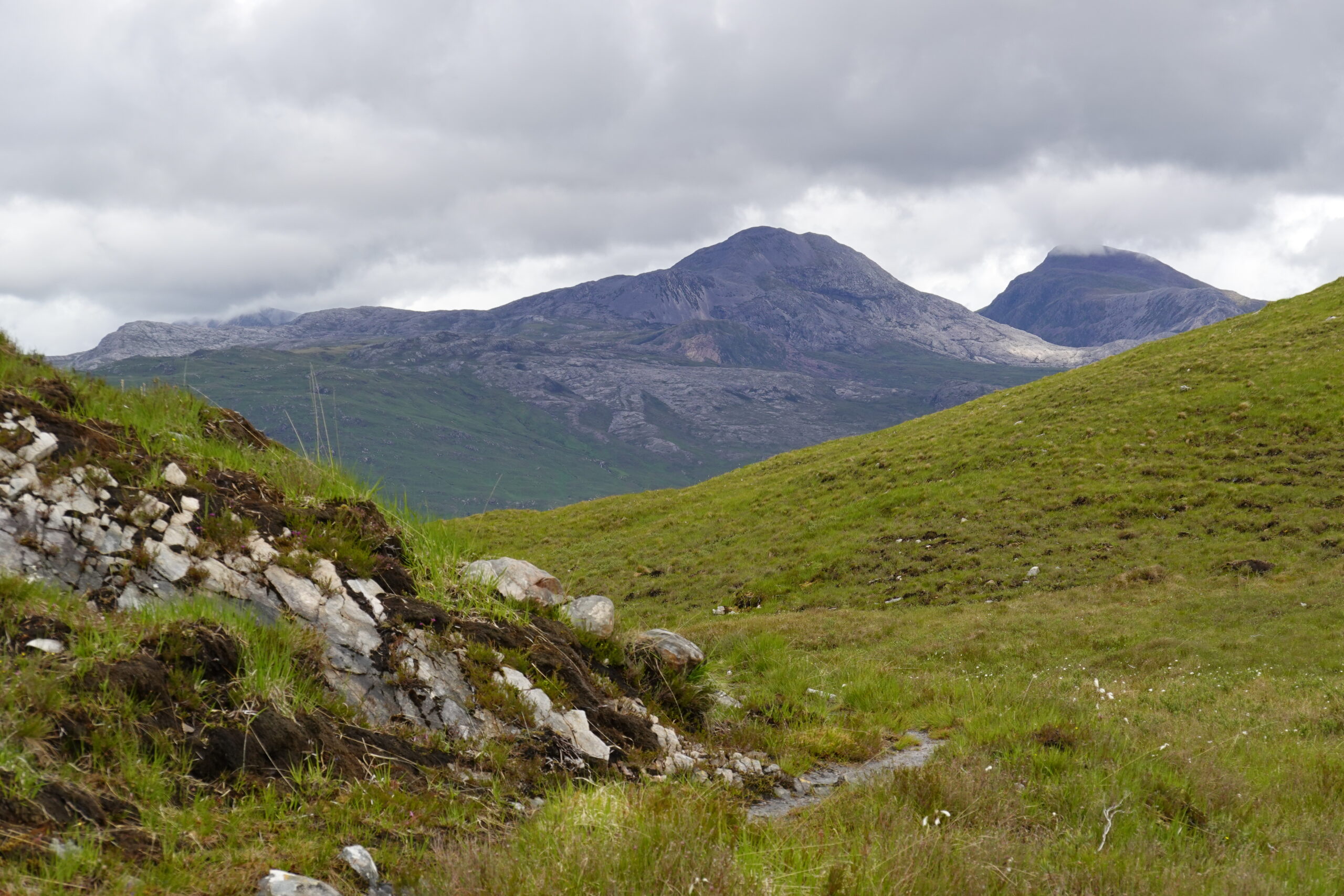 On passe Bealach Alltan Ruairidh et la vue (et la lumière!) est splendide. On admire de beaux loch(an)s et de superbes montagnes vers Torridon.