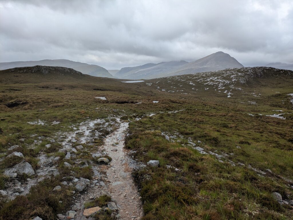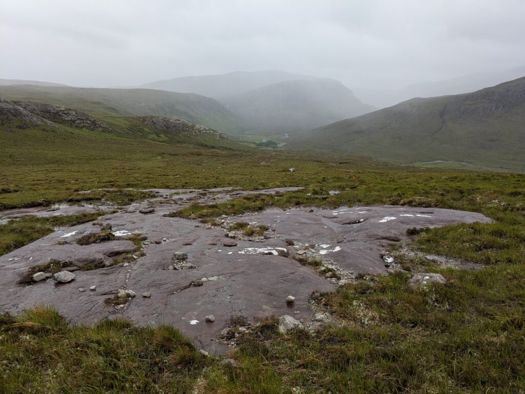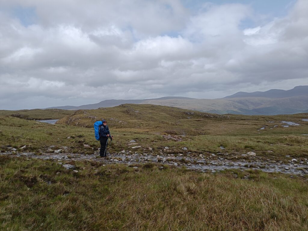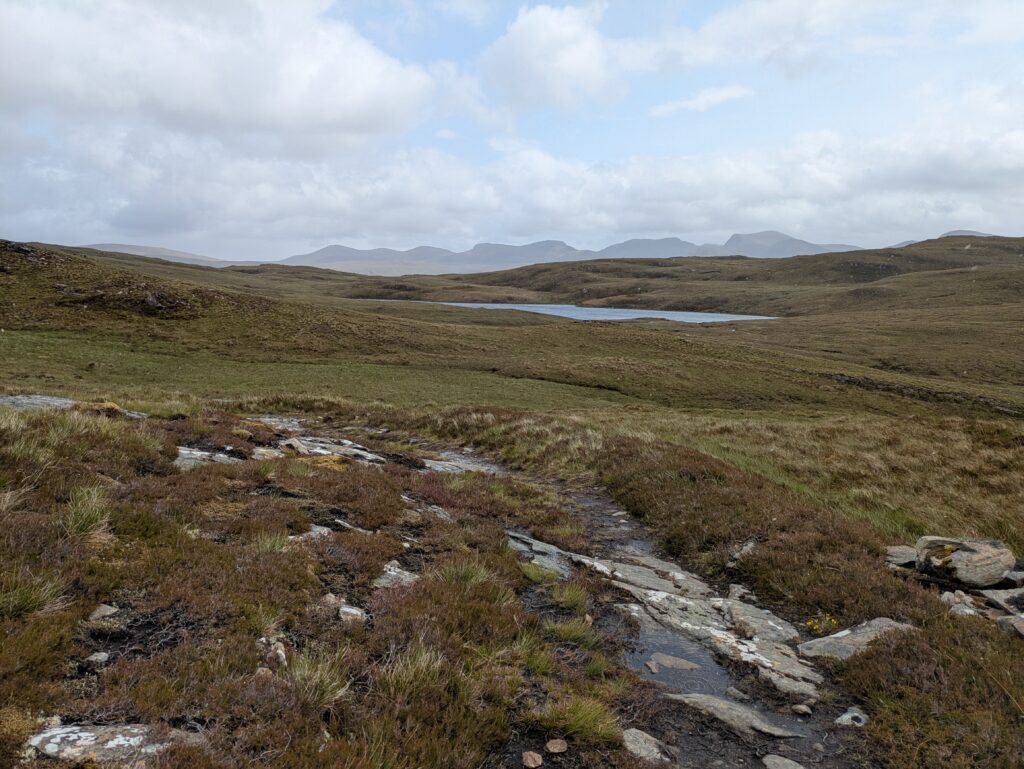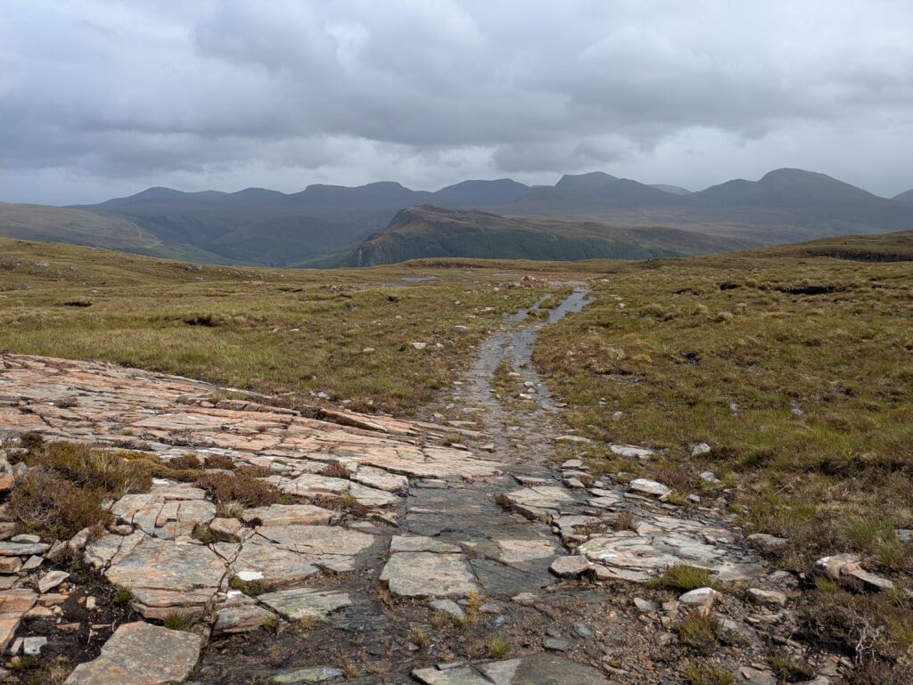 Après avoir traversé Allt an Duibhe, on a emprunté un chemin qui était autrefois utilisé pour transporter des cercueils de Dundonnell jusqu’à Clachan, où ils étaient enterrés. Ça m’a rappelé un roman de Peter May, “Coffin Road”.