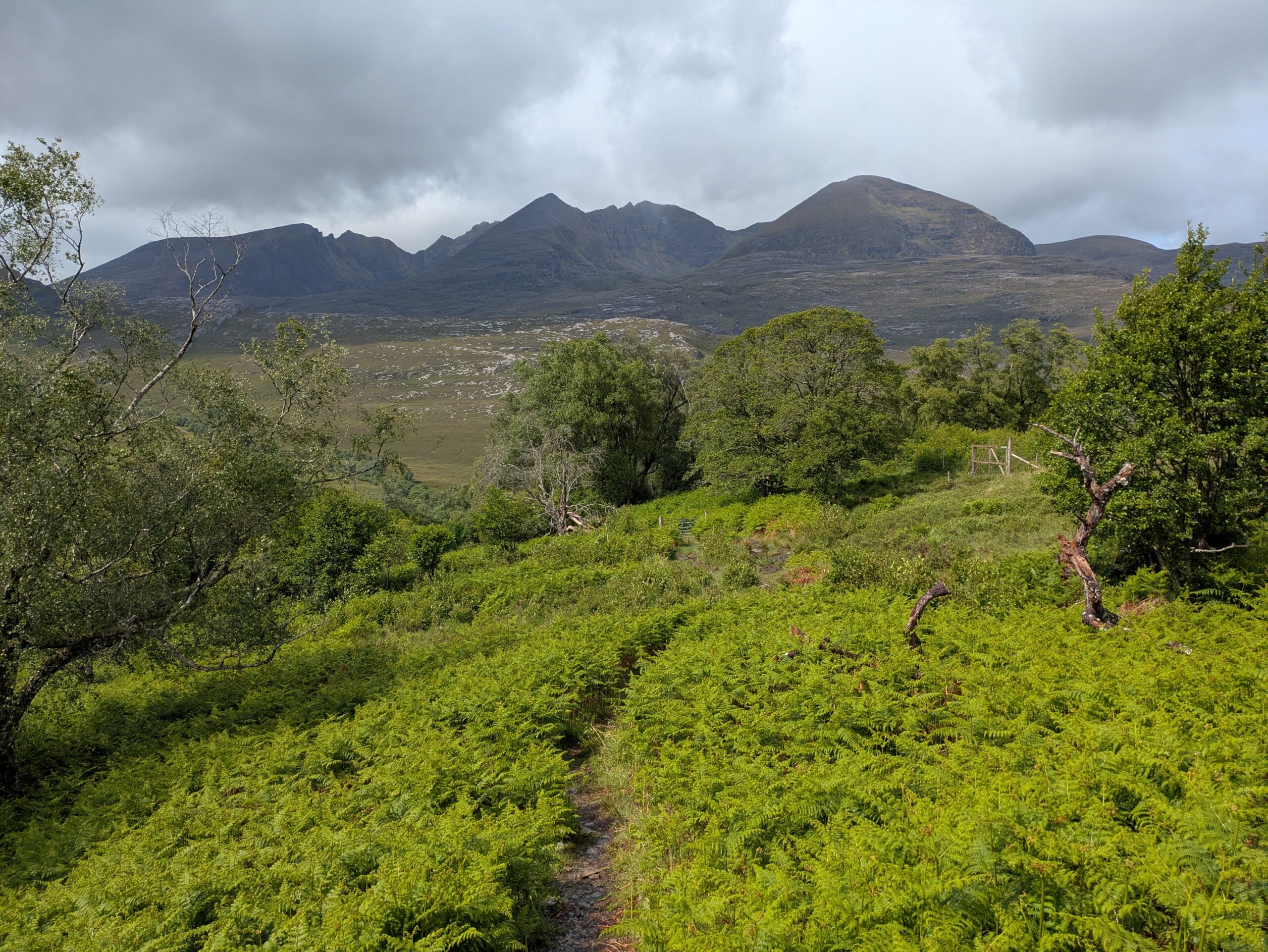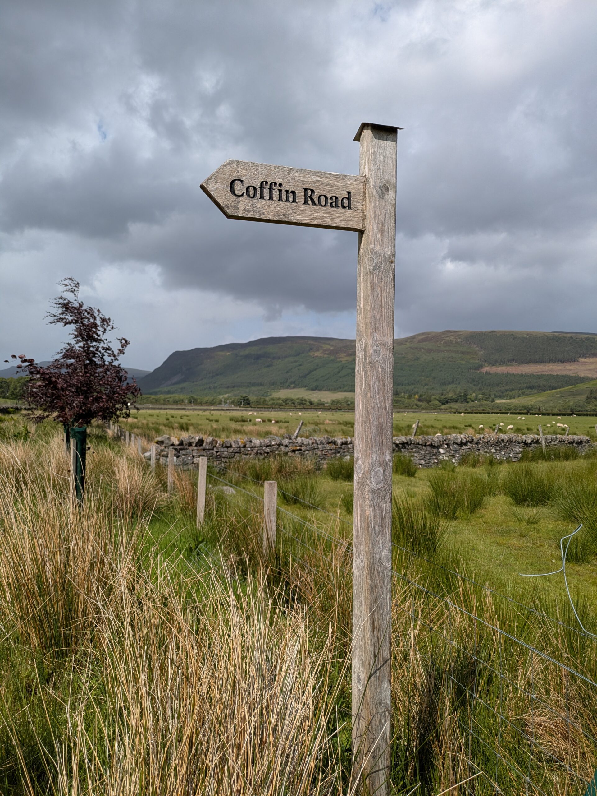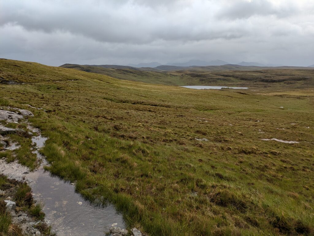 Après avoir traversé Allt an Duibhe, on a emprunté un chemin qui était autrefois utilisé pour transporter des cercueils de Dundonnell jusqu’à Clachan, où ils étaient enterrés. Ça m’a rappelé un roman de Peter May, “Coffin Road”.