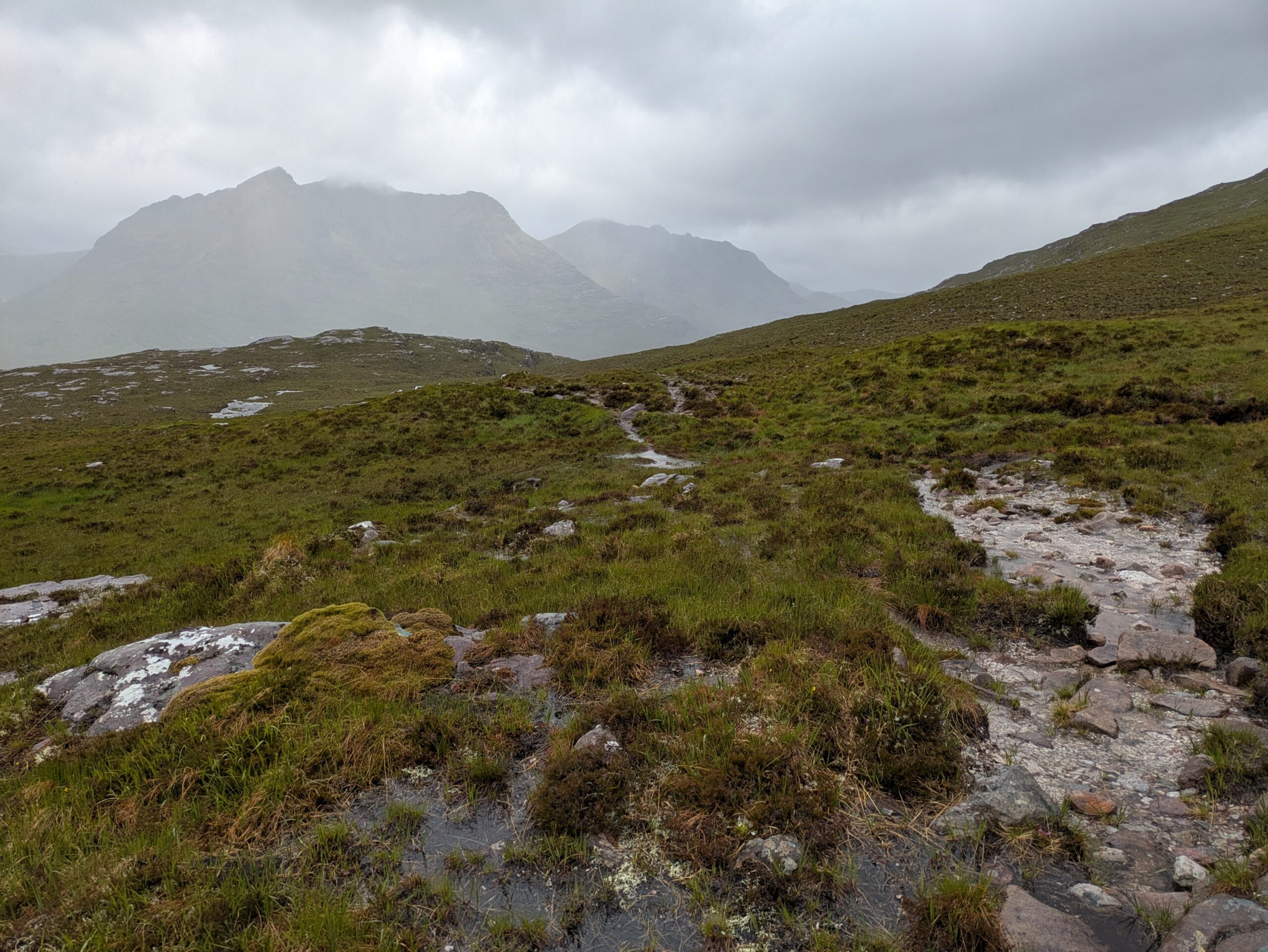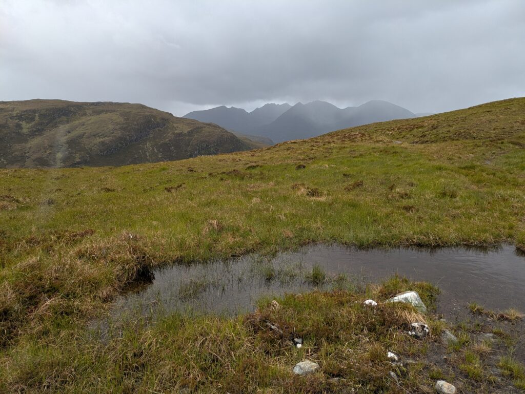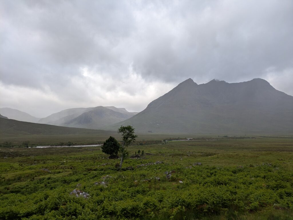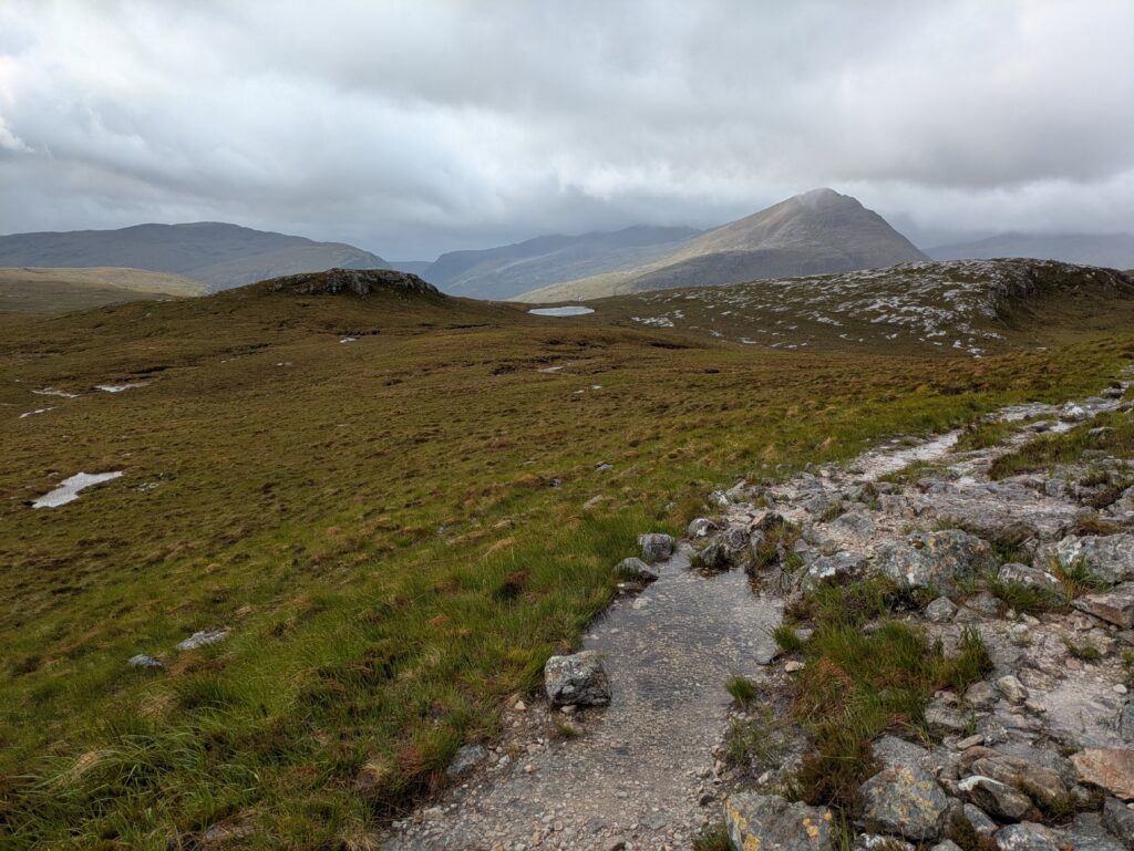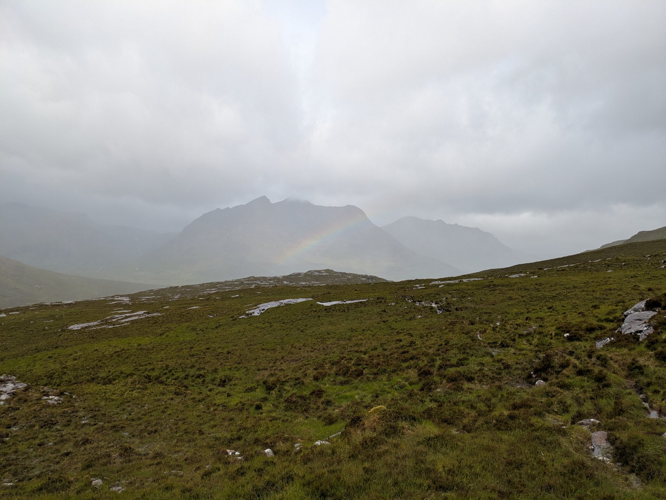 En plus positif, les paysages étaient bien beaux! On a aperçu un furtif arc-en-ciel et on a eu droit à quelques vues sur An Teallach, qui jouait à cache-cache avec les nuages sombres, dans une ambiance digne du Mordor.