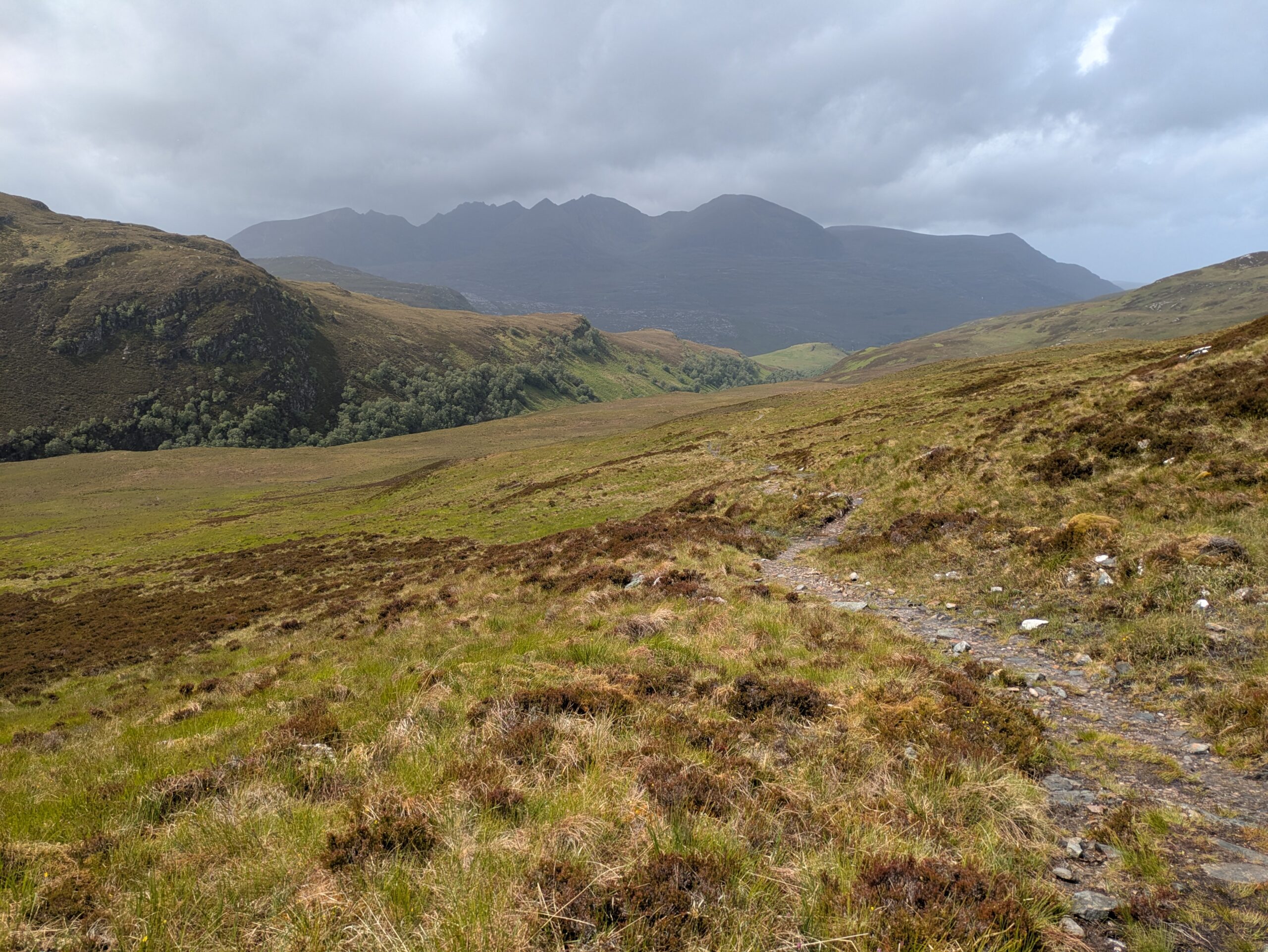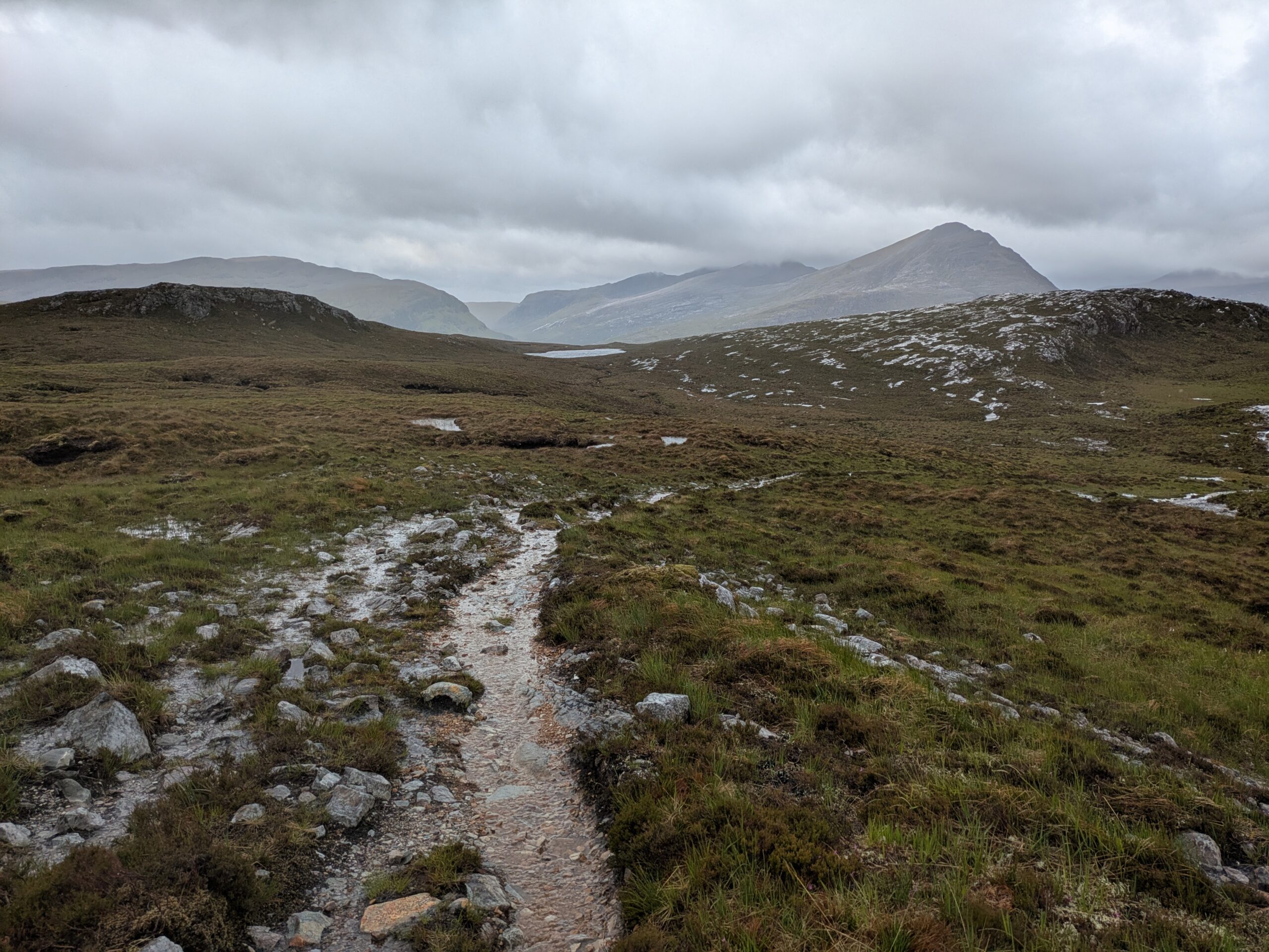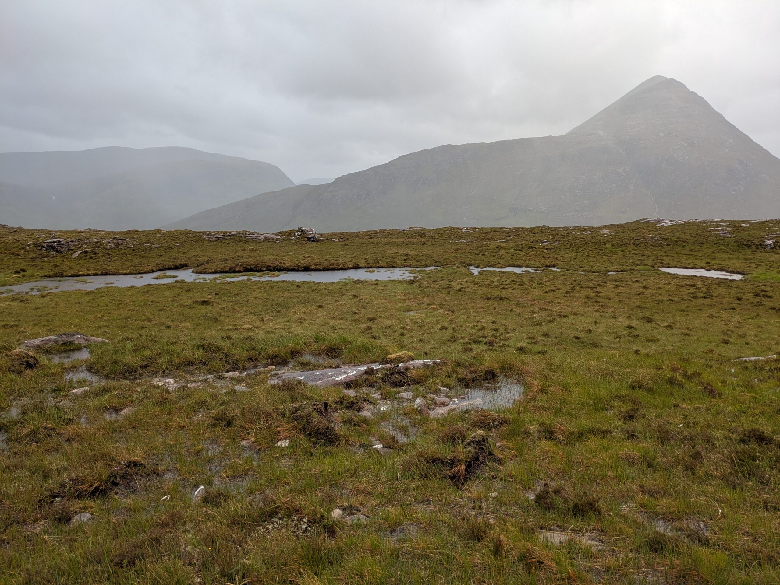 En plus positif, les paysages étaient bien beaux! On a aperçu un furtif arc-en-ciel et on a eu droit à quelques vues sur An Teallach, qui jouait à cache-cache avec les nuages sombres, dans une ambiance digne du Mordor.