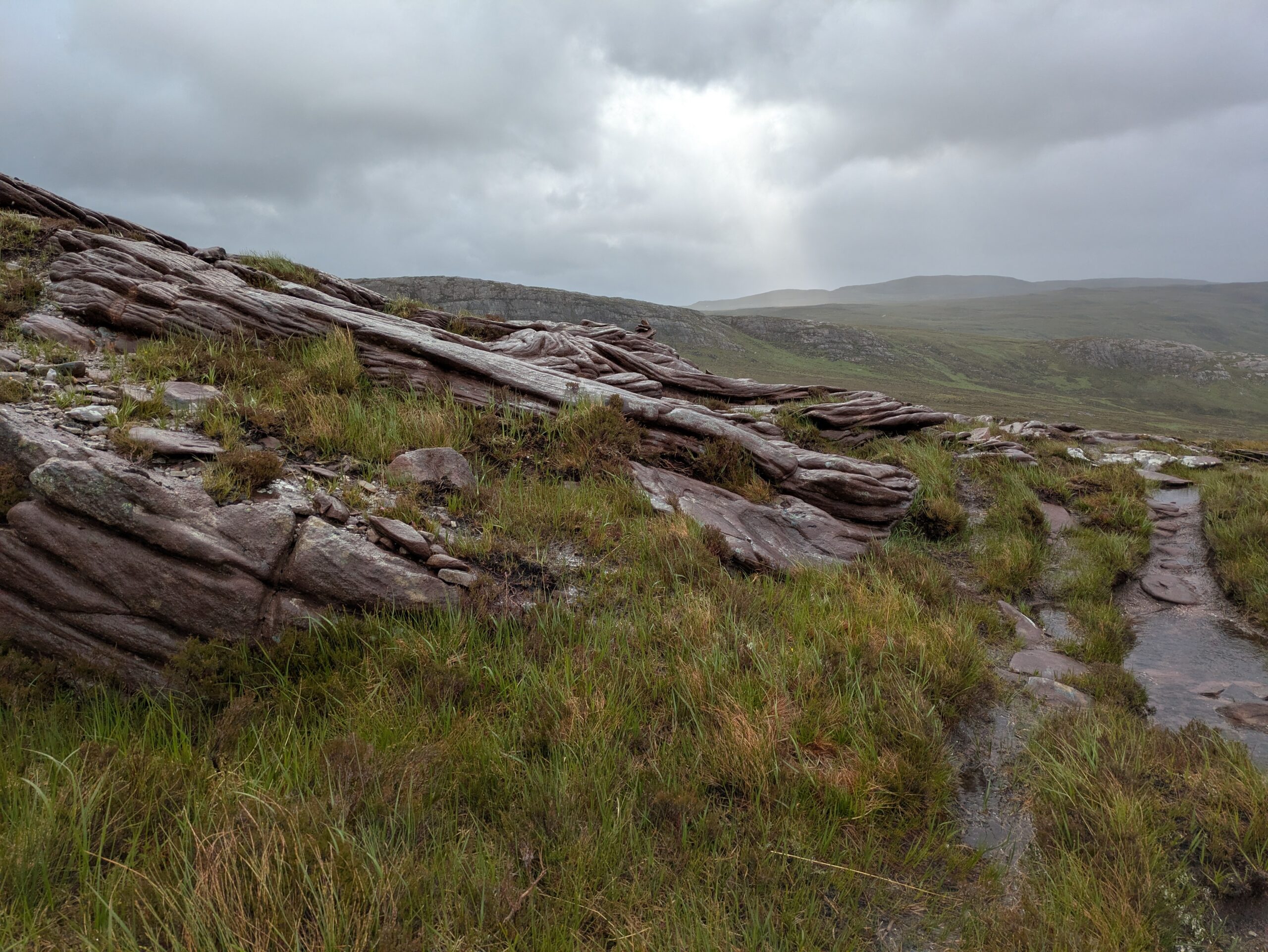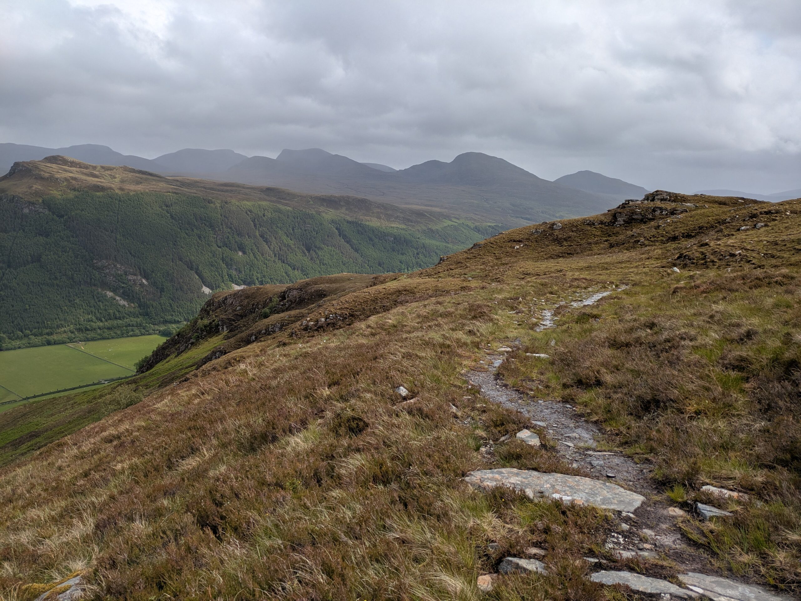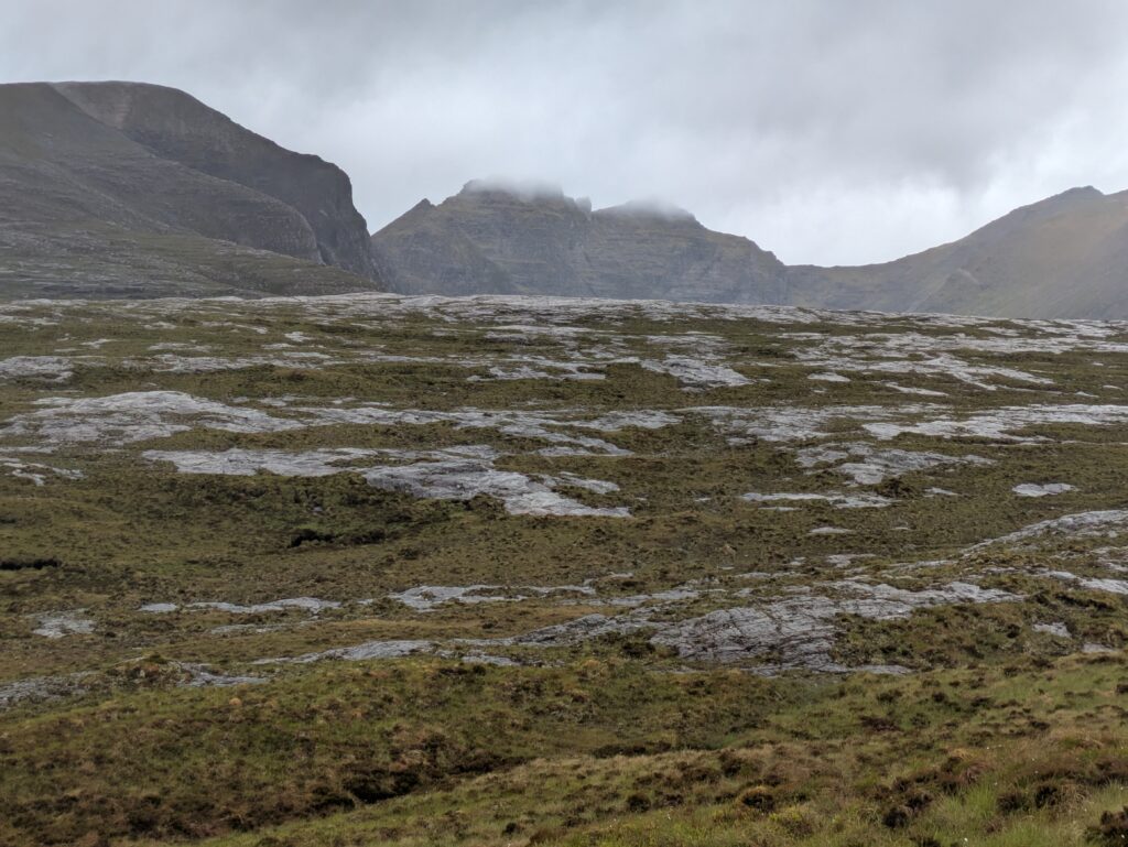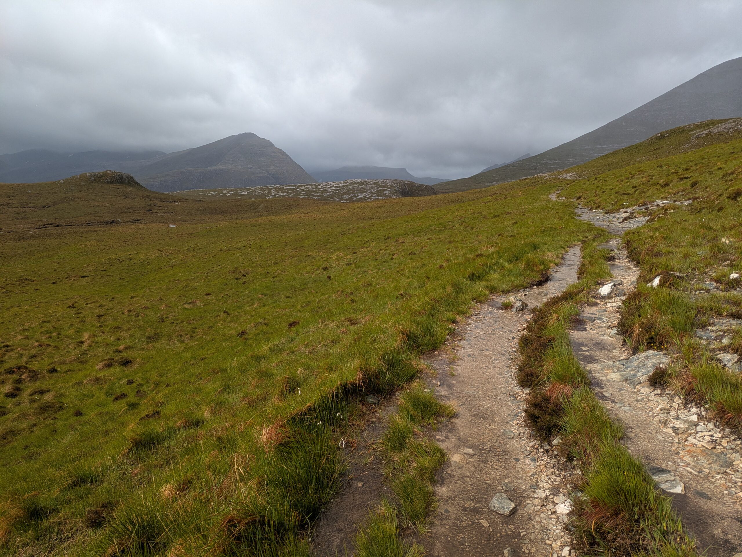 En plus positif, les paysages étaient bien beaux! On a aperçu un furtif arc-en-ciel et on a eu droit à quelques vues sur An Teallach, qui jouait à cache-cache avec les nuages sombres, dans une ambiance digne du Mordor.
