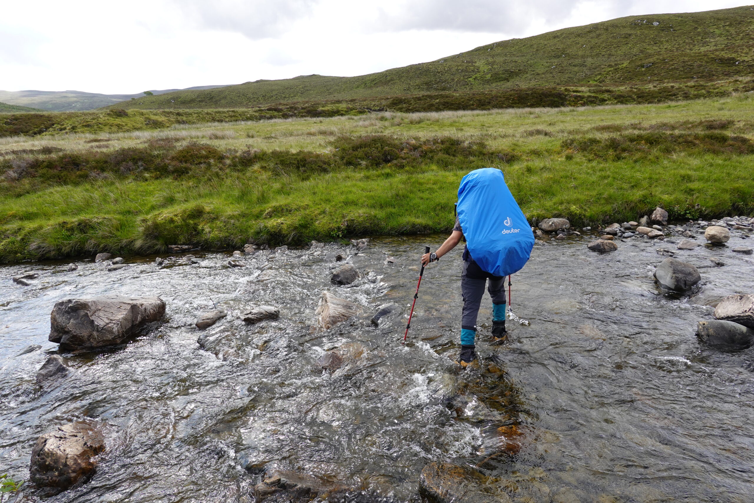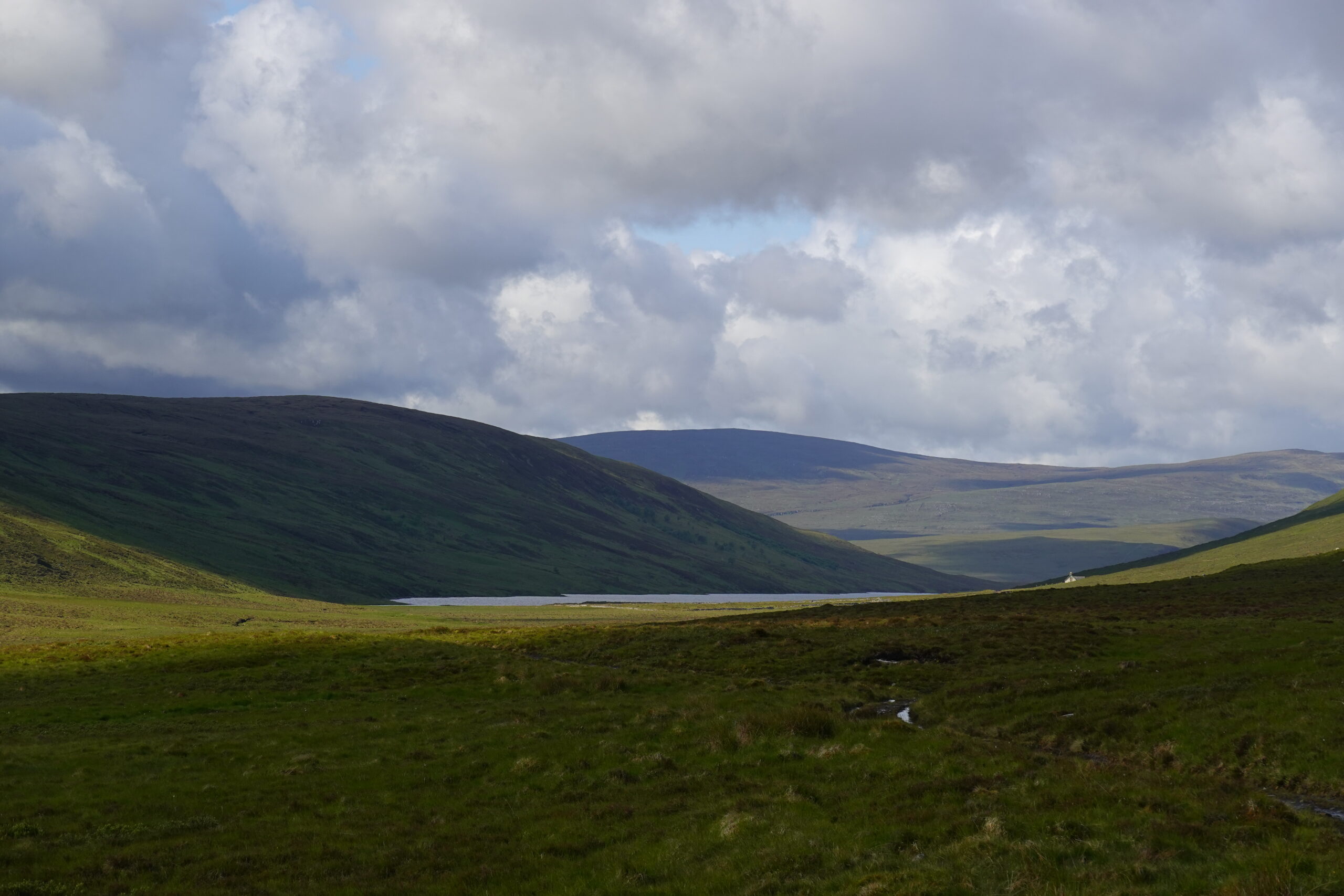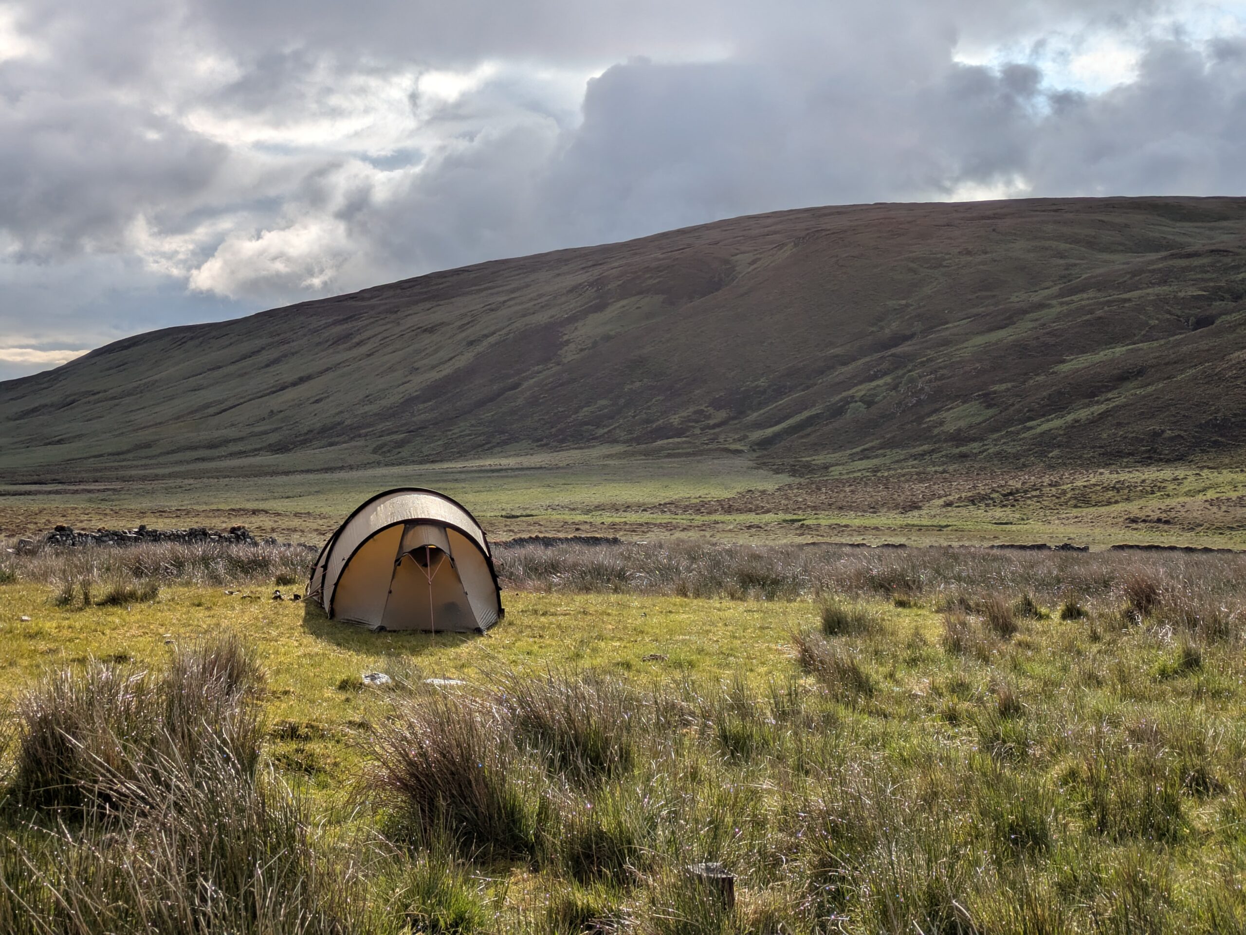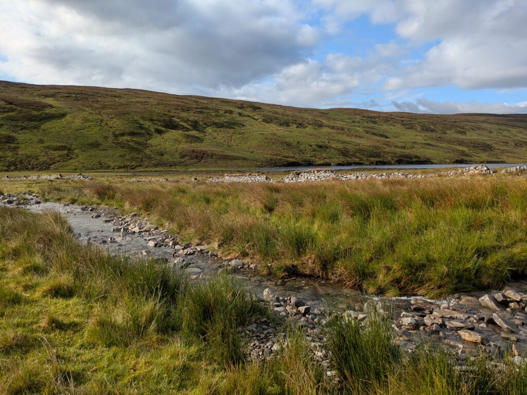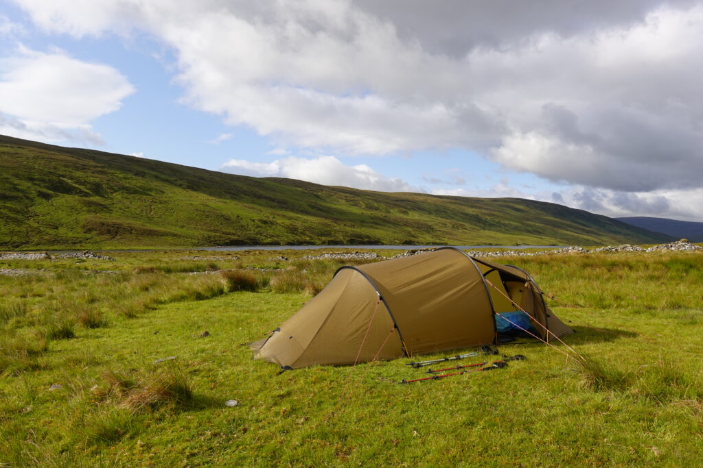 Il a plu vers 6h du matin mais il faisait sec quand on a émergé vers 7h30, ce qui était chouette. Tout est tellement plus facile quand il n’y a ni pluie, ni midges!