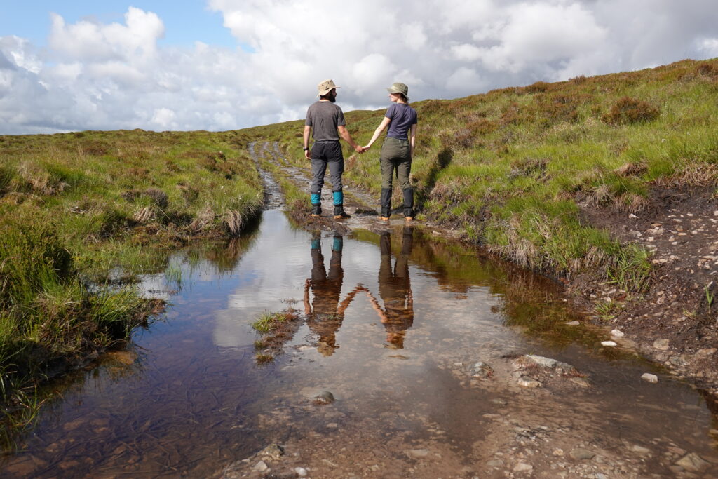 Le track sur lequel on marche est régulièrement inondé, et on en profite pour faire quelques photos avec notre reflet dans les grosses flaques, héhé.