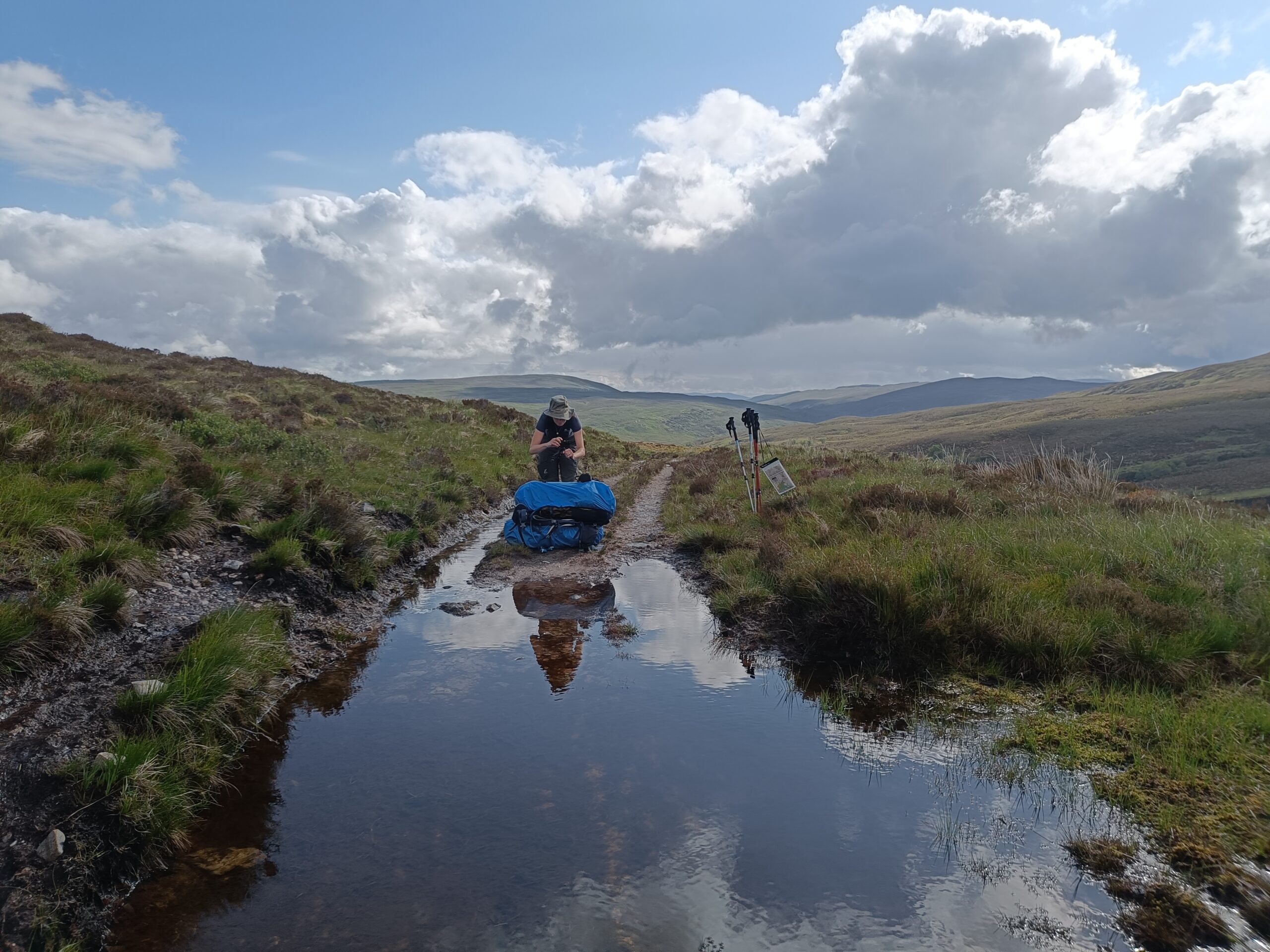Après cette bonne pause, on repart, toujours au sec: on a même enlevé les waterproofs et sorti les chapeaux, qui n’avaient plus vu l’air libre depuis le Knoydart. ^^