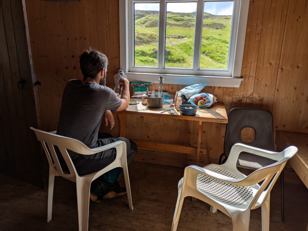 Puis on atteint le Schoolhouse bothy, vraiment super mignon, où on s’arrête pour cuisiner notre “Second breakfast” (= porridge).