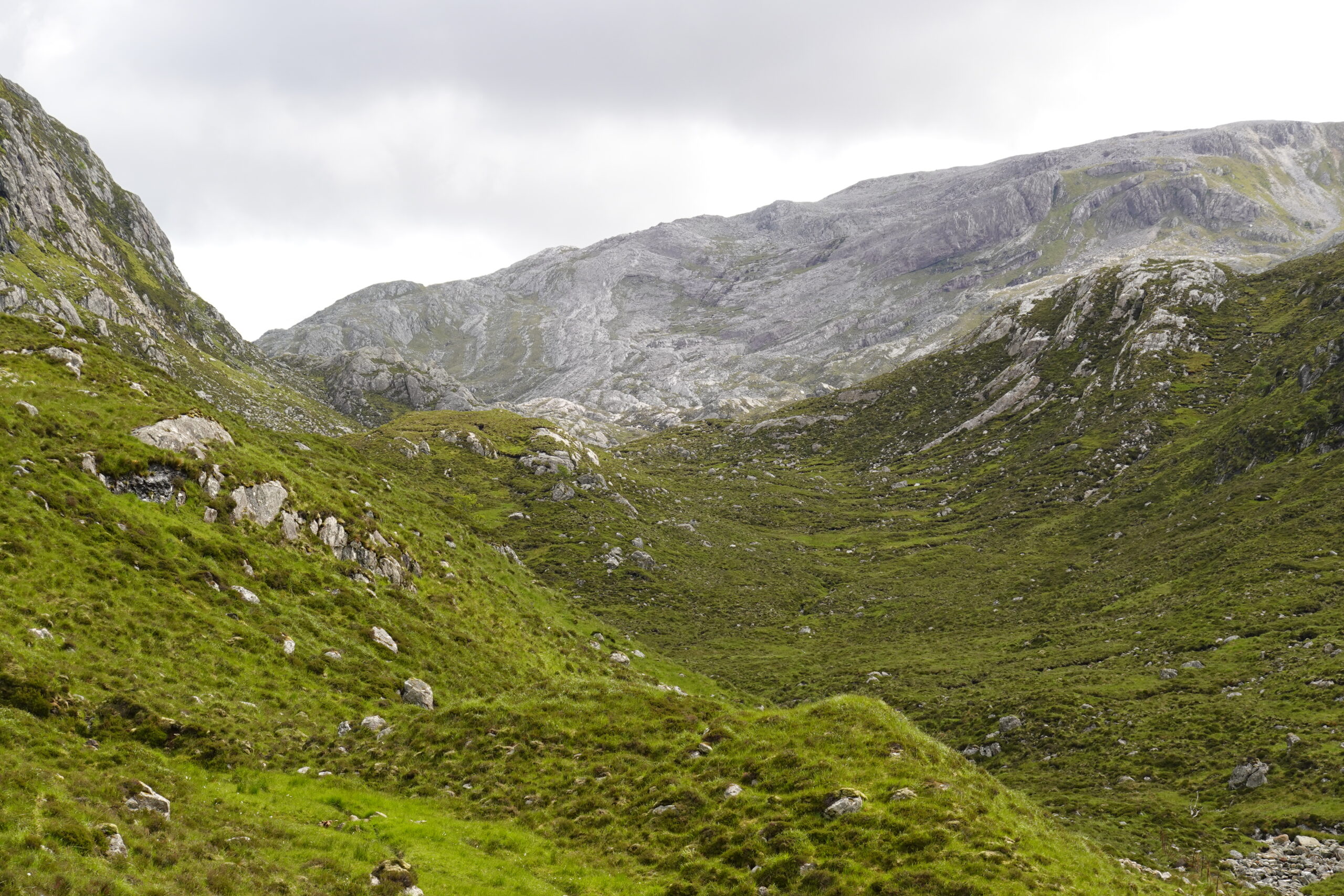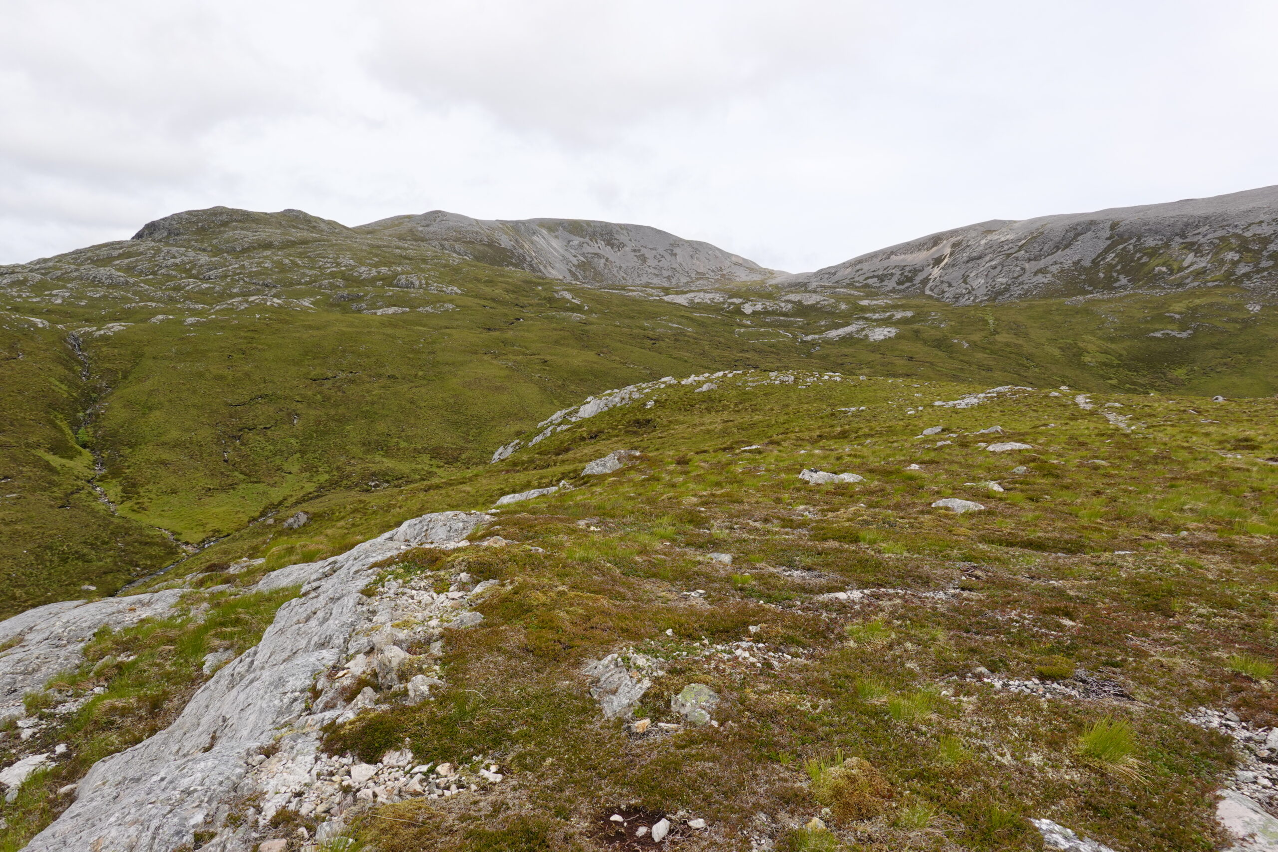 On commence par monter en direction de Bealach na h-Uidhe, le col entre Glas Bheinn et Beinn Uidhe.