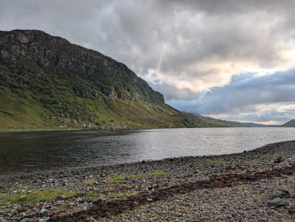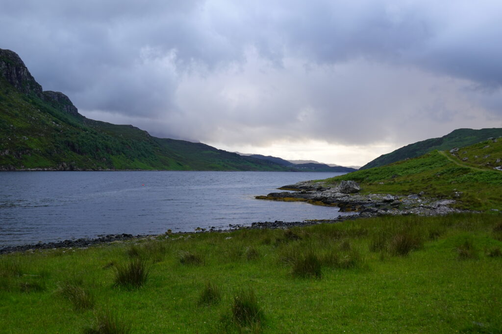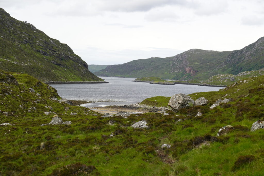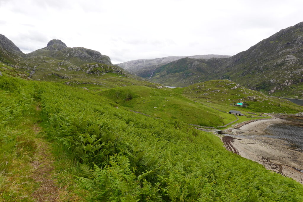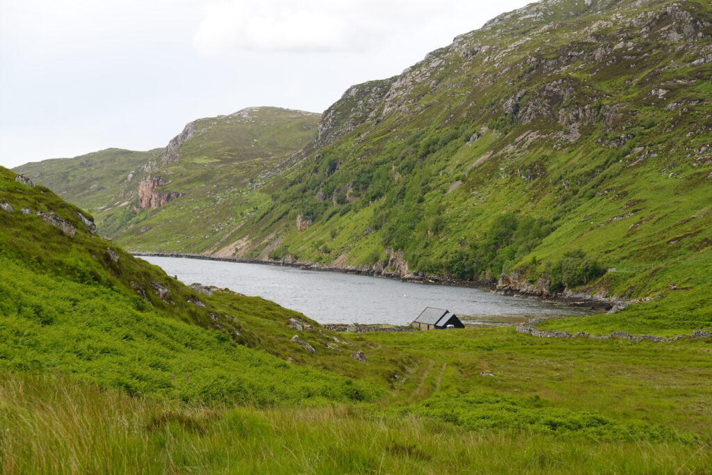On longe ensuite Loch Beag, le petit lac connecté à Loch Glencoul, jusqu’à rallier Glencoul bothy.