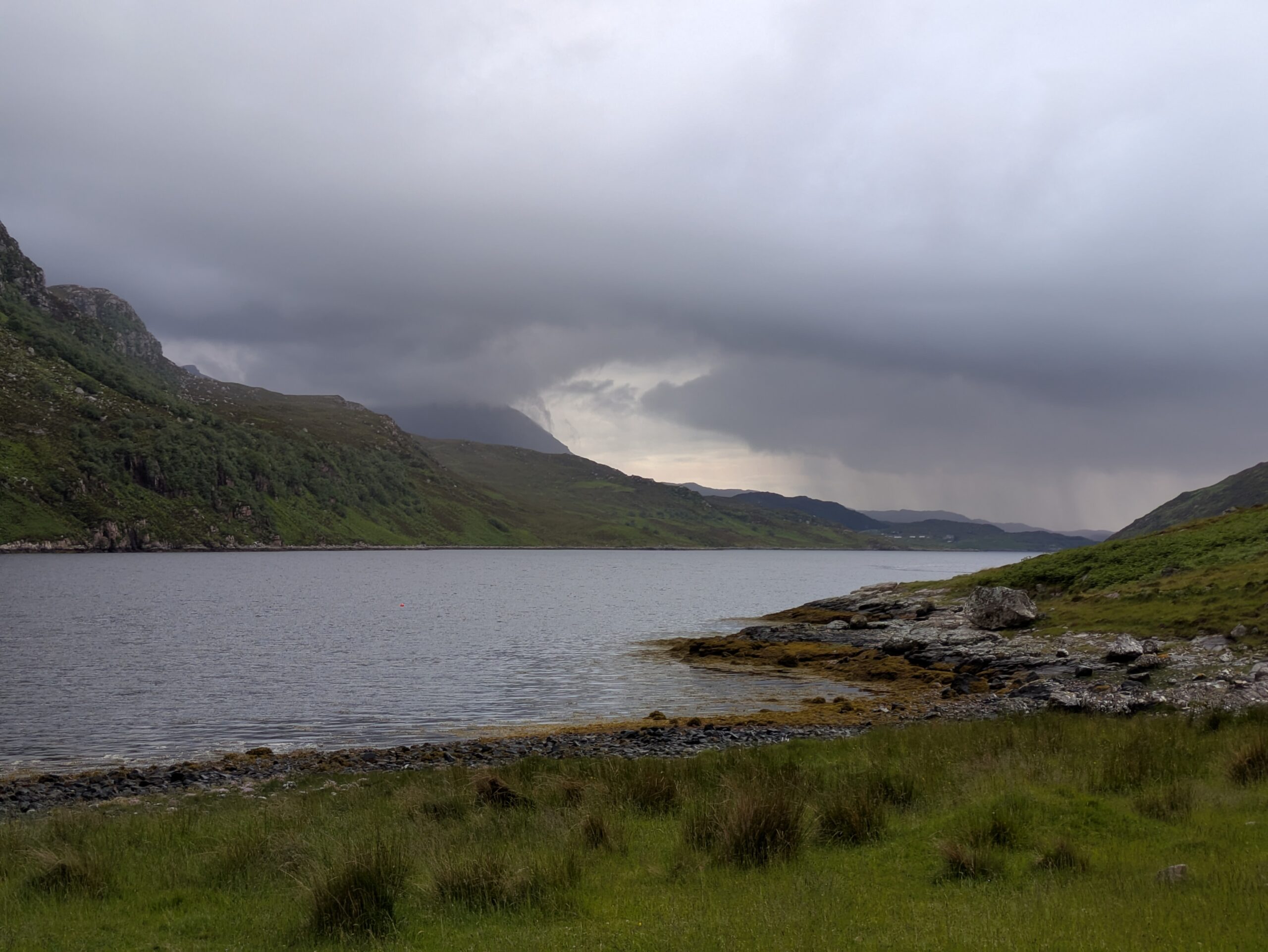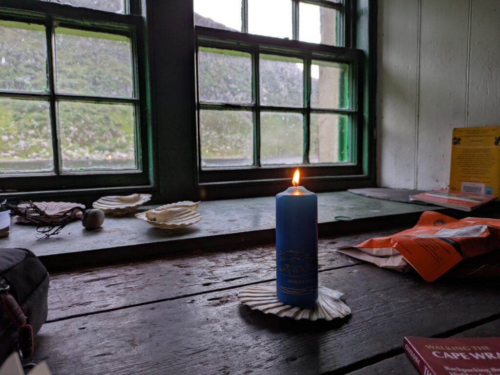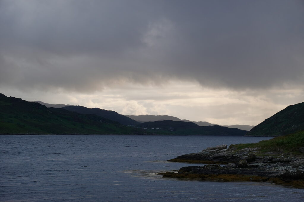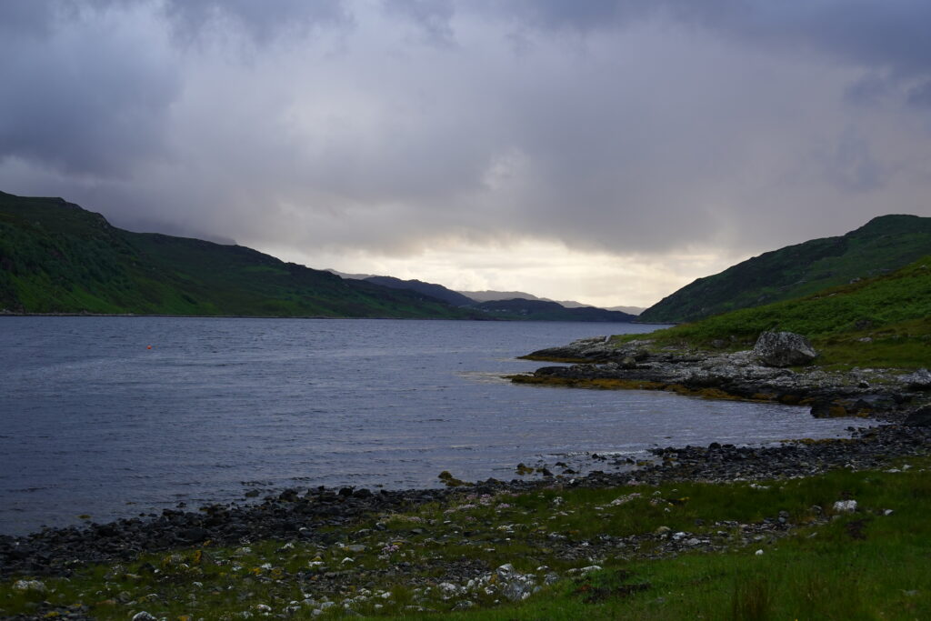 On entre dans le bothy, où on rencontre Kai, un Allemand qui fait le CWT en deux semaines — et qui, lors de son premier jour, a rencontré Bernard, le Suisse qui est décédé vers Kinlochhourn. :/ Sa disparition a vraiment marqué les esprits.